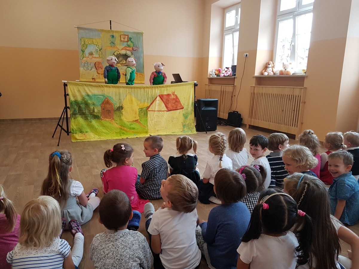 Dnia 6 września 2017 r. mieliśmy okazję obejrzeć przedstawienie kukiełkowe pt. „Trzy świnki”. Dzieci choć doskonale znają tą bajkę , to z wielkim zainteresowaniem śledziły perypetie bohaterów.