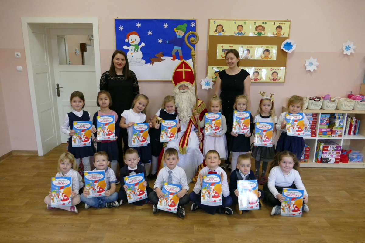 Dnia 21 grudnia 2018 r. w naszym przedszkolu, w każdej grupie odbyło się spotkanie opłatkowe. Na Wigilii wychowawcy wraz dziećmi dzielili się opłatkiem i składali sobie serdeczne życzenia spokojnych i rodzinnych świąt oraz wielu łask Bożych na Nowy Rok. W przedszkolu nie mogło zabraknąć również wizyty Świętego Mikołaja, który wręczył dzieciom piękne prezenty. Na stołach gościło pyszne ciasto, owoce i słodycze. To wszystko nie mogłoby się obyć bez wspólnego kolędowania. Dla dzieci była to uroczysta i radosna chwila, która przypomniała im tradycje świąteczne i zbliżyła wszystkich do siebie.