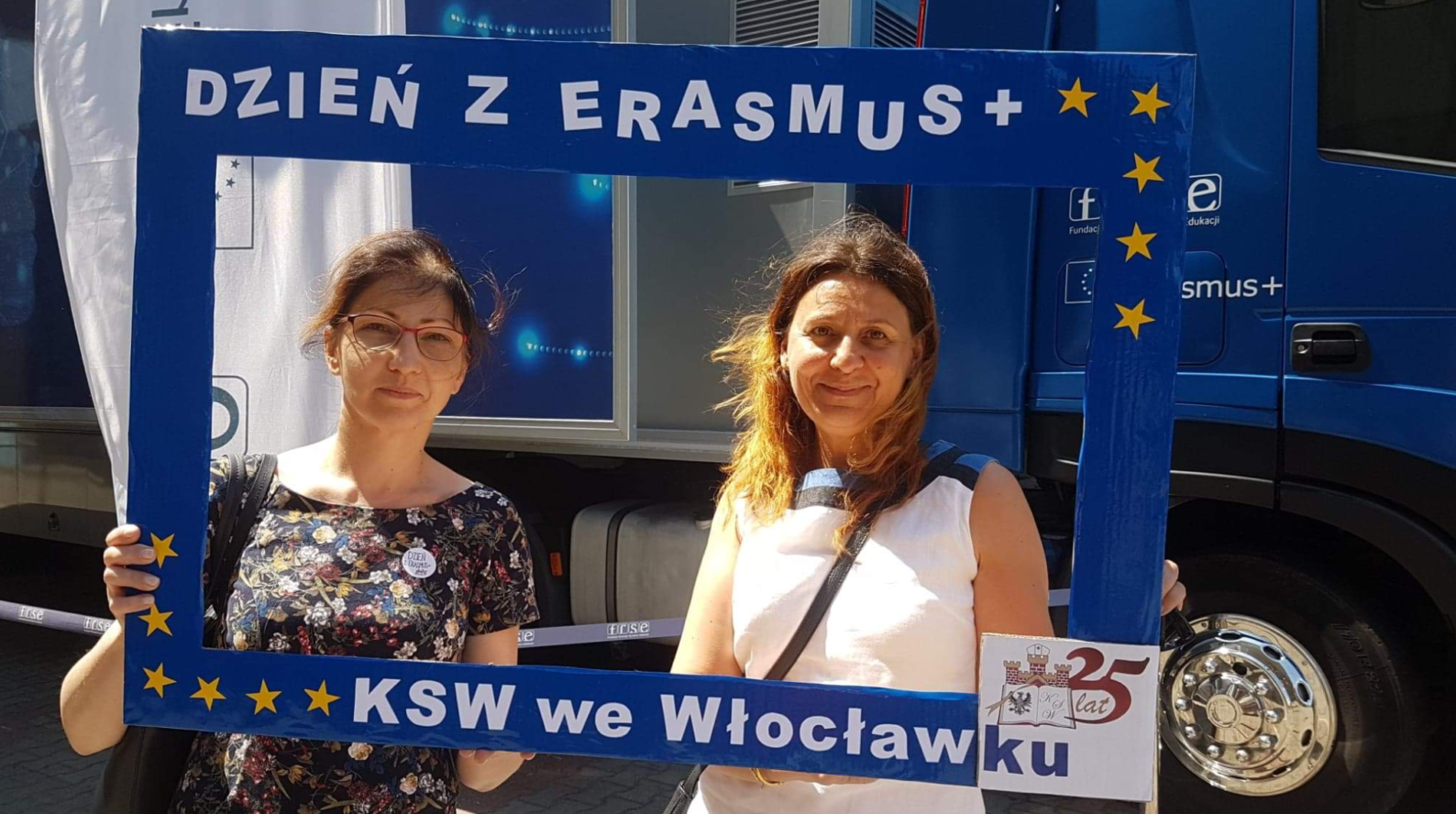 5 czerwca z inicjatywy Regionalnego Punktu Informacyjnego Erasmus+ , działającego przy Kujawskiej Szkole Wyższej, został zorganizowany Dzień z Erasmus+. Wśród kilku propozycji przygotowanych w związku z tym wydarzeniem na szczególną uwagę zasługuje zupełna nowość: Mobilne Centrum Edukacyjne. Udały się do niego p. Anna Waśkiewicz i Angelika Szumińska, mające za sobą już udział w kilku ciekawych wydarzeniach zorganizowanych przez Fundację Rozwoju Systemu Edukacji, a aktualnie będące uczestniczkami projektu „Wiele języków, jedna Europa”.