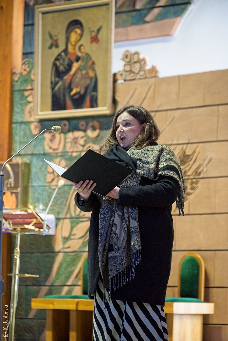 Kolejną atrakcją był koncert w wykonaniu naszej absolwentki – p. Joanny Słowińskiej, która jest również absolwentką Akademii Muzycznej im. I.J. Paderewskiego w Poznaniu w klasie śpiewu solowego. Podczas swego wystąpienia, p. Joanna, przy akompaniamencie swojej koleżanki p. Anieli Madery, wykonała poruszające interpretacje utworów doby klasycyzmu, romantyzmu, baroku, a kończąc na współczesności. Nie zabrakło dzieł Mozarta, Chopina, czy też kompozycji do tekstu św. Jana od Krzyża – wszystko to skrzętnie wplecione w ramy nurtu pieśni pasyjnych. Wszyscy zebrani mogli poczuć się choć przez chwilę niczym wyjątkowi goście największych sal operowych Europy… o ile nie świata.