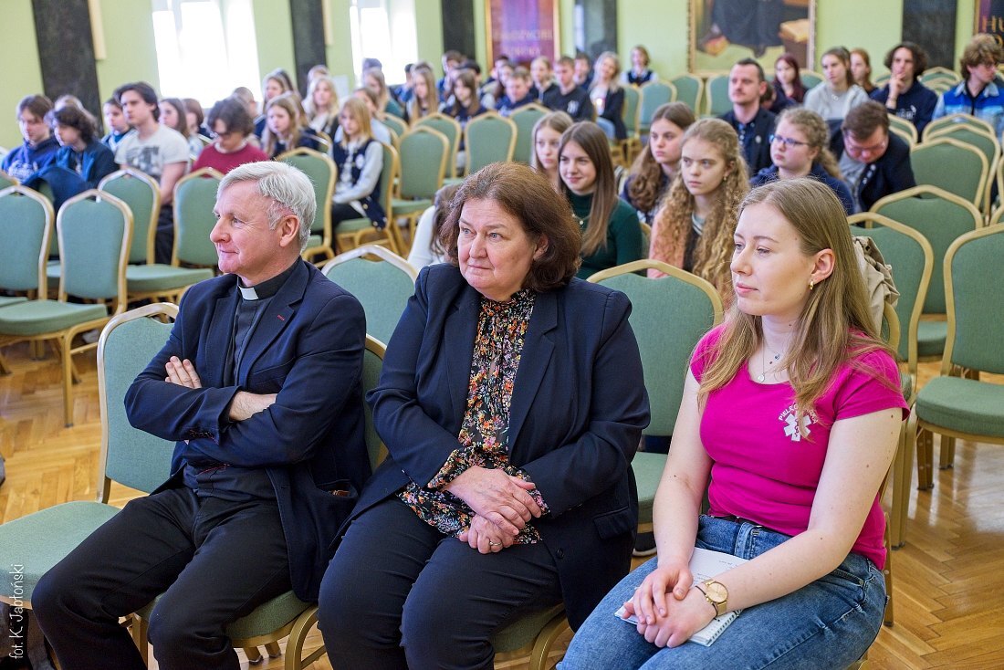 Na koniec naszego spotkania p. wicedyrektor Bożena Sobierajska, w imieniu księdza dyrektora Jacka Kędzierskiego, wręczyła dyplomy uczniom, którzy brali udział w Ogólnopolskim Turnieju Wiedzy Biologia 2023.