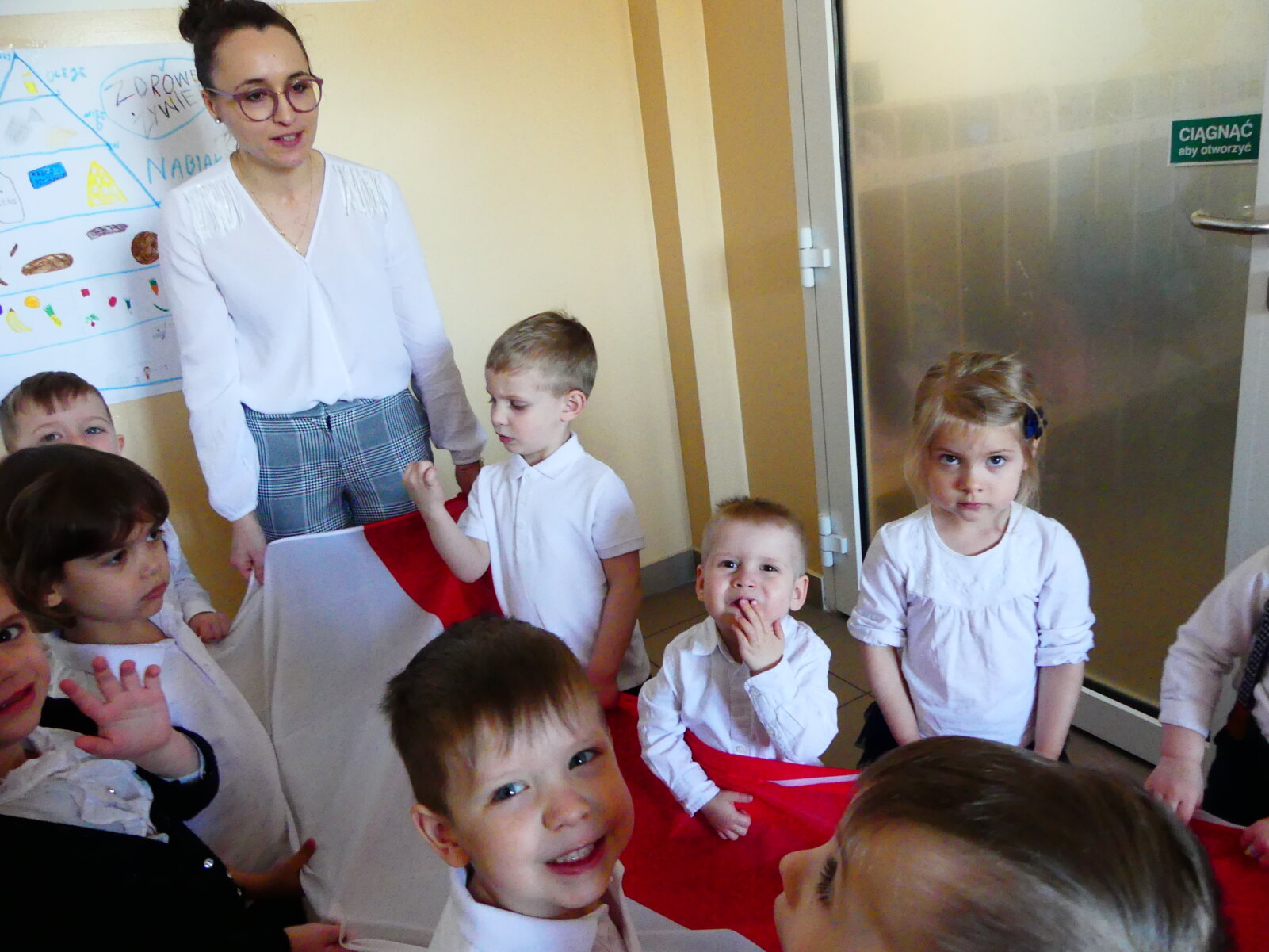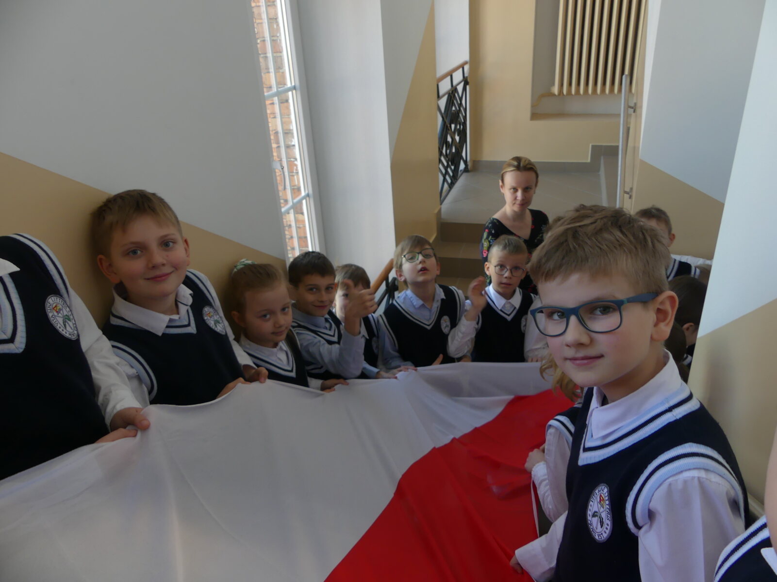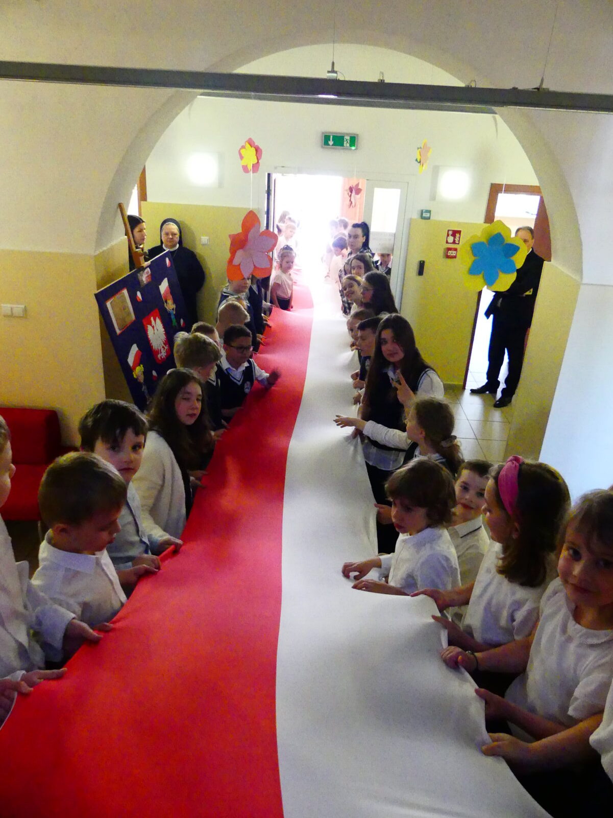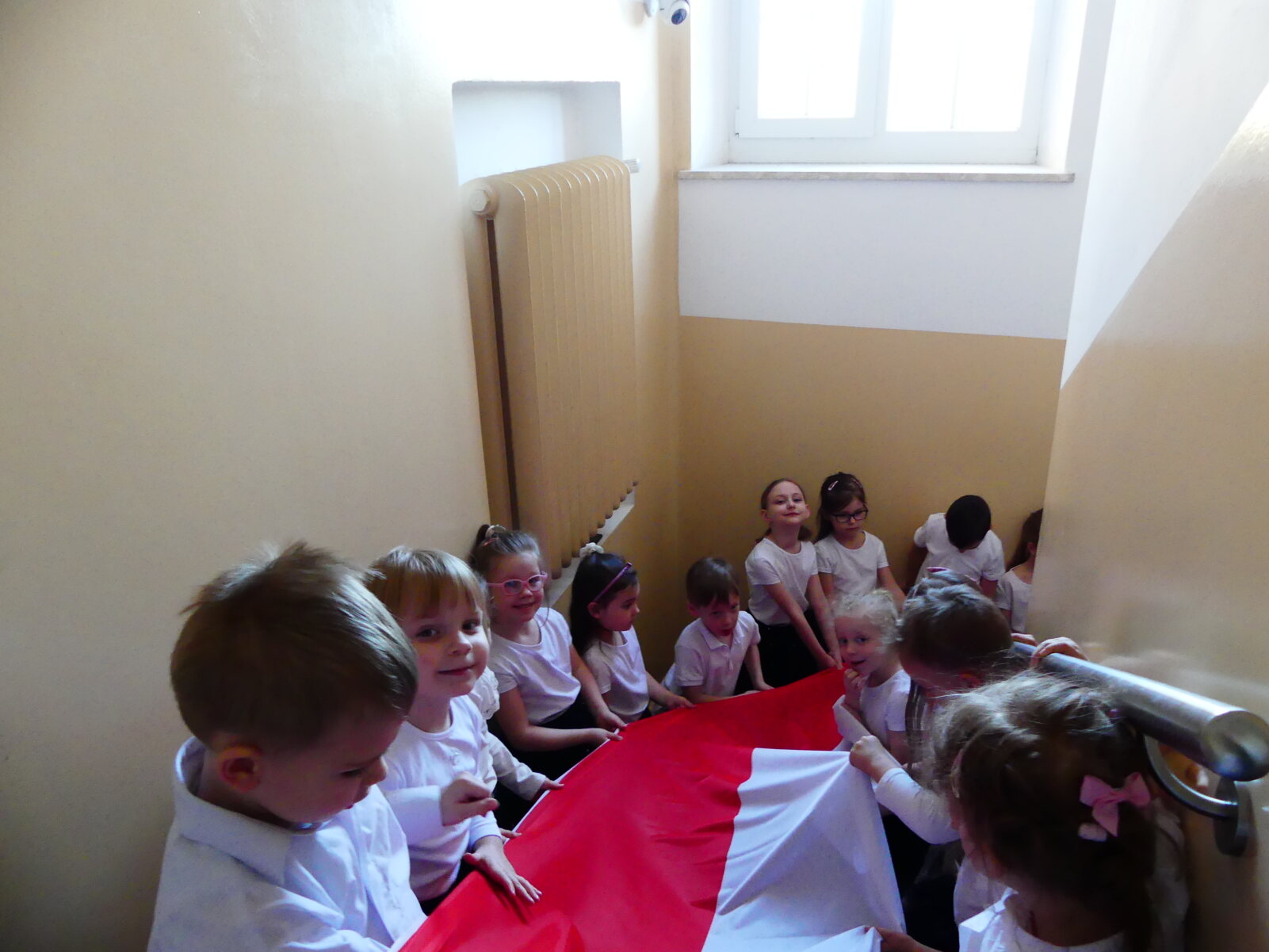 Maj to miesiąc, w którym każdy Polak powinien pamiętać o ważnych wydarzeniach dla naszej Ojczyzny. Dzień Flagi Państwowej oraz Uchwalenie Konstytucji 3 Maja to znaczące daty w historii kraju, dlatego też w tym miesiącu cała społeczność szkolna szczególnie stara się rozwijać uczucia patriotyczne i wzbudzać miłość do Ojczyzny. Kolory Flagi Polskiej towarzyszą nierozerwalnie dziejom historycznym naszego narodu, a są nimi biel – symbolizująca wartości duchowe, czystość i niepokalanie oraz czerwień – symbolizująca przelaną krew w walce w obronie kraju. Te przyjęte przez sejm barwy, 1 sierpnia 1919 roku, rozpowszechniły się bardzo szybko i towarzyszyły Polakom we wszystkich ważnych wydarzeniach. W piątek 28 kwietnia 2023 roku uczniowie naszej szkoły wspólnie z przedszkolakami uroczyście świętowali Dzień Flagi Rzeczypospolitej Polskiej. Atmosferę Święta czuliśmy od samego rana, a to za sprawą galowych strojów dzieci oraz okazałej flagi w naszych biało-czerwonych barwach. Tę flagę dumnie rozciągnęliśmy w murach naszej szkoły, pamiętając o każdym piętrze i stanowiąc z nią nierozerwalną całość. Był to wspaniały symbol patriotycznej uczniowskiej wspólnoty. Dzień ten był wspaniałą okazją do wyrażenia dumy z tego, że jesteśmy Polakami, a Polska to nasza Ojczyzna.
