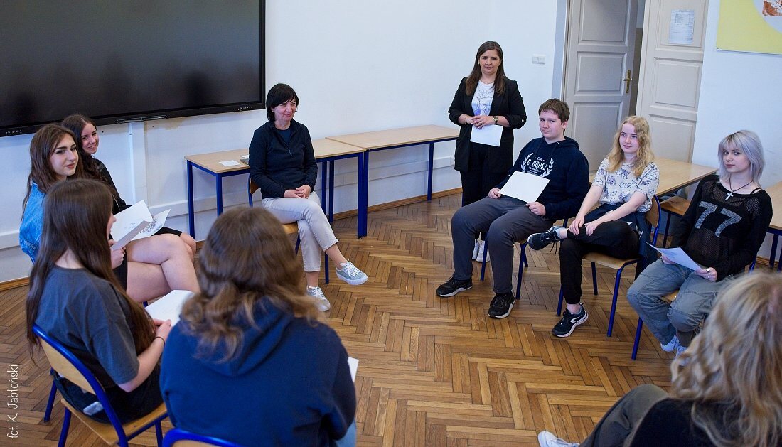 Dnia 12.05.2023 r. uczniowie klasy 2 b oraz 3 b Publicznego Liceum Ogólnokształcącego im. ks. Jana Długosza uczestniczyli w warsztatach profilaktycznych przeprowadzonych przez panią Grażynę Cudną – specjalistkę z Poradni Psychologiczno – Pedagogicznej we Włocławku.