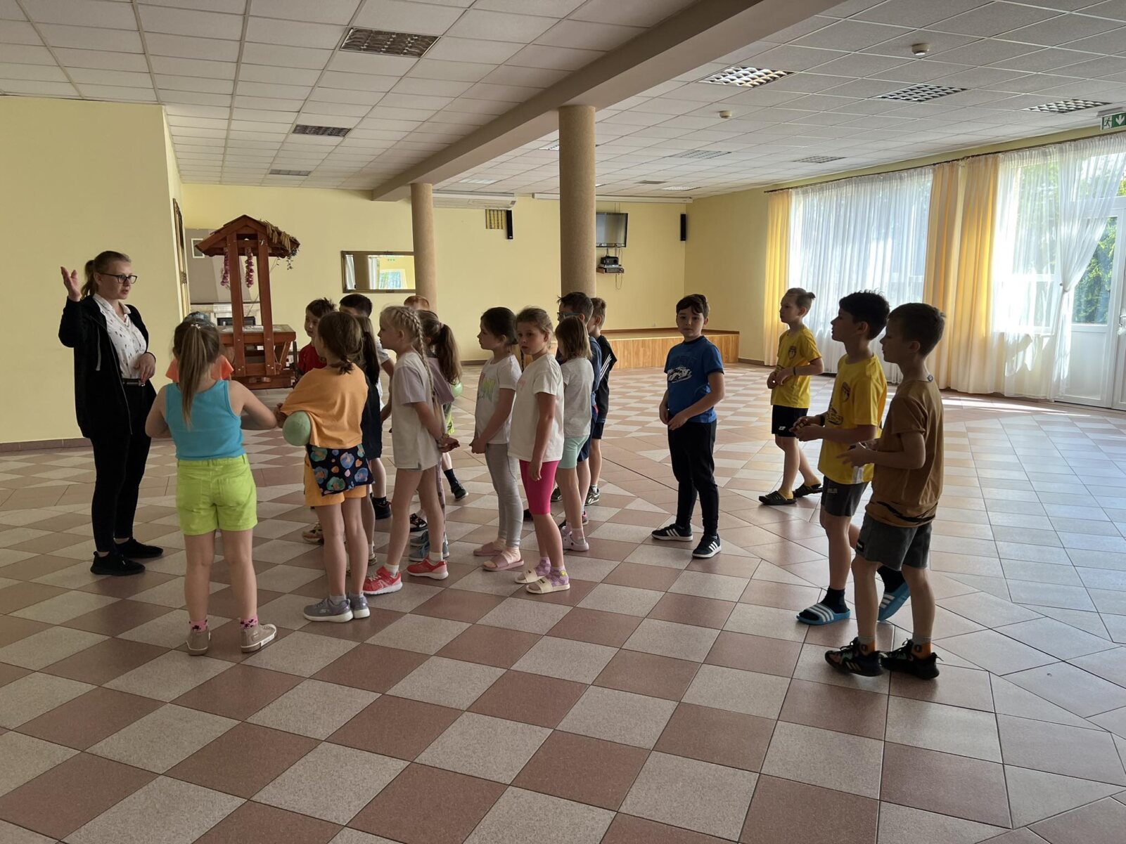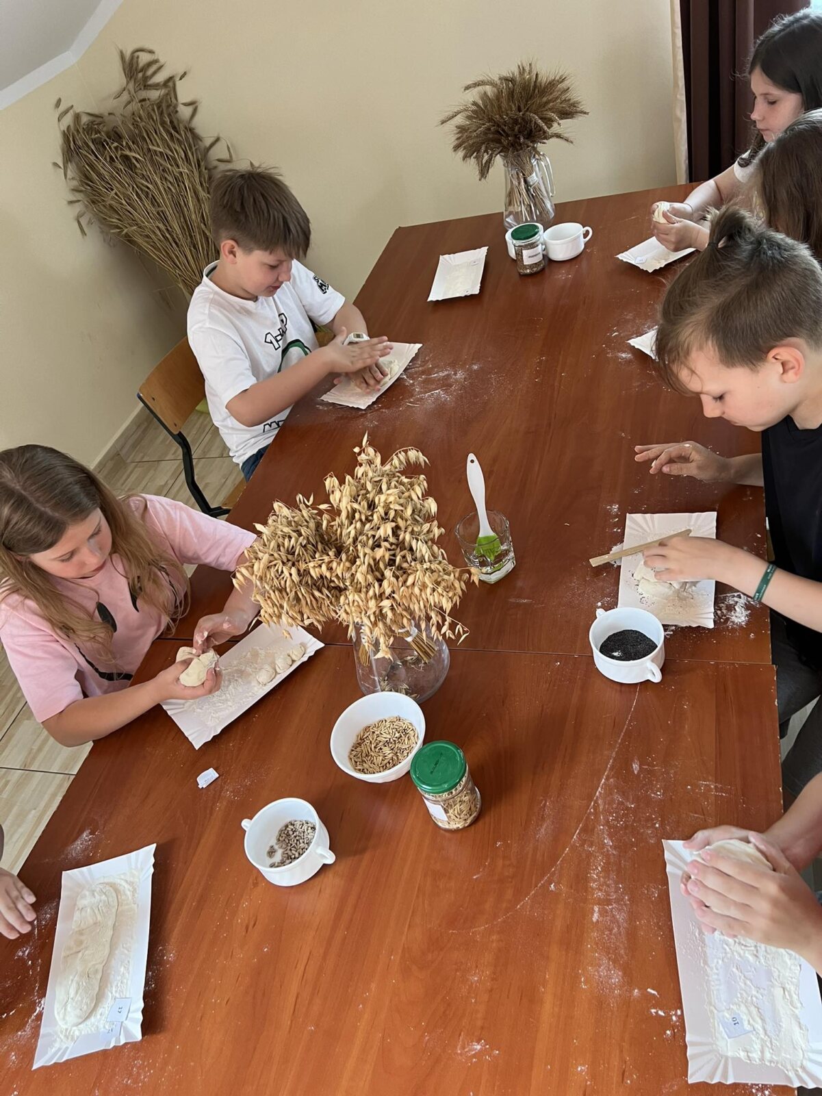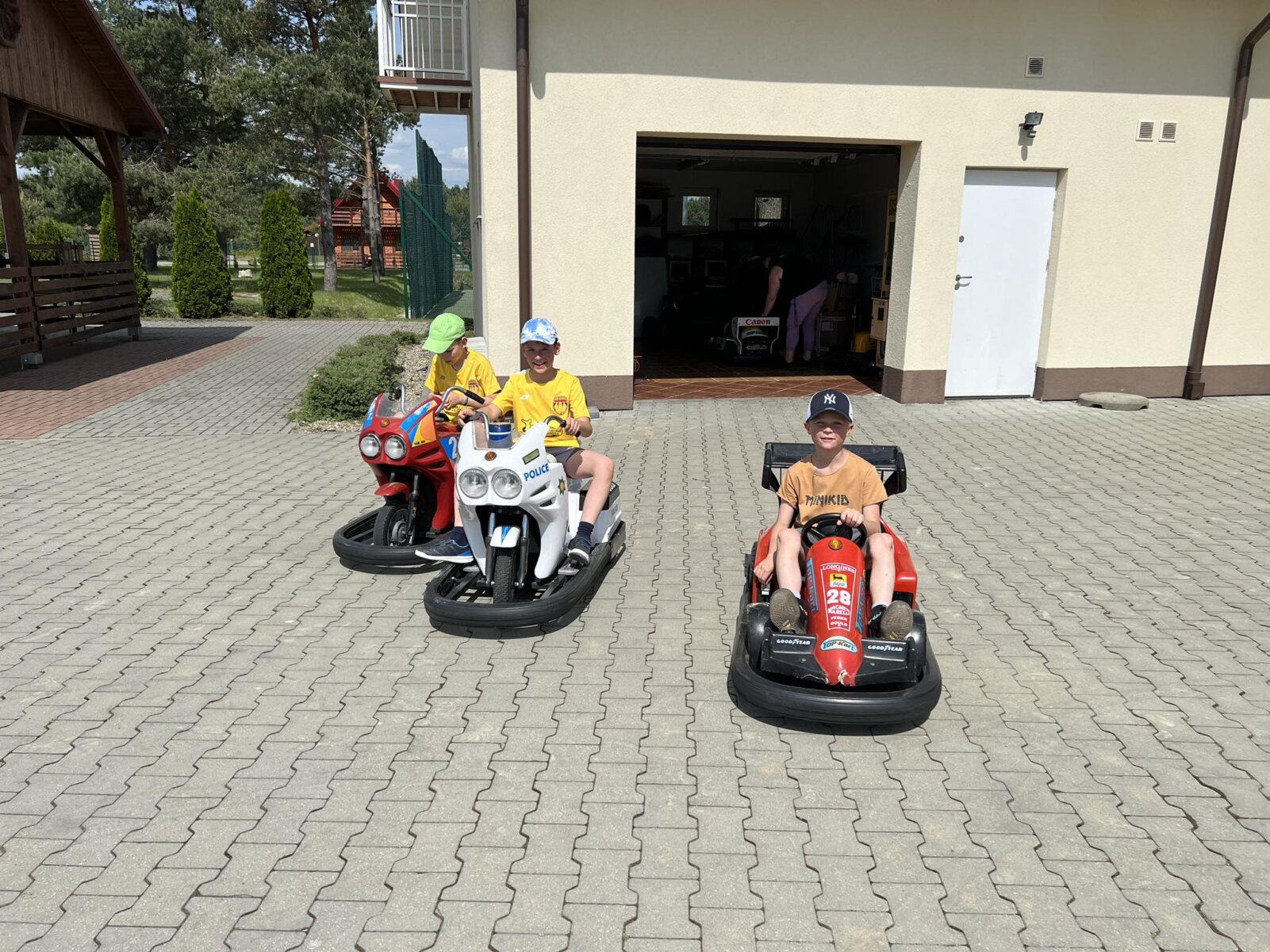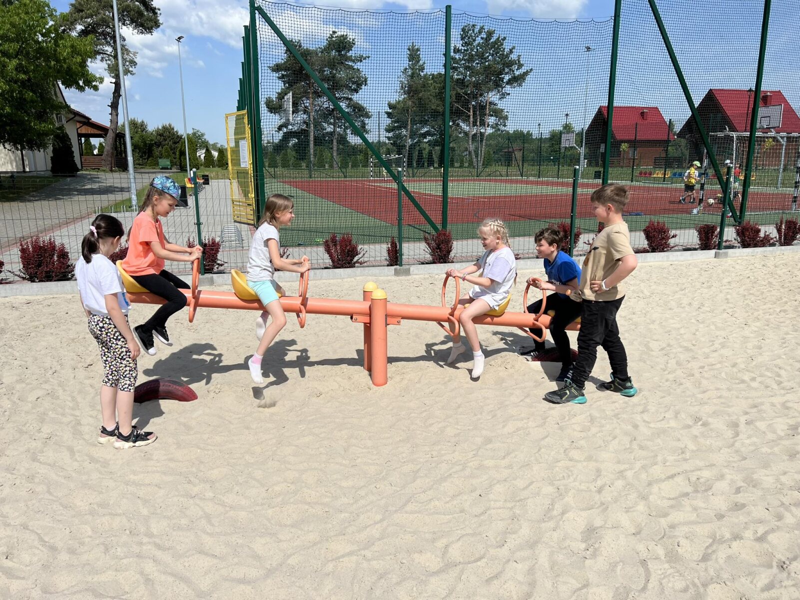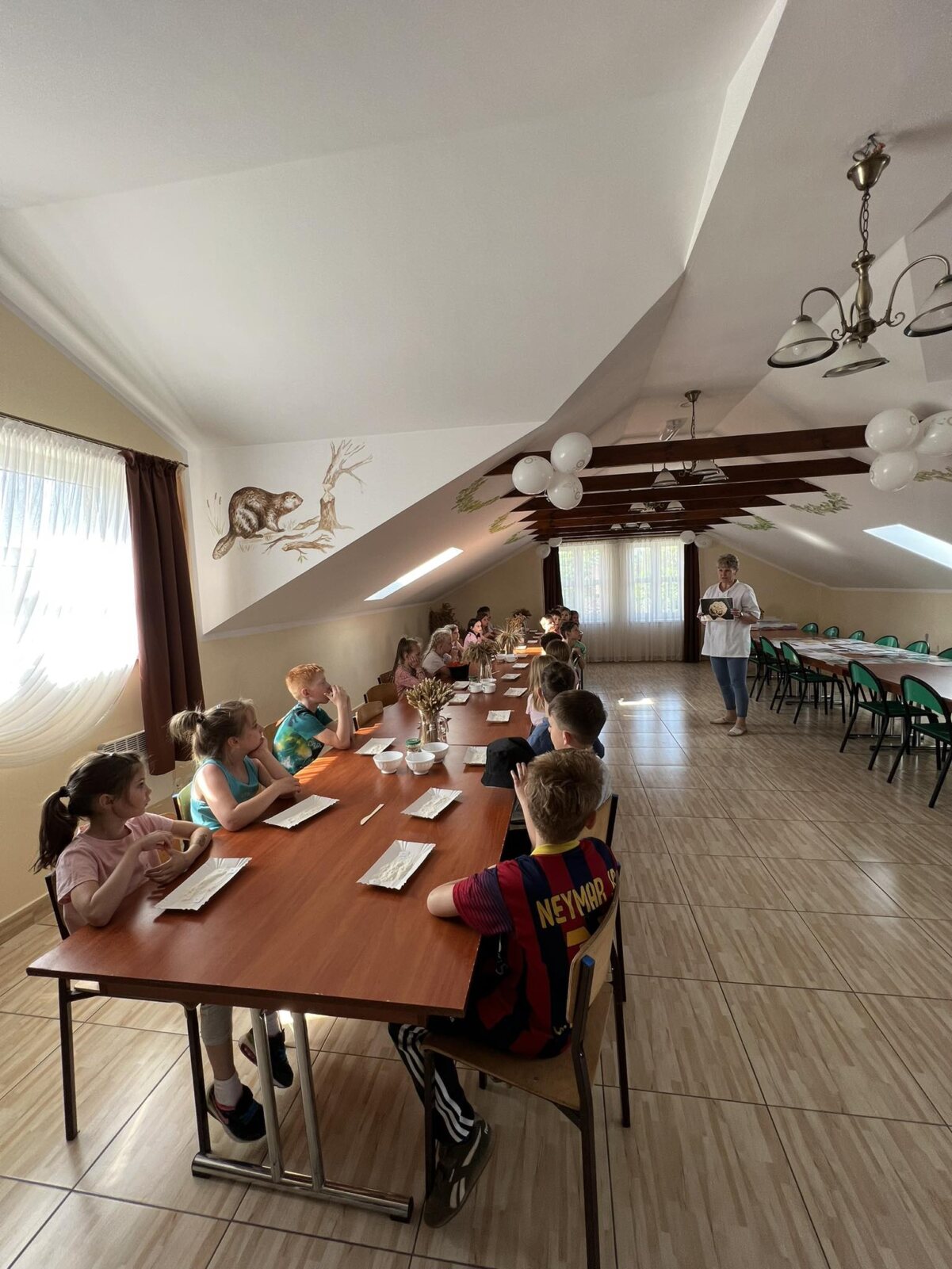 Po pierwszych atrakcjach był czas na pyszny obiad, po którym dzieci nabrały siły na kolejne atrakcje. Chłopcy jako fani piłki nożnej mieli możliwość zagrania meczu, natomiast dziewczynki grały w tenisa. Wspaniała zabawa przeniosła się również na nowoczesny plac zabaw. Po rozgrywkach udaliśmy się na tor gokartowy, była to świetna zabawa dla wszystkich uczestników. Po zabawach udaliśmy się na warsztaty terenowe w lesie. Dzieci miały do przejścia prawie pięciokilometrową trasę po szlaku w lesie. Podczas spaceru z przewodnikiem uczniowie dowiedzieli się jak obliczyć wiek drzew, jak głęboko znajduje się mrowisko oraz jak niebezpieczne dla zdrowia są konwalię. Następnie przeszliśmy na terenie dawnych wydm, które kiedyś znajdowały się na tym terenie. Po przyjemnej, ale zarówno wyczerpującej wycieczce udaliśmy się na kolacje. Po małym odpoczynku i zabawie na placu zabaw odbyło się ognisko. Wieczór spędziliśmy wspólnie przy grach planszowych oraz układaniu kostki Rubika Kolejny dzień rozpoczęliśmy od śniadania, następnie dzieci spakowały swoje bagaże. Ostatnią atrakcją dla dzieci były warsztaty z pieczenia bułek. Pani prowadząca warsztaty opowiedziała jakie są gatunki mąki oraz jak powstaje chleb. Każdy z uczestników otrzymał ciasto i musiał uformować swoją autorską bułeczkę. Nie wszystkie miały oczywisty okrągły kształt. Po przeniesieniu bułeczek do pieca, dzieci wykonały rysunki związane z tematyką warsztatów. Następnie uczniowie podzielili się na grupy i każda z nich musiała przyporządkować rodzaje nasion zbóż do nazwy. Wszystkim poszło bardzo dobrze. Dochodzący z pieca piękny zapach zapowiadał nadejście bułeczek, które wszyscy chętnie zjedli. Każdy otrzymał przepis dla rodziców oraz dyplom z warsztatów.