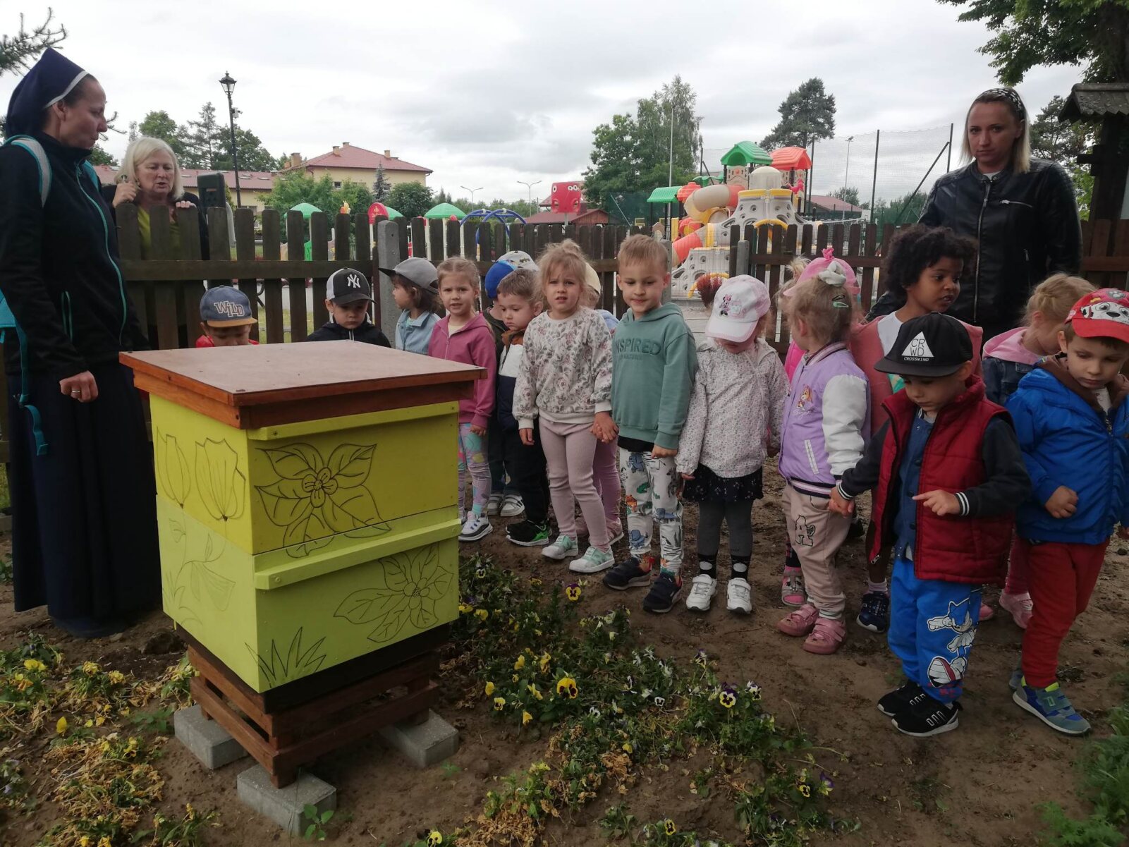 Na zakończenie pobytu pomimo niesprzyjającej pogody dzieci spędziły kilka chwil na kolorowym placu zabaw, korzystając z różnorodnych sprzętów. Wycieczka przyczyniła się do wzbogacenia wiedzy dzieci o świecie przyrody, pokazaniu jej naturalnego piękna.