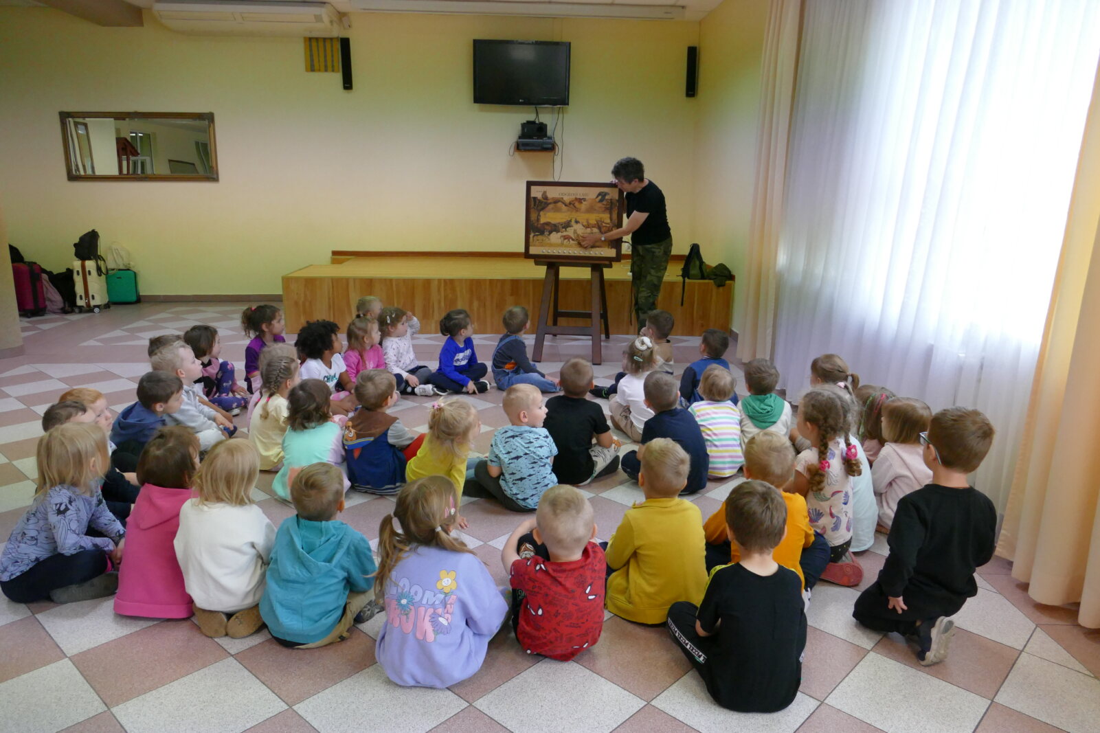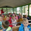 13 czerwca 2023 r. dzieci z grup 3 i 4-latki wybrały się na wycieczkę edukacyjną do Zielonej Szkoły w Goreniu Dużym położonej w centrum Gostynińsko-Włocławskiego Parku Krajobrazowego. Niegdyś niepozorna szkoła, dziś nowoczesny ośrodek dydaktyczno–rekreacyjny, którego celem jest wytworzenie trwałych nawyków przyrodniczo-ekologicznego stylu życia. Pobyt rozpoczęliśmy od odwiedzenia mieszkańców Mini Zoo, które zamieszkuje kilkanaście gatunków ozdobnych ptaków oraz ras zwierząt o ciekawym rodowodzie. Przedszkolaki zobaczyły lamy, alpakę, miniaturowe kózki karłowate, muflony, kilka ciekawych gatunków owieczek, kangury, w tym albinosy, daniele, kucyki, osiołki, Emu, różnokolorowe bażanty, czarne łabędzie, kilka gatunków kolorowych kaczek i gęsi, gromadę przepięknych pawi królewskich oraz kury Faverolle. Następnie wyruszyliśmy w podróż Zieloną Kolejką po terenie Gostynińsko-Włocławskiego Parku Krajobrazowego oraz terenie Gminy Baruchowo, podziwiając cechy charakterystyczne dla krajobrazu wiejskiego. Kolejnym etapem pobytu na terenie ośrodka były warsztaty przyrodniczo-ekologiczne. Podczas spotkania dzieci pozyskały i utrwaliły wiedzę na temat gatunków zwierząt zamieszkujących pobliskie lasy.