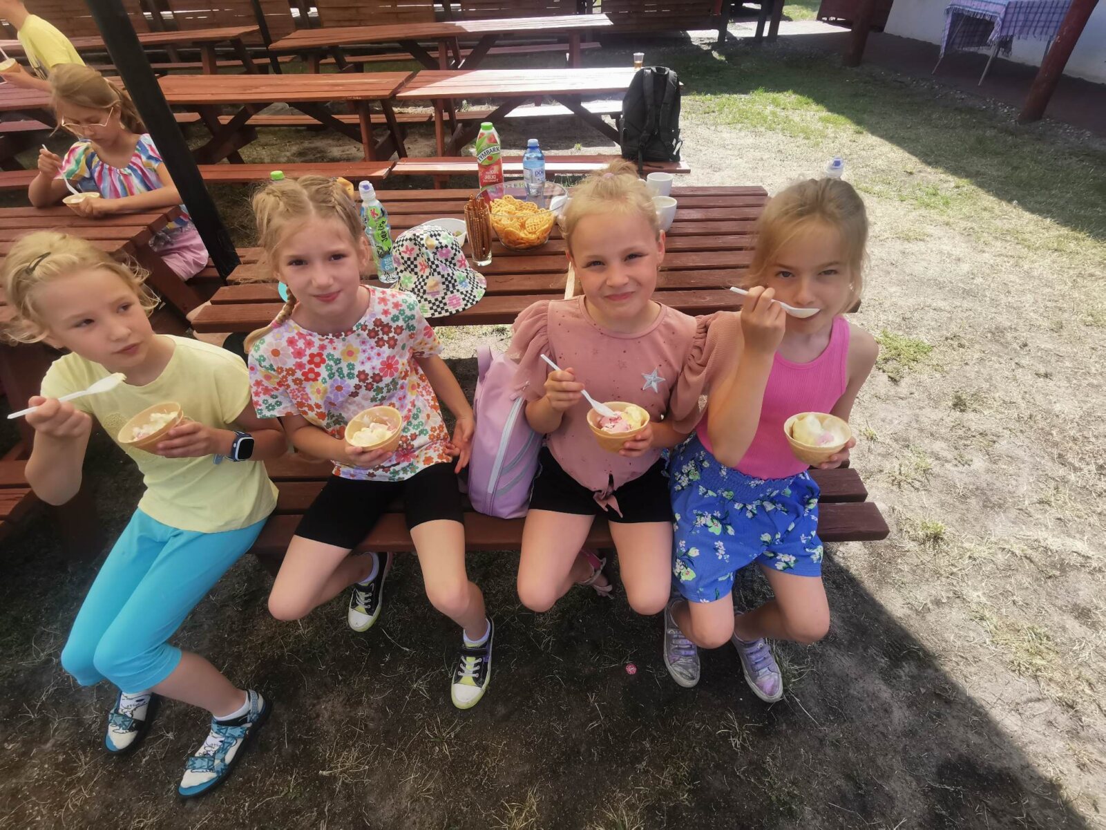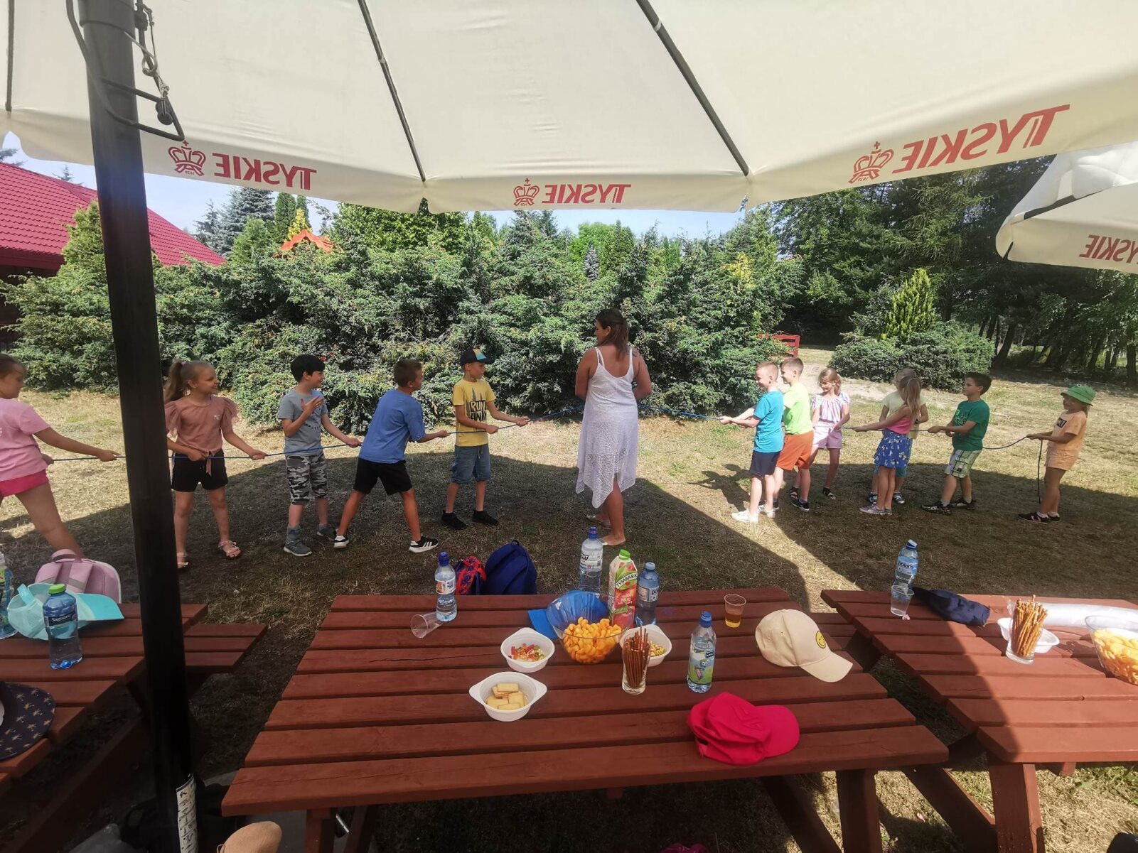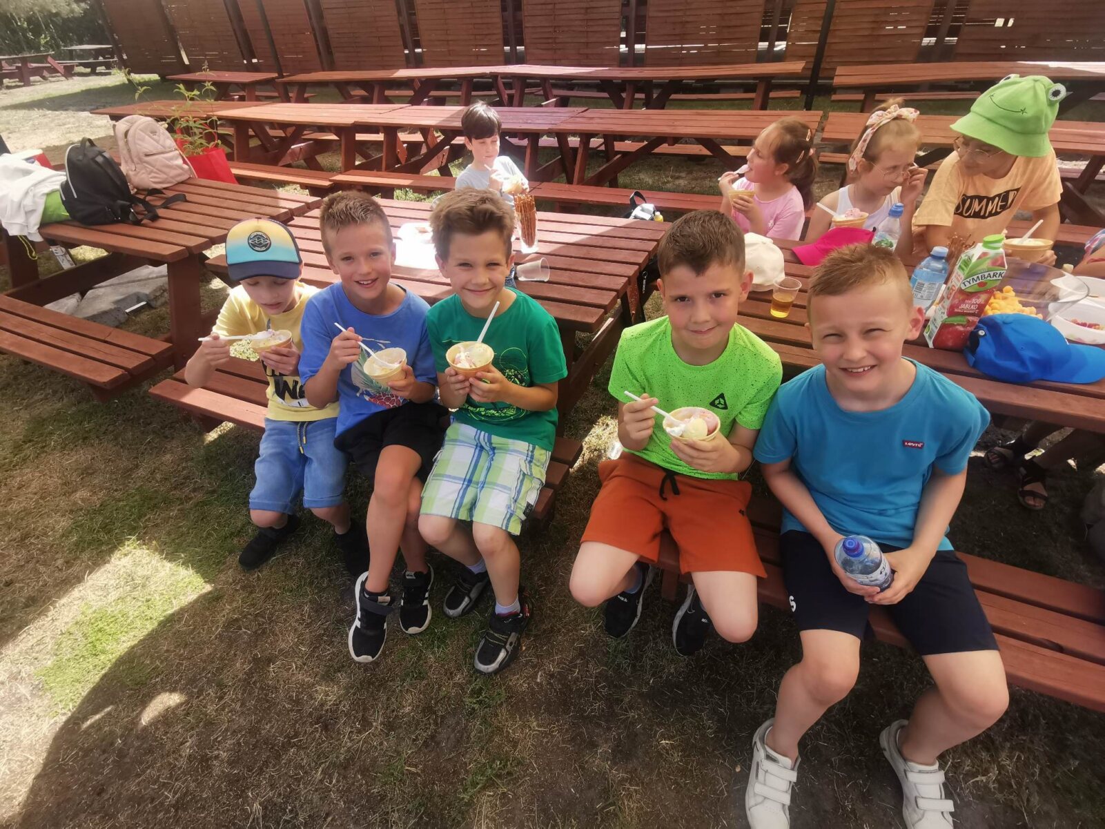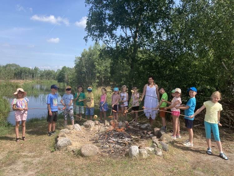 Uczniowie klasy 2c z wychowawcą Urszulą Bordyn przedostatni dzień roku szkolnego spędzili w bardzo aktywny sposób. Na zaproszenie rodziców ucznia Filipa Celmera wybrali się do Agrofarmy w Gołaszewie. Tego dnia dopisała nam wspaniała pogoda, dzięki, której mogliśmy cieszyć się kontaktem z naturą, czystym powietrzem i masą atrakcji. Hasłem przewodnim naszej wycieczki była natura. Prócz doskonałego zdrowego i aktywnego wypoczynku był czas na wesołe gry wśród drzew i krzewów, mecz towarzyski między uczniami. Po wspaniale aktywnie spędzonym czasie, dzieci bardzo zgłodniały i z apetytem posiliły się wspaniałym poczęstunkiem oraz smakowitymi kiełbaskami z ogniska przygotowanymi przez gospodarzy zagrody. Wrażeń nie było końca! Dziś możemy śmiało powiedzieć, że to był wspaniale zorganizowany wypoczynek. Wycieczka dostarczyła nam wielu wrażeń, emocji i zadowolenia. Wszyscy uczestnicy bezpiecznie wrócili do domu.