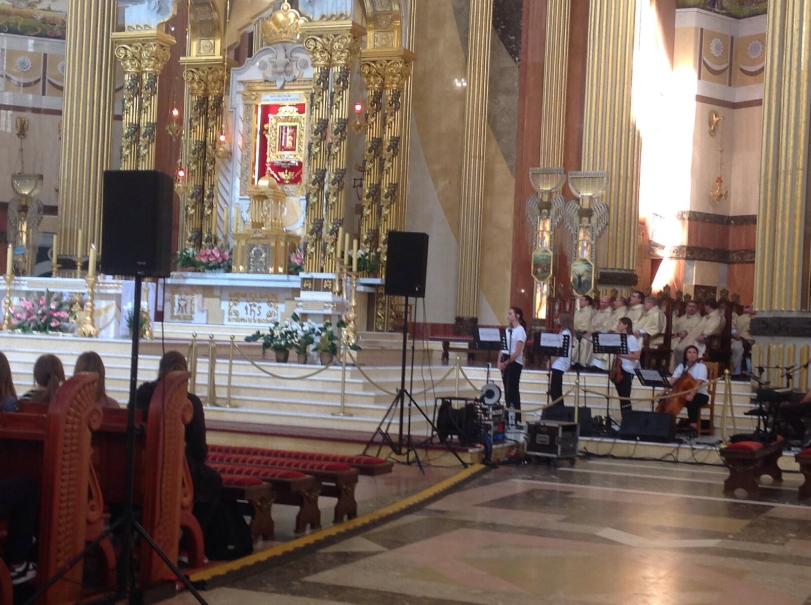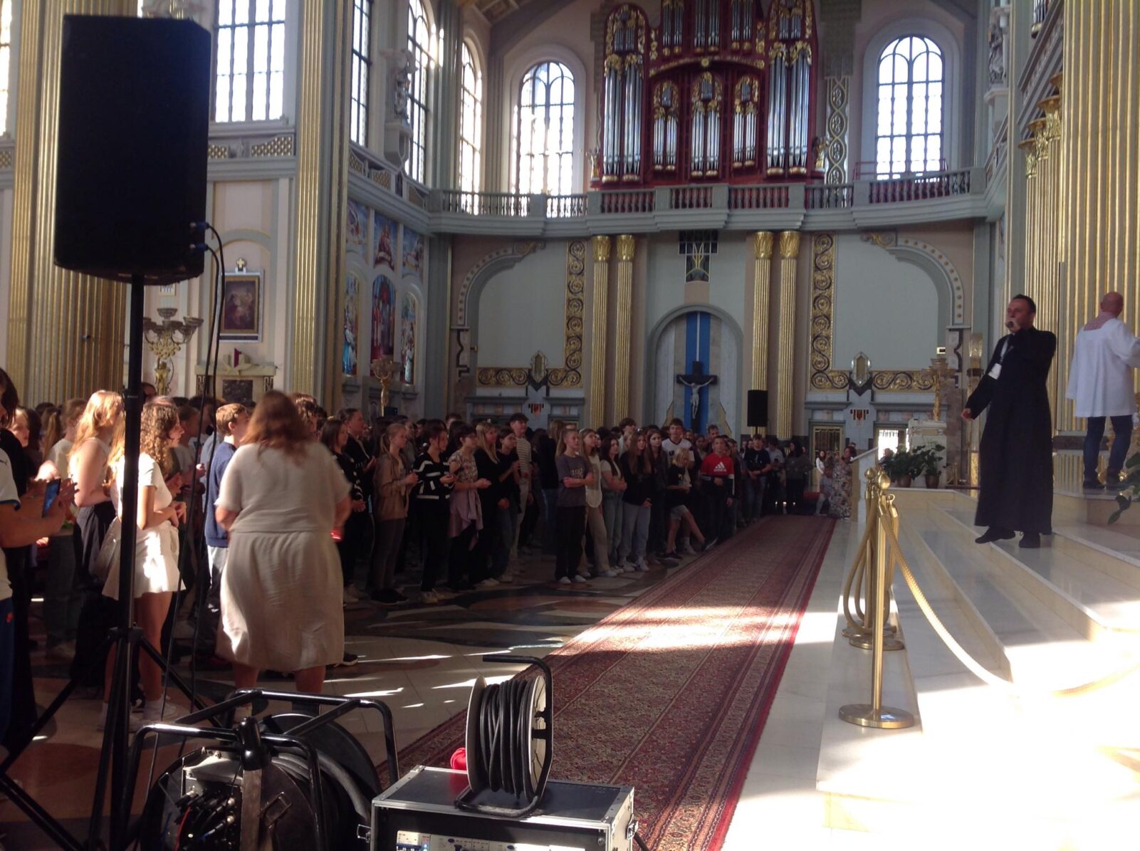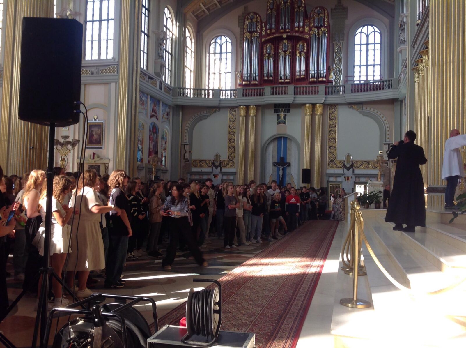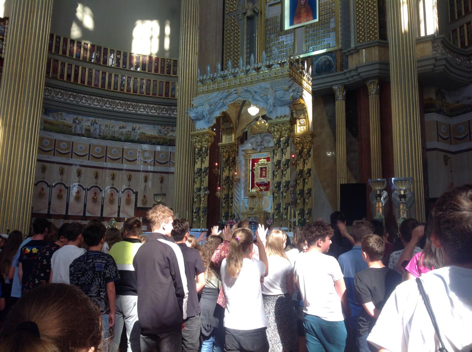Po spacerze licheńskimi dróżkami dotarliśmy do bazyliki wypełnionej po brzegi młodymi ludźmi. Najpierw rozpoczęło się spotkanie formacyjne, które poprowadził ks. Jakub Bartczak znany jako rapujący ksiądz. Kapłanowi akompaniował zespół muzyczny „Maksymalni” z Konina. Ksiądz mówił o potrzebie autentycznej relacji z Jezusem i wartości dojrzałej wiary. Nie zabrakło świadectw i szczerych wyznań. Z pewnością było to bardzo cenne doświadczenie dla młodych ludzi, którzy w swej naturze są pełni wątpliwości i poszukują prawdziwego oblicza Kościoła. Nauczania były przeplatane śpiewem, tańcem, a nawet rapowaniem „dla Jezusa”, bo warto robić „hałas dla Jezusa”. Ósmoklasiści zgromadzeni w bazylice byli pełni energii i z entuzjazmem śpiewali „ – Po co to wszystko? – Dla Jezusa”. Kapłan zachęcał do wsłuchania się w siebie i odkrycia głosu Boga, który na nas czeka. Zwracał także uwagę na wielką potrzebę świadków wiary. Wiara dojrzała objawia się w chęci spotkania z Chrystusem i tylko On nadaje sens naszemu życiu. „Pan Bóg powołuje Was, abyście zmieniali ten świat, a Kościół to przepiękna wspólnota podążająca ku Chrystusowi.