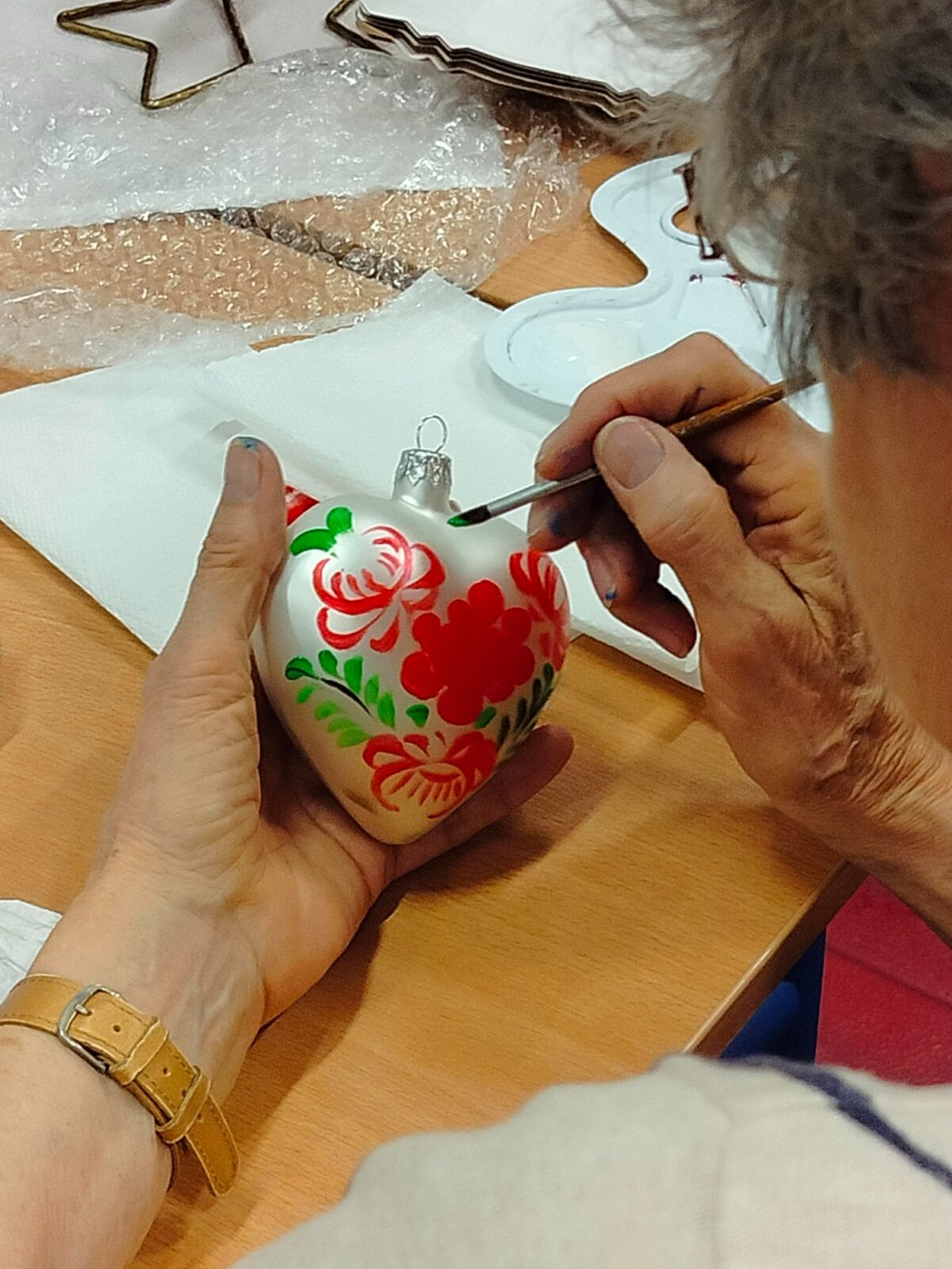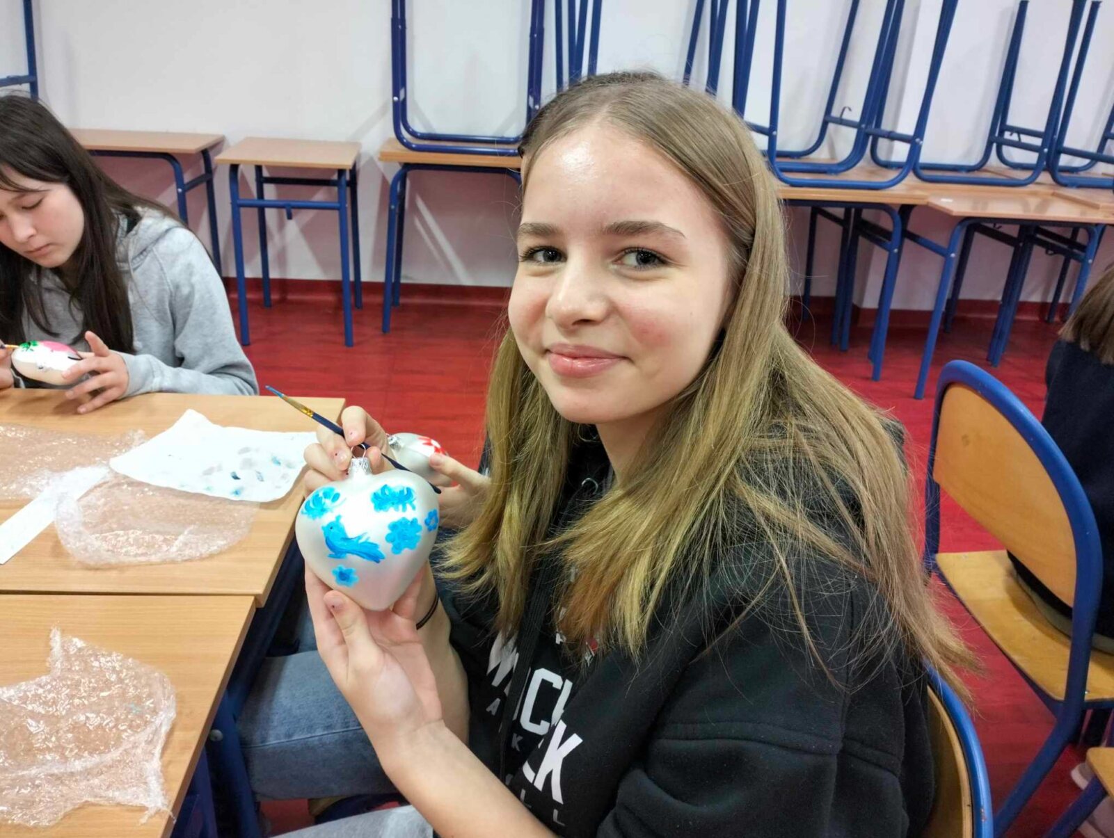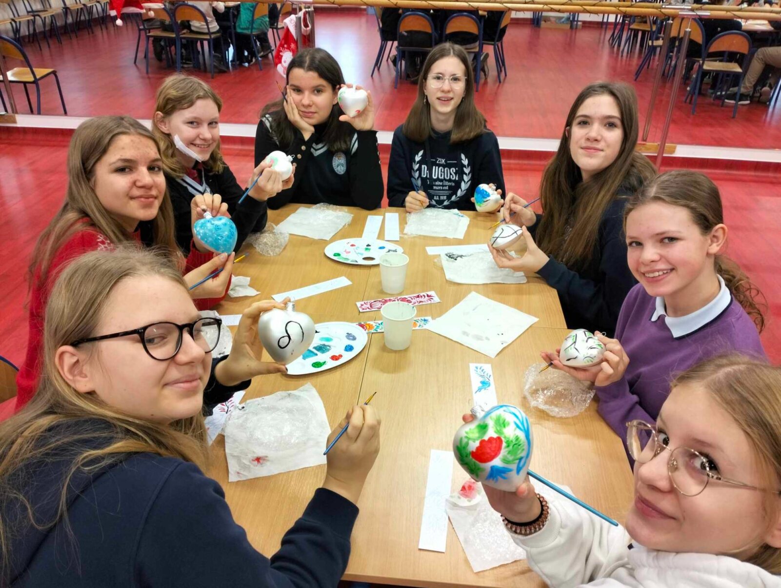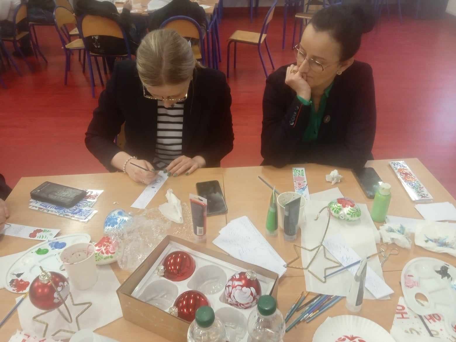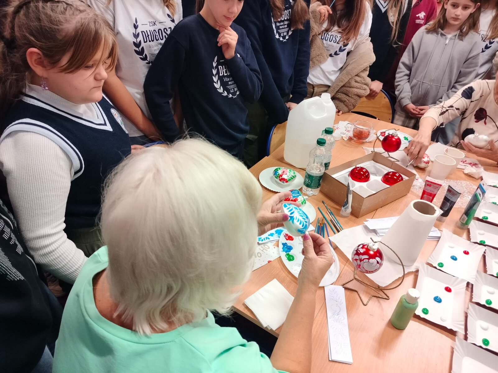 W dniu dzisiejszym odbyły się w naszej szkole warsztaty malowania bombek choinkowych zorganizowane przez p. Katarzynę Lewińską oraz Aleksandrę Michalak.