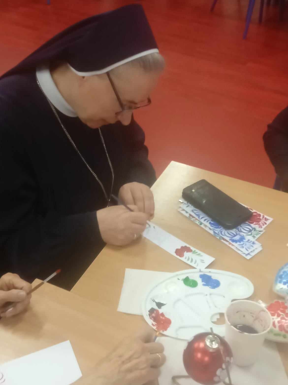Panie wiele nas nauczyły, pokazały jak pracować z pędzlem, jak tworzyć piękne wzory i przede wszystkim dobrze się bawić oraz odpoczywać, bo przecież jak wiadomo wszelkiego rodzaju prace plastyczne, nie tylko malowanie, ale również wycinanki, działają odprężająco, powodują, że się wyciszamy i zapominamy o codziennym pędzie. Pamiętajmy, że należy cieszyć się każdym dniem i czerpać z życia pełnymi garściami, a nasze zdrowie psychiczne jest równie ważne, jak fizyczne, o czym przypomniał nam uczeń klasy 1b Bartłomiej Burakowski, biorący udział w projekcie “ Offer Your Heart, Share Your Smile” .