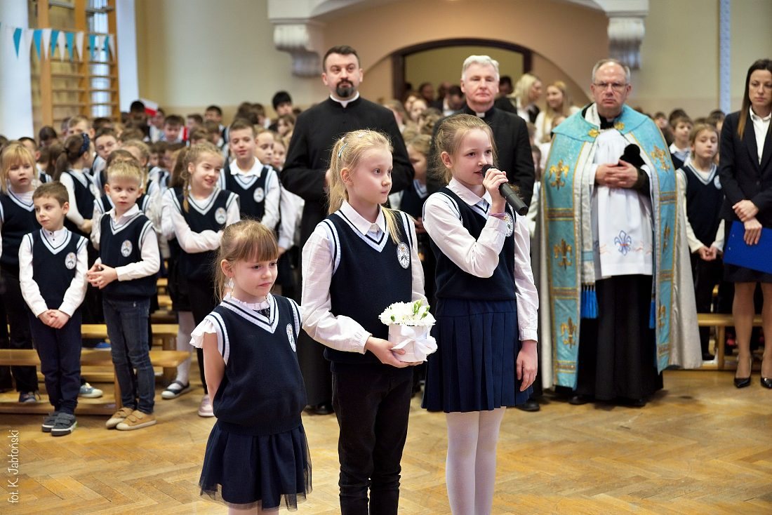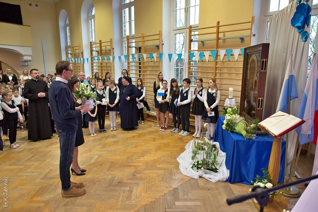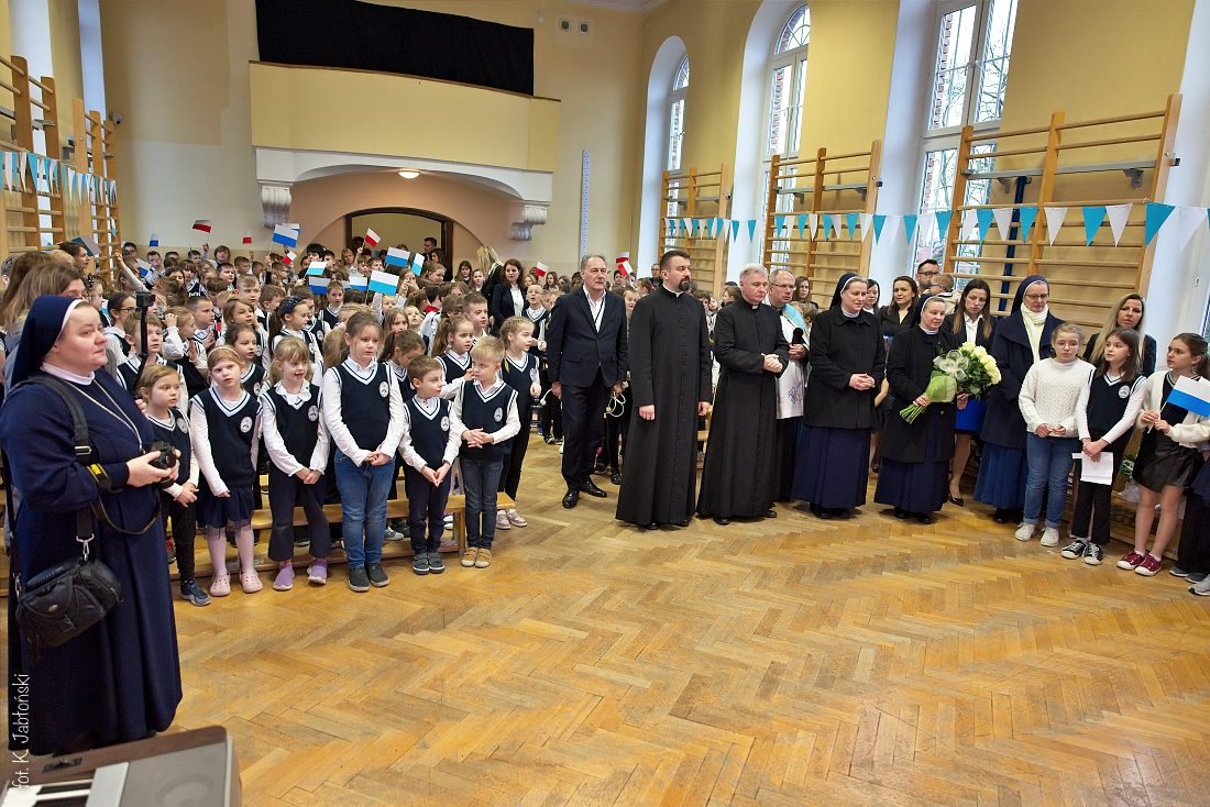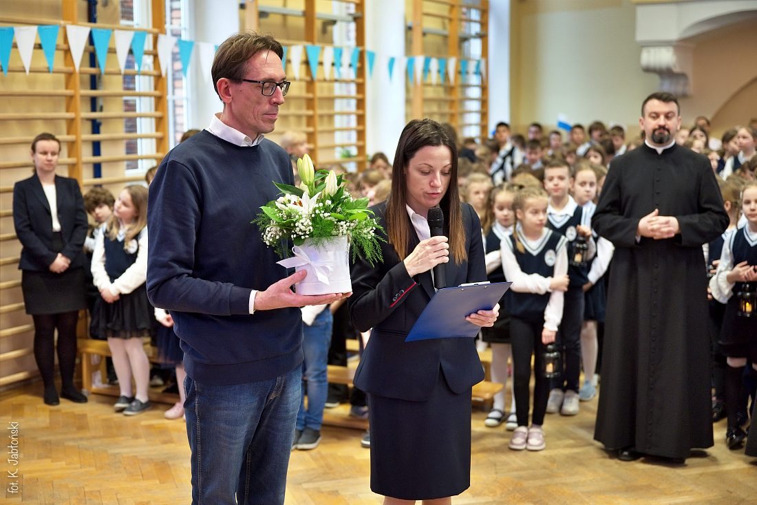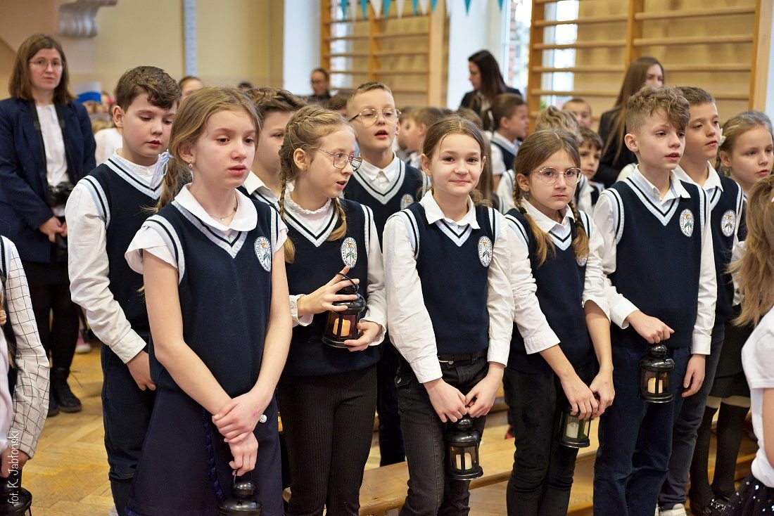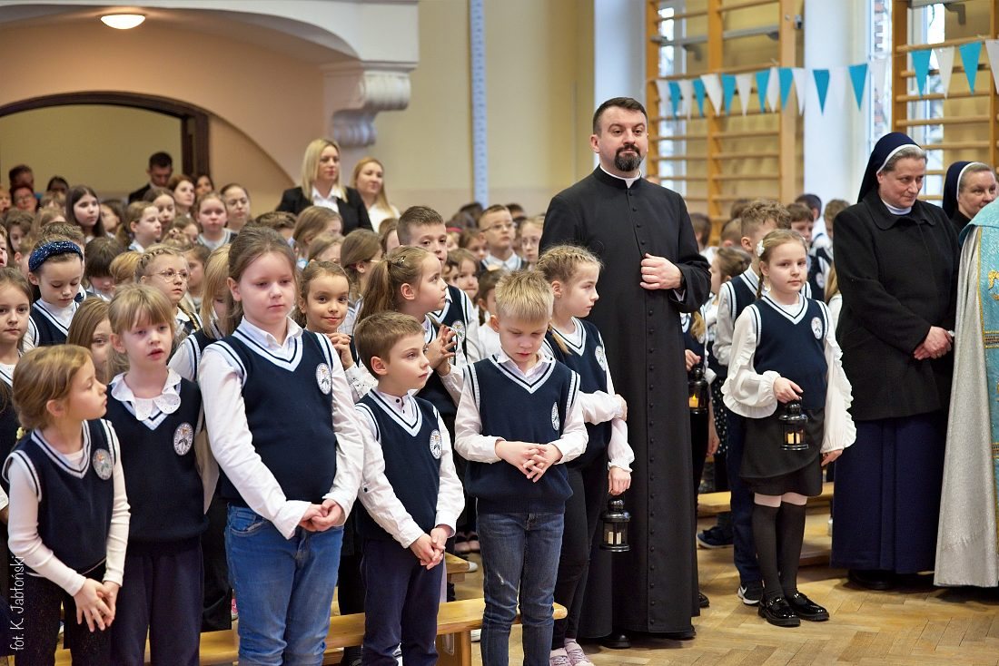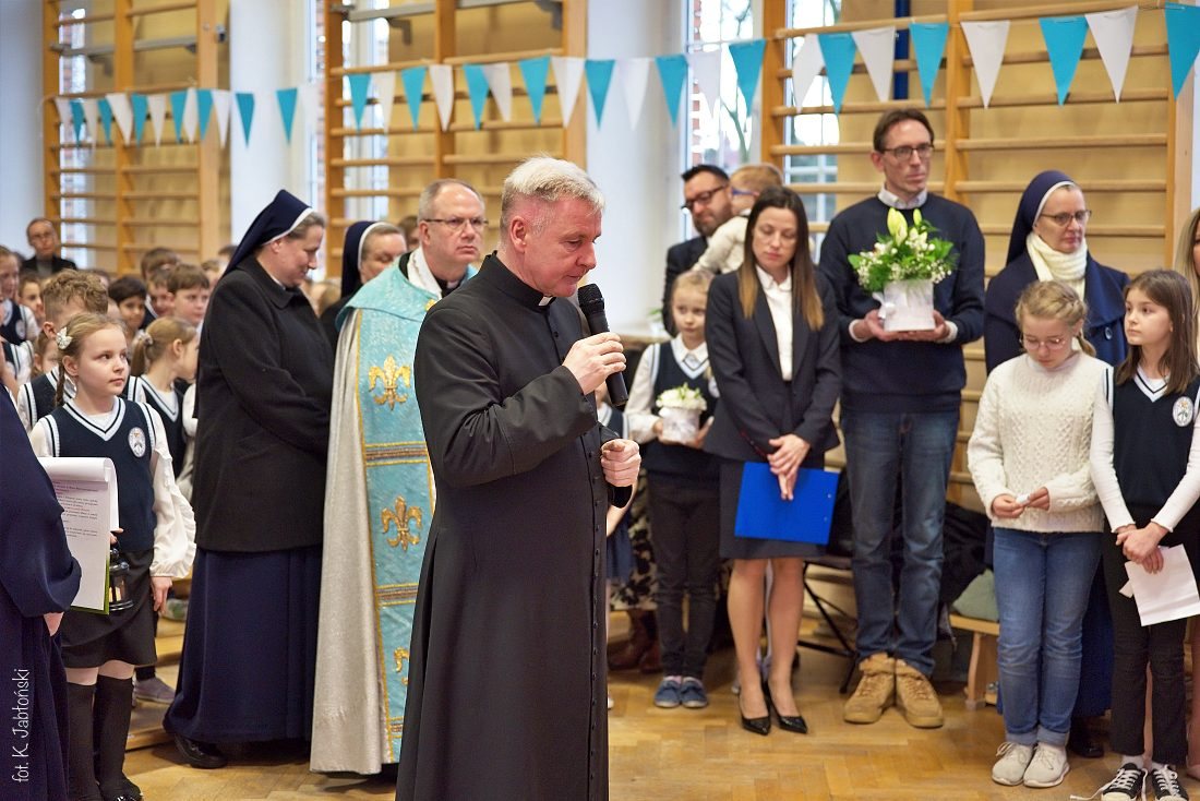 Przedszkolaki z wychowawczyniami wraz z ks. dyrektorem Jackiem Kędzierskim oraz ks. wicedyrektorem Sebastianem Tomczakiem uroczyście przywitali Ikonę przed budynkiem szkoły, by wspólnie udać się na salę gimnastyczną, gdzie z niecierpliwością czekali już pozostali uczniowie, nauczyciele oraz pracownicy Małego Długosza. Sala ta aż do piątku stała się miejscem modlitwy oraz duchowych uroczystości.
