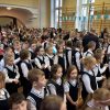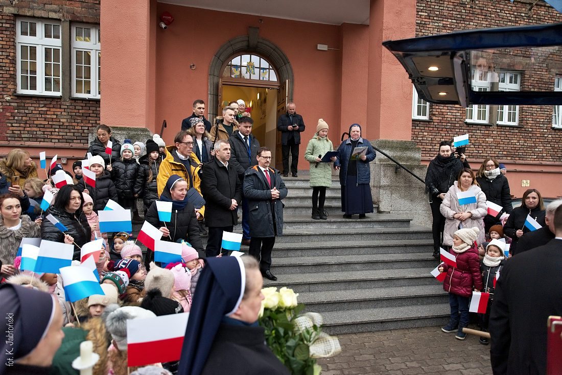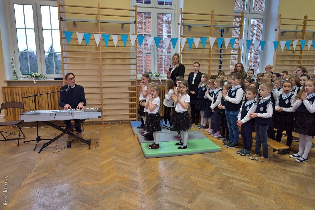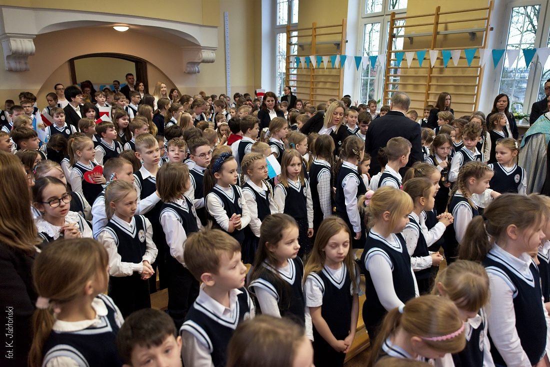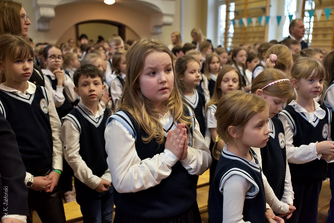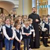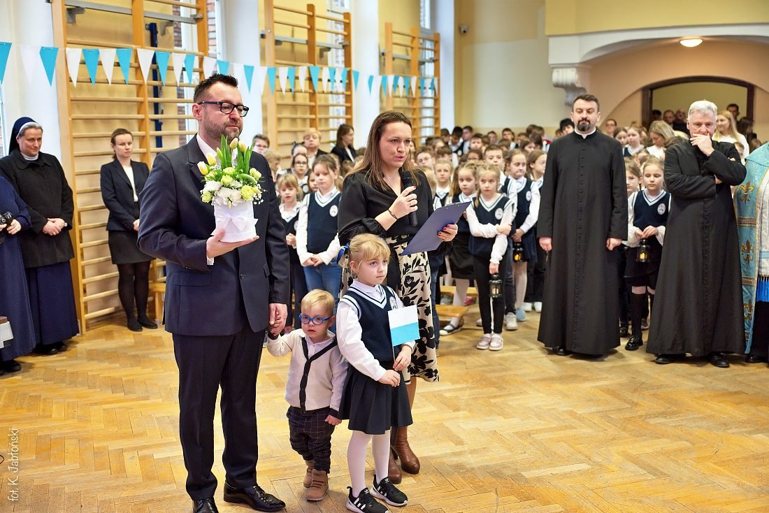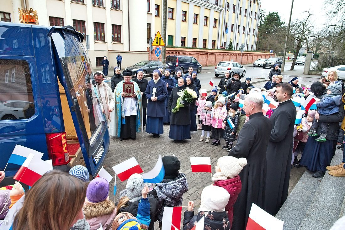 Przedszkolaki z wychowawczyniami wraz z ks. dyrektorem Jackiem Kędzierskim oraz ks. wicedyrektorem Sebastianem Tomczakiem uroczyście przywitali Ikonę przed budynkiem szkoły, by wspólnie udać się na salę gimnastyczną, gdzie z niecierpliwością czekali już pozostali uczniowie, nauczyciele oraz pracownicy Małego Długosza. Sala ta aż do piątku stała się miejscem modlitwy oraz duchowych uroczystości.