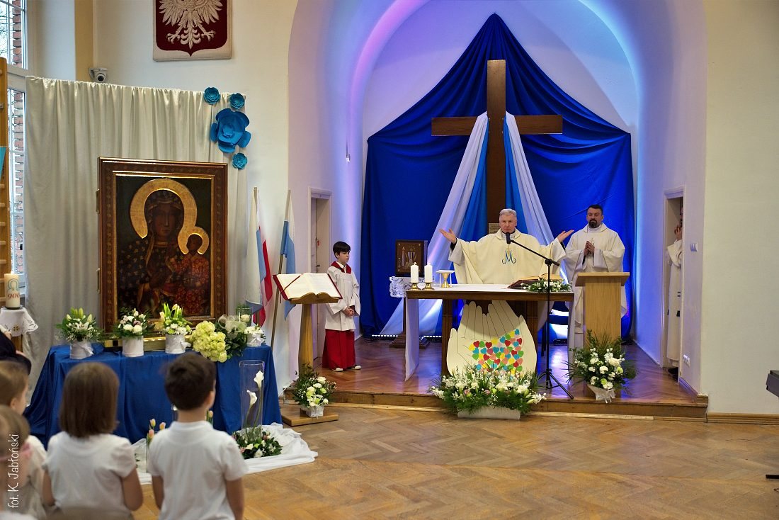Czas powitania Matki Bożej w Jej cudownym wizerunku w Małym Długoszu, to był dla wszystkich szczególny czas, czas spotkania Matki i Jej dzieci, czas wpatrywania się w Jej Oblicze, czas słuchania, dziękowania, przepraszania, uwielbiania, a nade wszystko czas zawierzania Maryi naszych rodzin, nas samych, szkoły i Ojczyzny. Maryja przyszła nie sama, przyszła ze swoim Synem – Jezusem na ręku, to na Niego kierowała naszą uwagę.