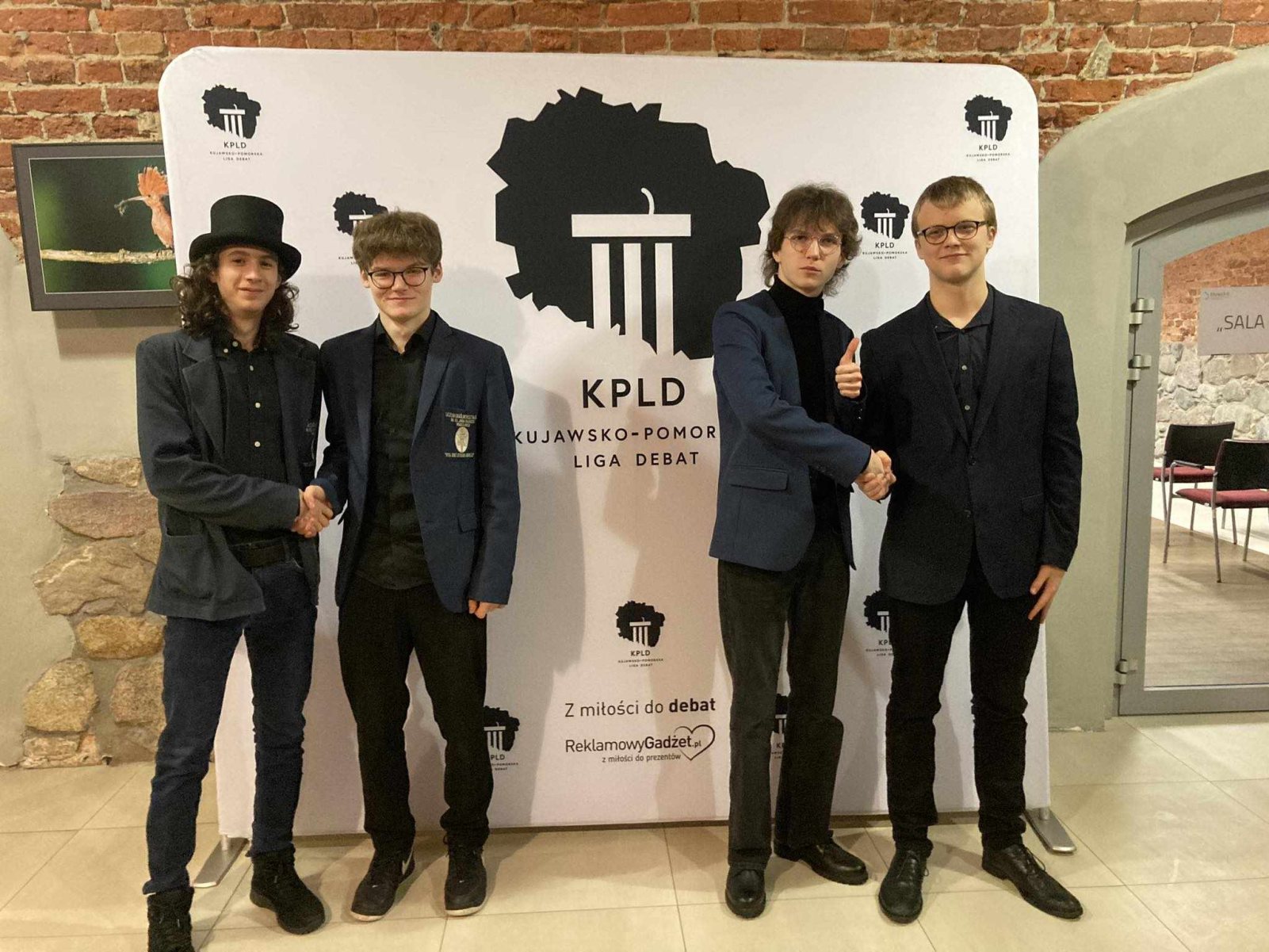 Niestety, w mediach od dawna obserwujemy obniżanie poziomu debaty publicznej, niedopuszczalne w merytorycznej dyskusji podnoszenie głosu, czy niepotrzebne wywoływanie emocji poprzez wysuwanie nieprawdziwych, często krzywdzących argumentów. Dlatego tak ważne jest zachęcanie młodzieży do brania udziału w inicjatywach uczących zasad właściwej dyskusji. Uczniowie naszego liceum wzięli udział w projekcie Sejmiku Województwa Kujawsko-Pomorskiego oraz Urzędu Miasta Torunia i Bydgoszczy zatytułowanym „Kujawsko-Pomorska Liga Debat”. Naszą szkołę reprezentowała drużyna w składzie: Jan Zarzecki, Bartosz Macieja, Wiktor Raniszewski oraz Kajetan Szabłowski. Zadaniem debatantów było obronienie tezy „ Czy wiedza o kulturze powinna być przywrócona do podstawy programowej kształcenia ogólnego?”.