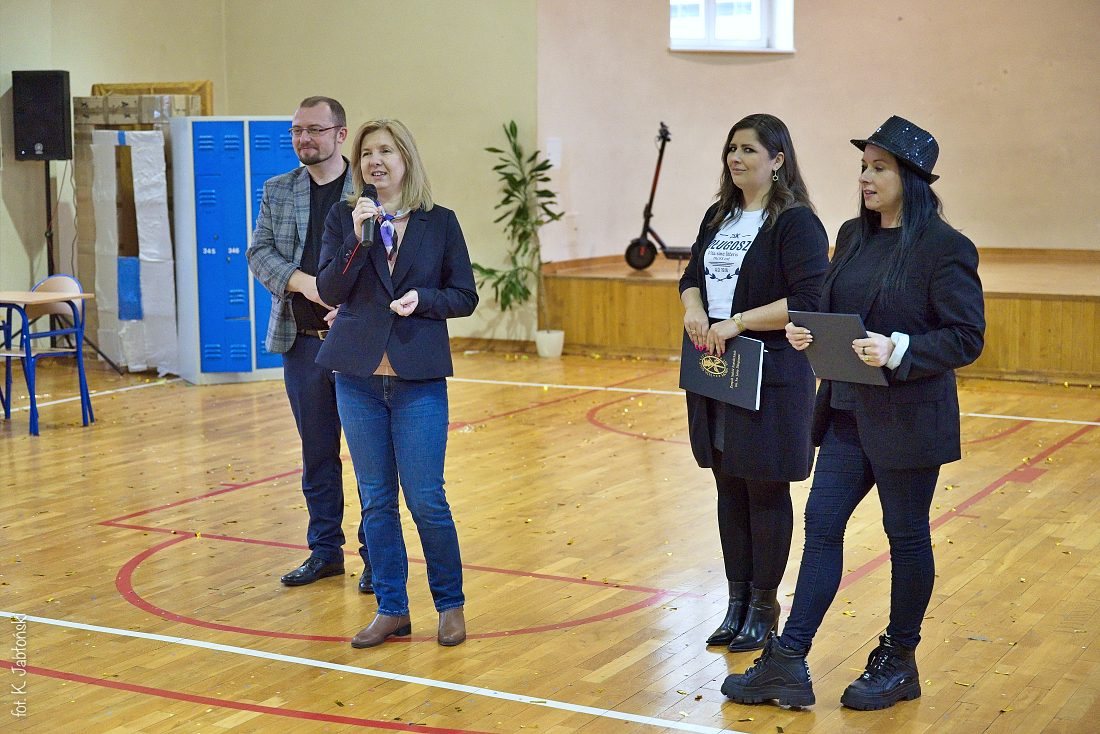 Wydarzenie poprowadzili w tym roku: Przewodnicząca SU liceum Aleksandra Politowska (2D LO), wspierana przez Nataszę Wiśniewską (2D LO) – członkinię SU, oraz Patryk Wąsik (2B LO).