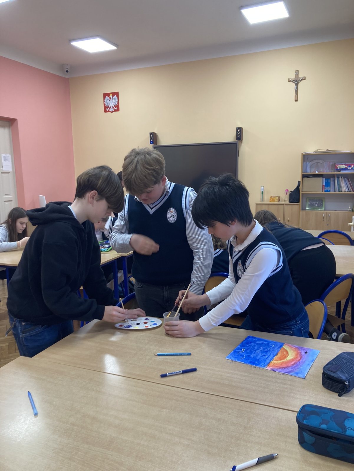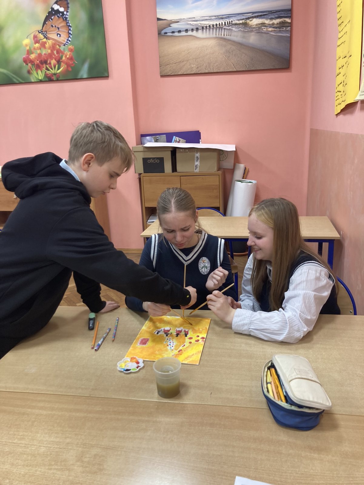 W ostatnim dniu nauki przed feriami zimowymi uczniowie szkoły podstawowej klas 6a, 6b oraz 7a uczestniczyli w zajęciach proedukacyjnych w ramach Olimpiady „Zwolnieni z Teorii”. Projekt nosił nazwę „Odmaluj Umysł” i został przeprowadzony przez uczennice I LO im. Ziemi Kujawskiej we Włocławku.
