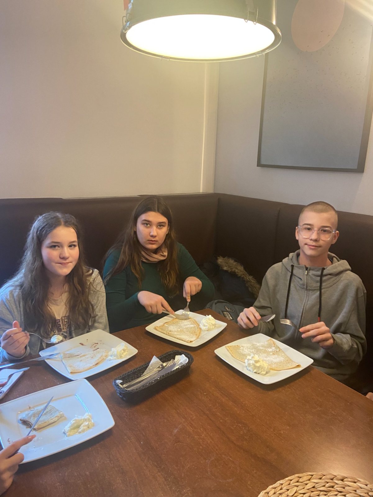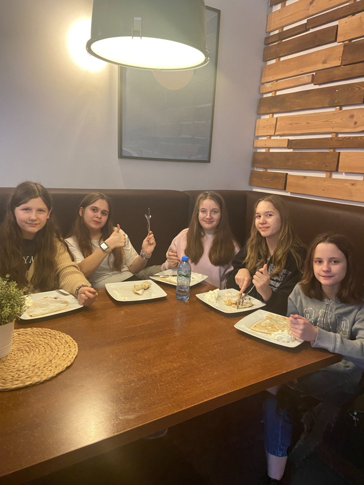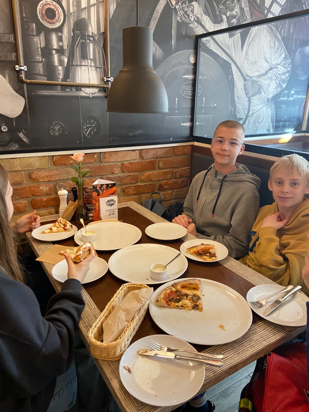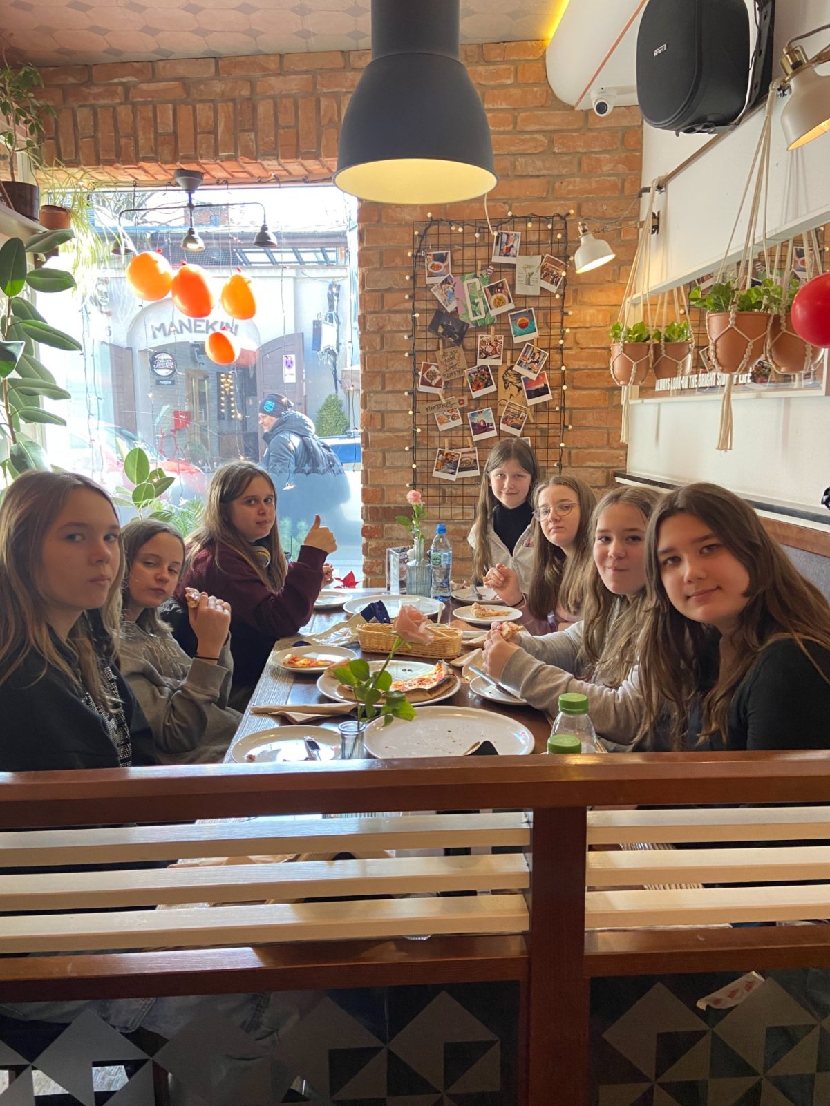 W środę 14. lutego br. nasz dzień tradycyjnie rozpoczęliśmy od zbiórki, lecz tym razem na dworcu PKP, ponieważ jechaliśmy do Torunia pociągiem. Tam czekał na nas Dom Kłódek, w którym nasi uczestnicy rozwiązywali zagadki, aby zwycięsko uporać się z wyzwaniami, jakie ofrował escape room, i znów wszyscy bawili się doskonale. Kolejnym punktem programu była degustacja pizzy w pizzerii Grande, w której zamówiliśmy pizze margerity z serem mozzarellla i sosem pomidorowym. Choć jedzenie było pyszne, nie siedzieliśmy tam za długo, bo czekało na nas zwiedzanie pięknego Starego Miasta, które oferuje mnóstwo ciekawych miejsc do odwiedzenia. Aż żal było wyjeżdżać do rodzinnego miasta. Usatysfakcjonowani kolejnym dniem, pojechaliśmy pociągiem do Włocławka.