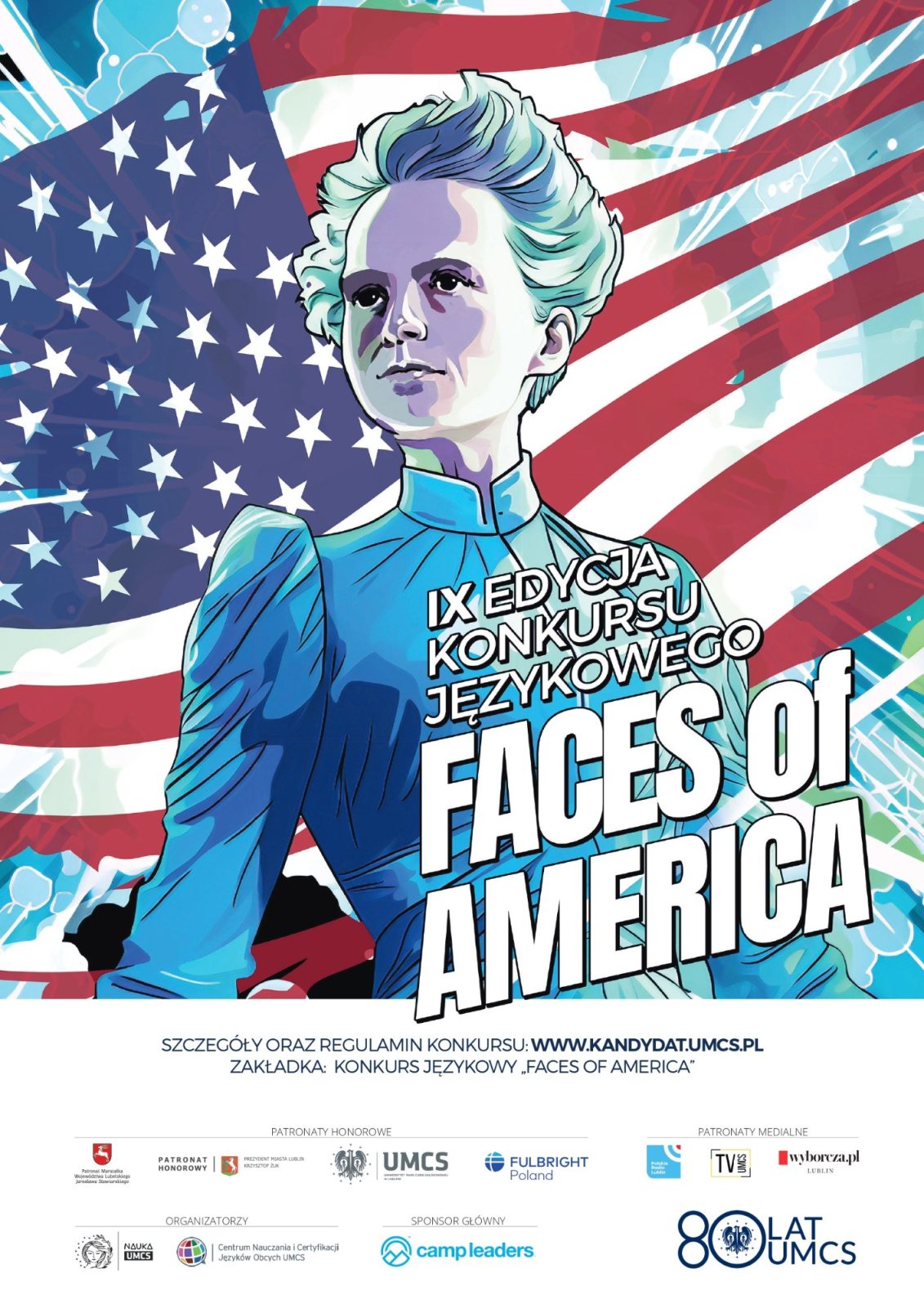 Konkurs Językowy „Faces of America” jest wyjątkowym przedsięwzięciem, którego głównym celem jest promowanie znajomości języka angielskiego, podniesienie poziomu umiejętności językowych wśród uczniów szkół ponadpodstawowych, a także popularyzowanie wiedzy na temat kultury amerykańskiej.