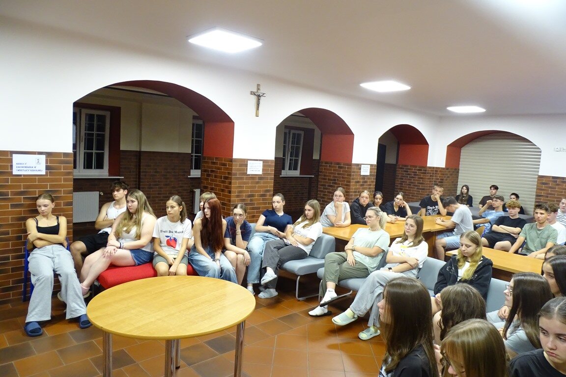 W dniu 04.09.2024r. odbyło się spotkanie wychowanków internatu z ks. dyrektorem dr. Jackiem Kędzierskim oraz kadrą internatu na czele z kierownik p. Anetą Wąsik. W zebraniu uczestniczył także katecheta ks. Adam Zieliński.