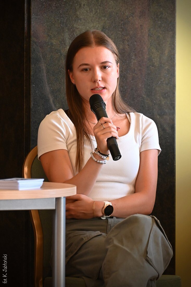 Z pewnością bardzo ciekawym wątkiem rozmowy była „przeprowadzka” do USA, aby spróbować swoich sił w nowym otoczeniu i na nowo zakochać się w bieganiu. Klaudia przybliżyła charakterystykę studiowana w Stanach Zjednoczonych oraz opowiedziała jak wyglądała rekrutacja na tamtejszą uczelnię. Wszyscy zgromadzeni byli oczywiście ciekawi wrażeń z olimpiady w Paryżu. Nasz gość podzielił się ogromnymi emocjami związanymi z zaprzysiężeniem na olimpijczyka i samym udziałem w zawodach oraz wrażeniami z wioski olimpijskiej. Klaudia podkreśliła fantastyczną atmosferę panującą wśród sportowców podczas igrzysk.