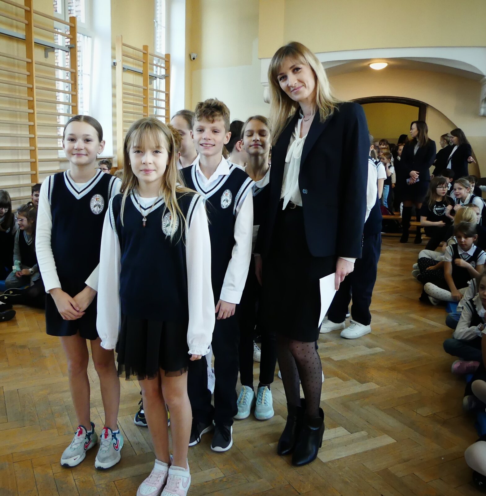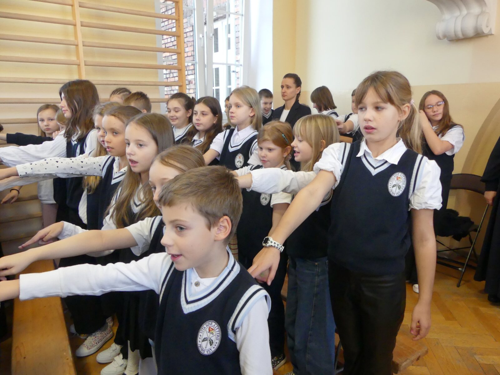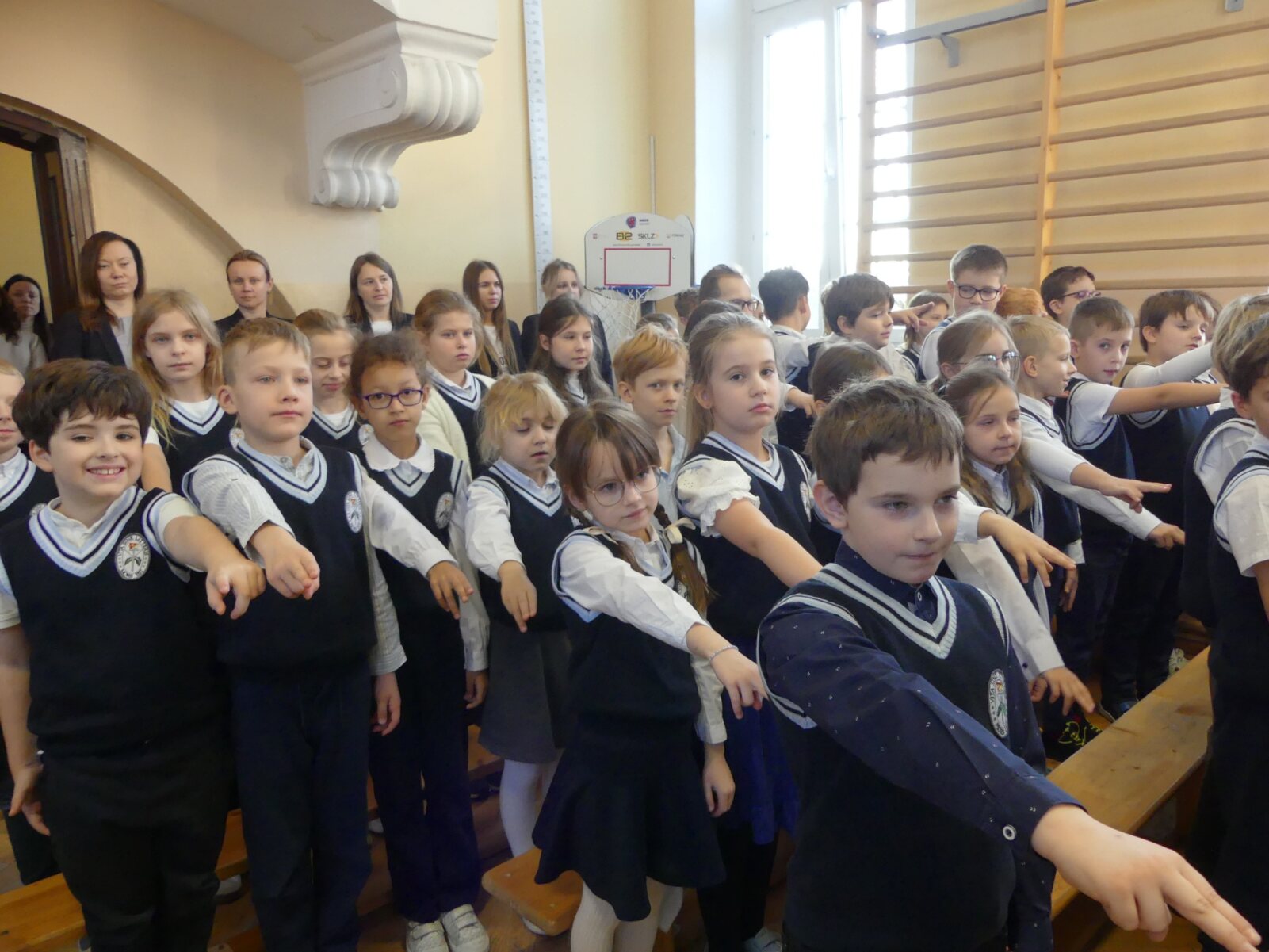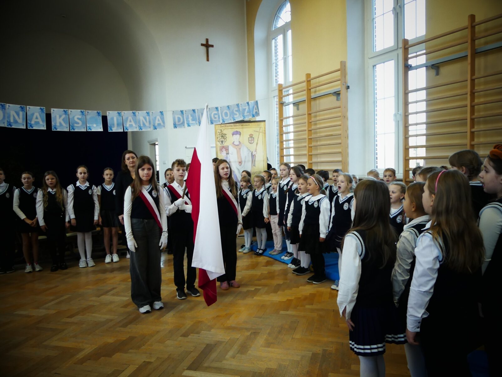Podczas apelu uczniowie klasy 4c przybliżyli najważniejsze fakty dotyczące życia i działalności patrona szkoły. W przedstawieniu przypomniano jego zasługi jako kapłana, nauczyciela, wychowawcy, historyka, a także ogromny wkład w rozwój polskiej edukacji i kultury. Szkolna scena, na czas przedstawienia, stała się wyjątkową lekcją, podczas której uczniowie z ogromnym zaangażowaniem opowiadali o patronie szkoły. Pełen radości był także wokalno-artystyczny występ uczniów kl. 1b. Dziękujemy za pomoc wychowawcy klasy – pani Paulinie Makowskiej!