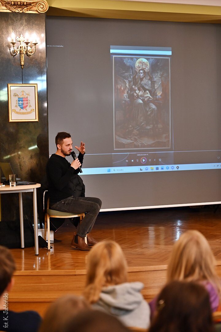22. listopada mieliśmy ogromną przyjemność gościć naszego kolejnego absolwenta, artystę malarza, Daniela Pawłowskiego. Daniel ukończył nasze gimnazjum blisko 20 lata temu, więc był jednym z naszych pierwszych absolwentów.