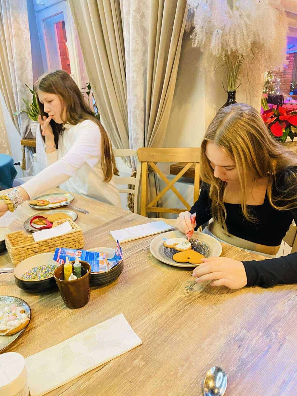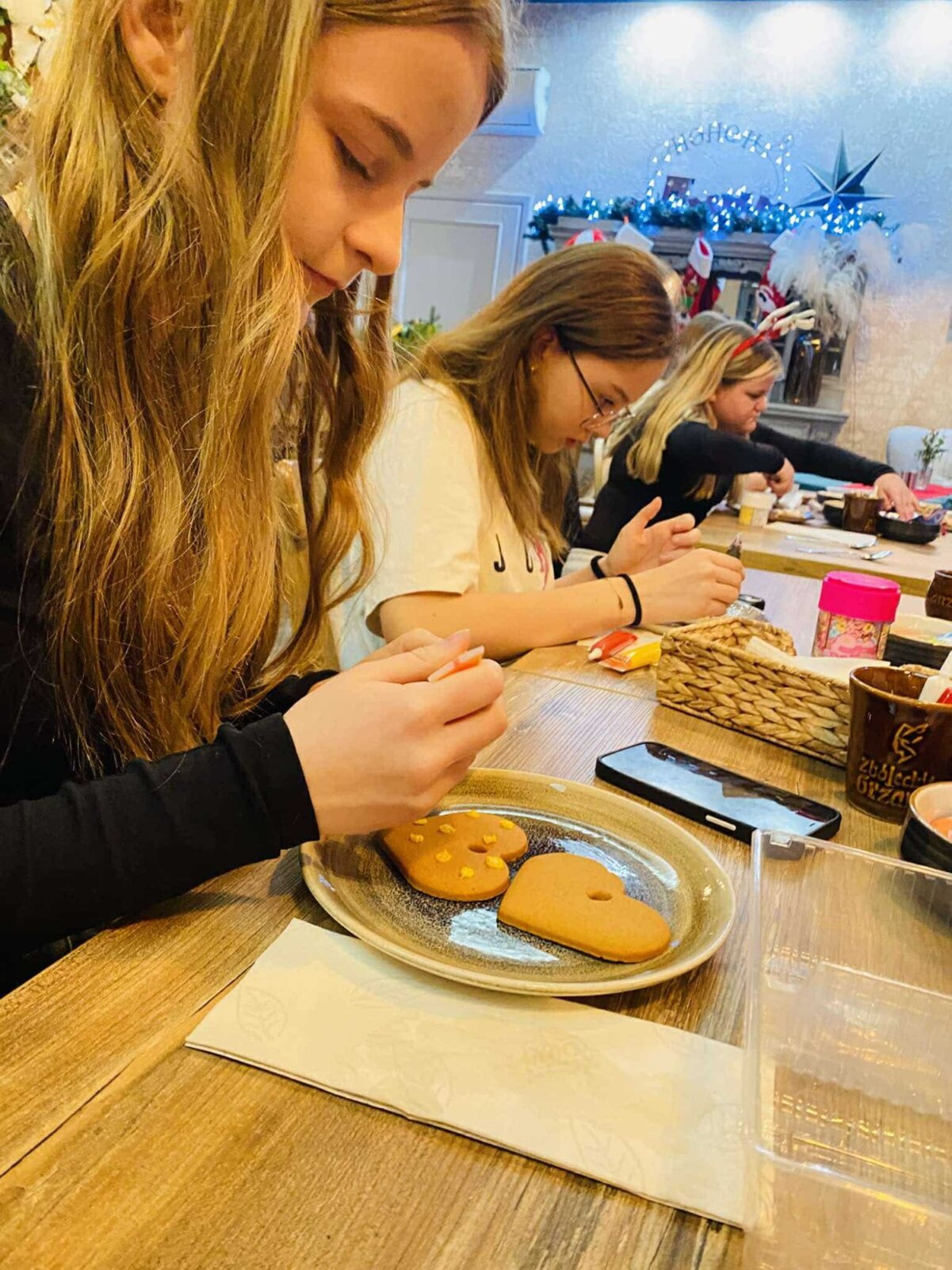 Dzieci wykonały przepiękne wianki świąteczne, następnie zjadły pyszne naleśniki z dodatkami i na koniec własnoręcznie udekorowały pierniki, którymi ozdobiły swoją klasową choinkę. Nie zabrakło również prezentów, które w imieniu św. Mikołaja rozdała p. Kasia.