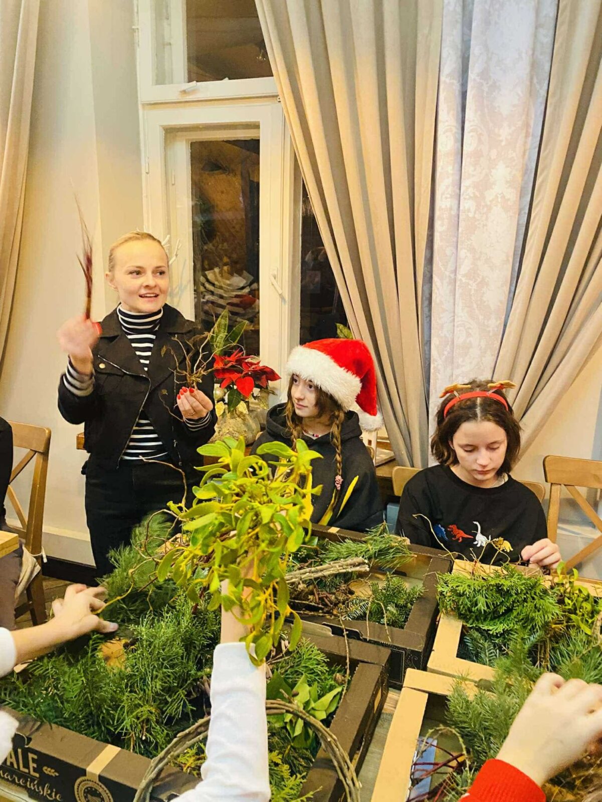 Uczniowie klasy 6c SP, wraz z wychowawczynią p. Katarzyną Lewińską, udali się na warsztaty wiankowe, które przygotowała p. Agnieszka Ligowska i jej współpracownicy z Forest Studio. Całe spotkanie odbyło się  w cudownej świątecznej atmosferze oraz urozmaicone było pysznym posiłkiem dzięki uprzejmości Restauracji Dziedziniec we Włocławku.