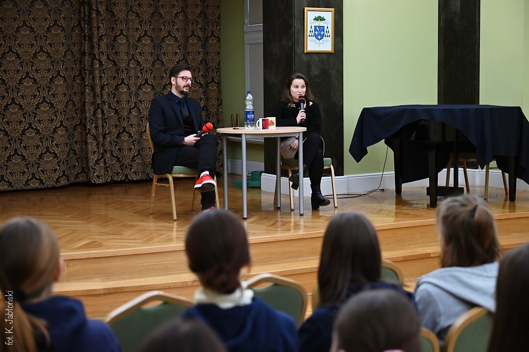 W poniedziałkowy poranek uczniowie szkoły podstawowej i liceum mieli okazję wziąć udział w kolejnym z serii spotkań z absolwentami naszej szkoły. Tym razem mieliśmy przyjemność gościć Panią Paulinę Gałązkiewicz – psycholog i psychoterapeutkę.