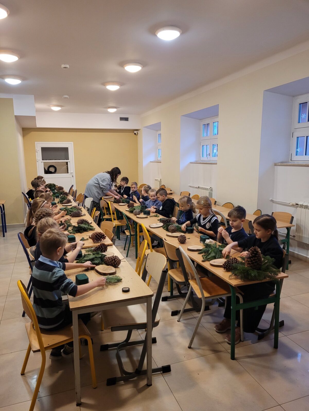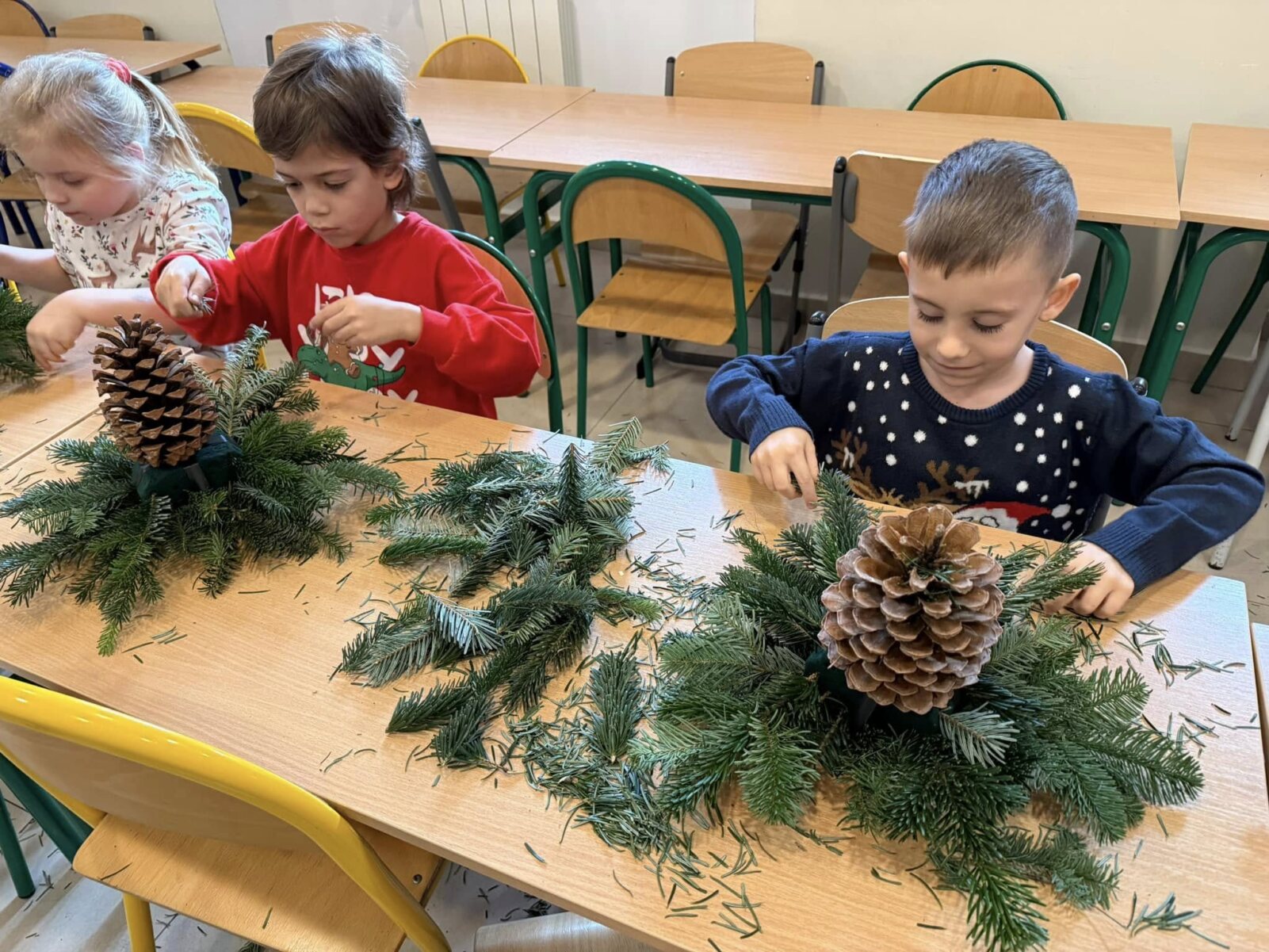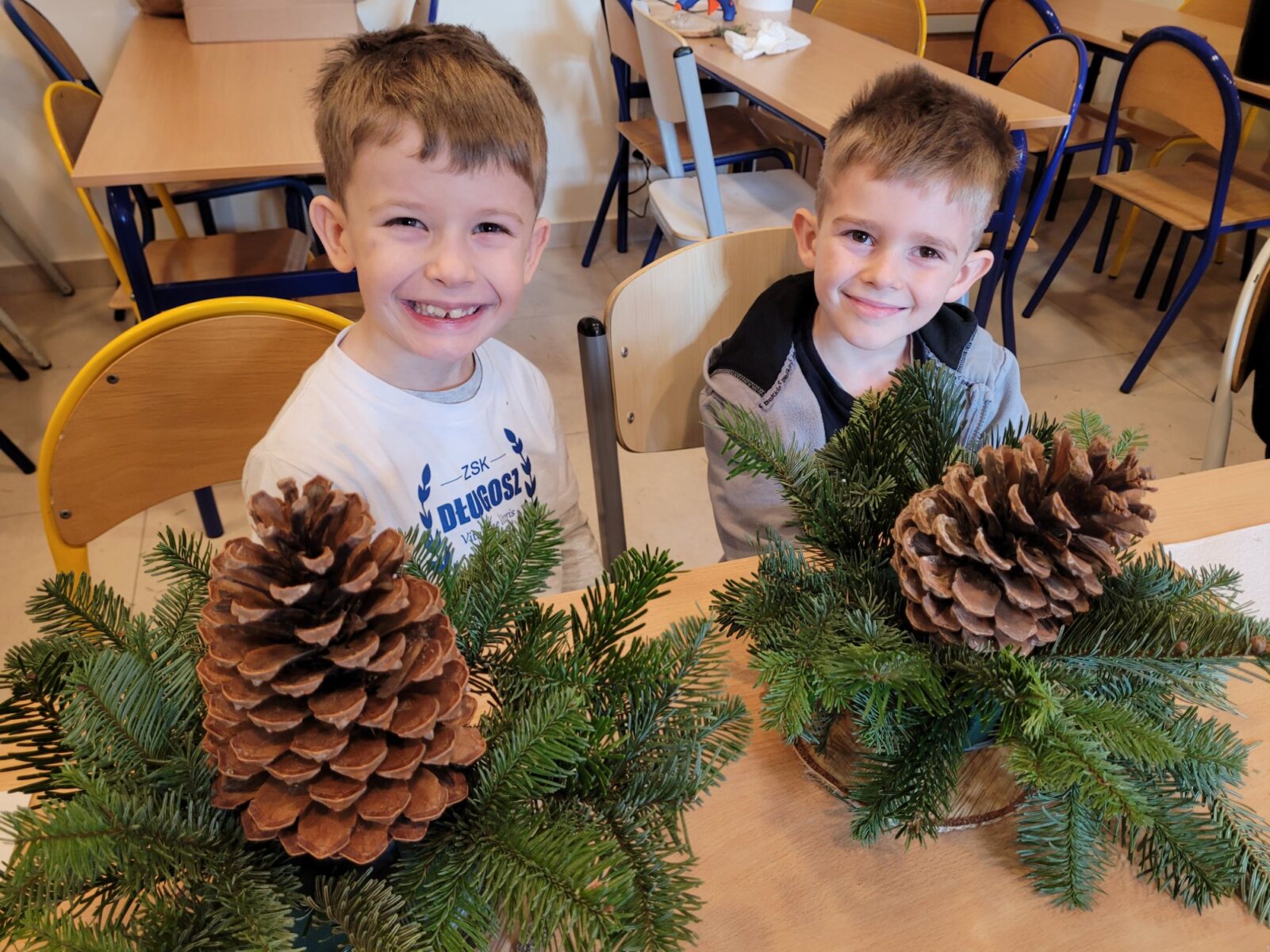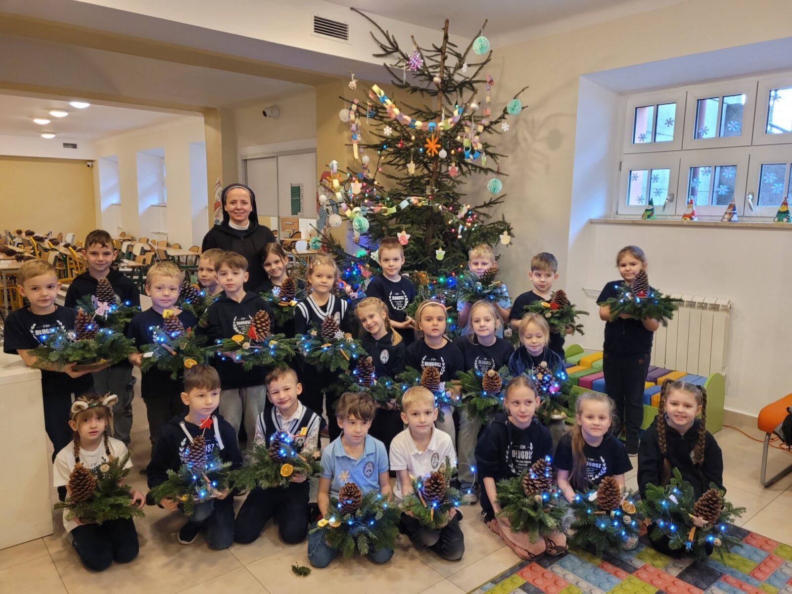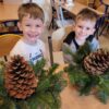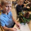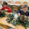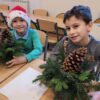 Zbliża się najpiękniejszy okres w roku – Święta Bożego Narodzenia. Warsztaty świąteczne to idealny pomysł na spędzenie tego czasu i moment, aby wczuć się w ten świąteczny klimat. 18 grudnia 2024 roku w grupie 5 latków A oraz w klasach I a i b odbyły się właśnie takie warsztaty. Zajęcia poprowadziła znana i niezawodna p. Maja Piwnicka – florystka, która często gości w naszej długoszowskiej społeczności. Celem zajęć było rozwijanie sprawności manualnej oraz wzbogacenie wiadomości przyrodniczych. Zajęcia rozpoczęły się od poznania nazw mało znanych roślin oraz przypomnieniem jak należy dbać o rośliny. Następnym etapem było namaczanie gąbki, w której dzieci tworzyły kompozycję z pięknie pachnącej jodły. Ogromnym zaskoczeniem i zaciekawieniem była mocowana do gąbki szyszka, która była bardzo duża. W kolejnej części warsztatów dzieci upiększyły stroik ozdobami świątecznymi. Skupienie i zaangażowanie było bardzo widoczne na twarzach dzieci. W końcowym etapie zostały doczepione światełka. Na koniec dzieci mogły zrobić sobie zdjęcie z wykonaną pracą, a następnie zabrać do domu. Serdecznie dziękujemy p. Mai za trud włożony w przygotowanie warsztatów oraz za niezwykle kreatywne zajęcia.