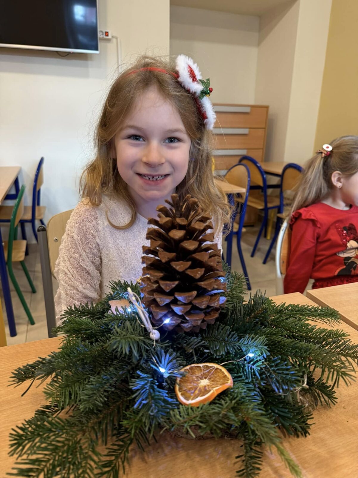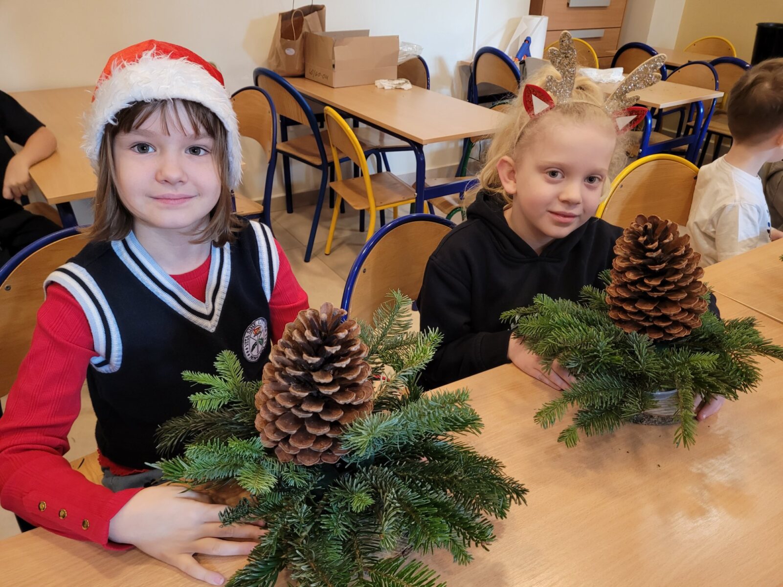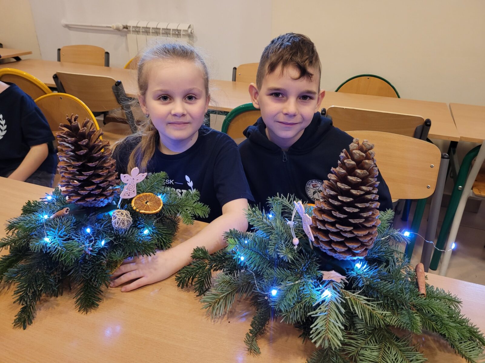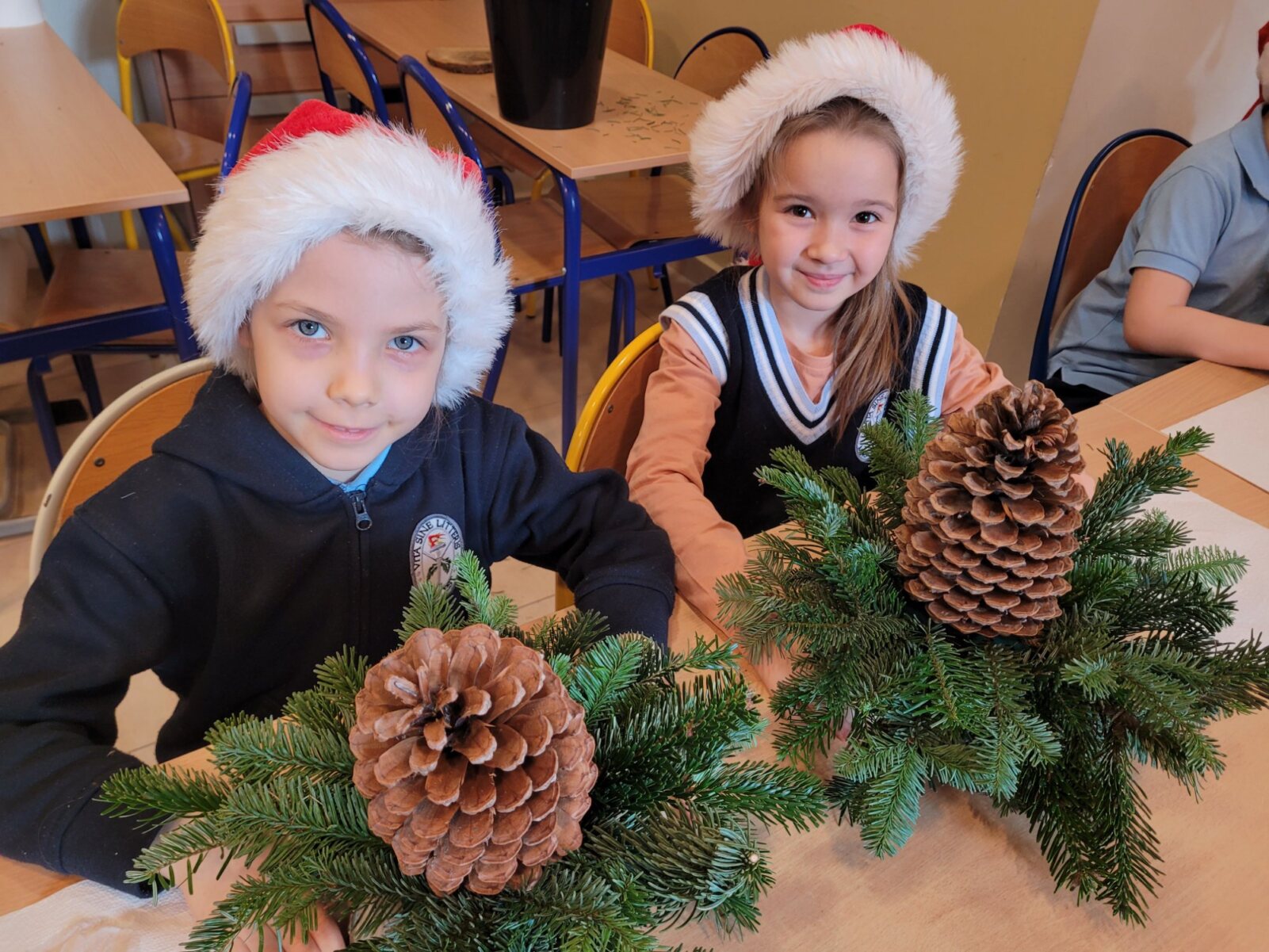 Zbliża się najpiękniejszy okres w roku – Święta Bożego Narodzenia. Warsztaty świąteczne to idealny pomysł na spędzenie tego czasu i moment, aby wczuć się w ten świąteczny klimat. 18 grudnia 2024 roku w grupie 5 latków A oraz w klasach I a i b odbyły się właśnie takie warsztaty. Zajęcia poprowadziła znana i niezawodna p. Maja Piwnicka – florystka, która często gości w naszej długoszowskiej społeczności. Celem zajęć było rozwijanie sprawności manualnej oraz wzbogacenie wiadomości przyrodniczych. Zajęcia rozpoczęły się od poznania nazw mało znanych roślin oraz przypomnieniem jak należy dbać o rośliny. Następnym etapem było namaczanie gąbki, w której dzieci tworzyły kompozycję z pięknie pachnącej jodły. Ogromnym zaskoczeniem i zaciekawieniem była mocowana do gąbki szyszka, która była bardzo duża. W kolejnej części warsztatów dzieci upiększyły stroik ozdobami świątecznymi. Skupienie i zaangażowanie było bardzo widoczne na twarzach dzieci. W końcowym etapie zostały doczepione światełka. Na koniec dzieci mogły zrobić sobie zdjęcie z wykonaną pracą, a następnie zabrać do domu. Serdecznie dziękujemy p. Mai za trud włożony w przygotowanie warsztatów oraz za niezwykle kreatywne zajęcia.