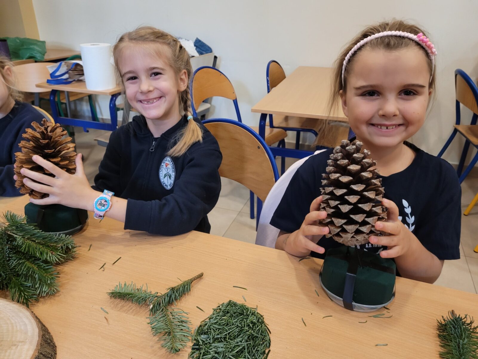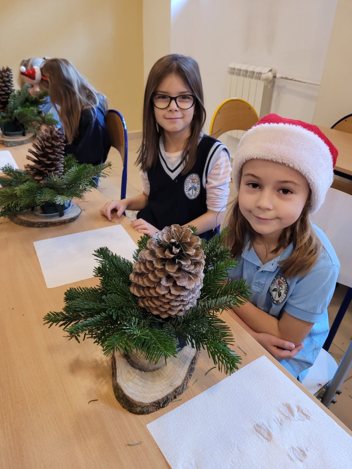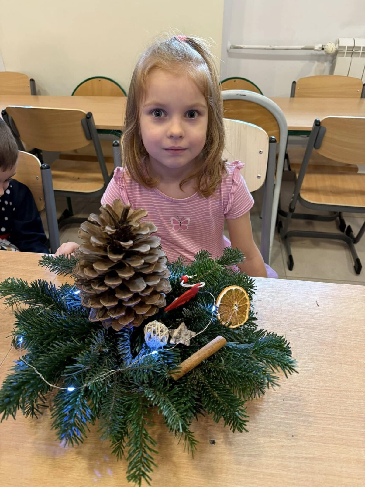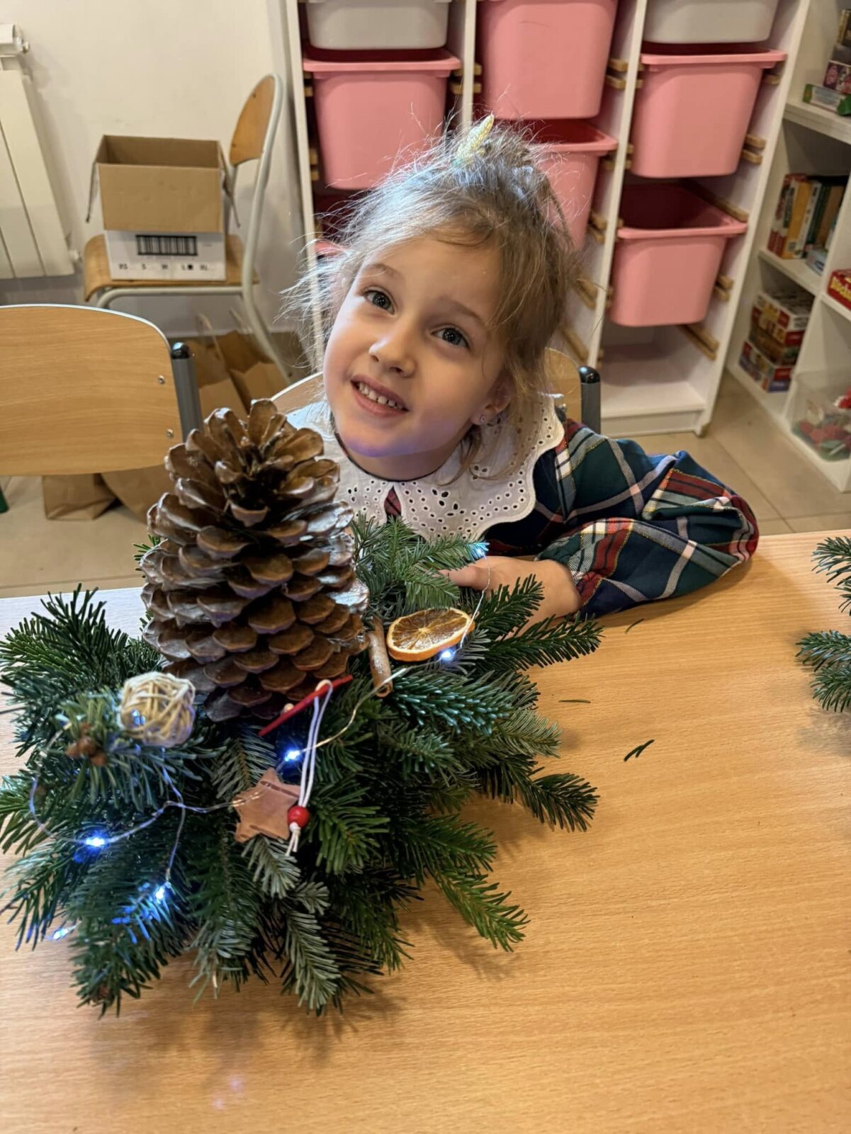 Zbliża się najpiękniejszy okres w roku – Święta Bożego Narodzenia. Warsztaty świąteczne to idealny pomysł na spędzenie tego czasu i moment, aby wczuć się w ten świąteczny klimat. 18 grudnia 2024 roku w grupie 5 latków A oraz w klasach I a i b odbyły się właśnie takie warsztaty. Zajęcia poprowadziła znana i niezawodna p. Maja Piwnicka – florystka, która często gości w naszej długoszowskiej społeczności. Celem zajęć było rozwijanie sprawności manualnej oraz wzbogacenie wiadomości przyrodniczych. Zajęcia rozpoczęły się od poznania nazw mało znanych roślin oraz przypomnieniem jak należy dbać o rośliny. Następnym etapem było namaczanie gąbki, w której dzieci tworzyły kompozycję z pięknie pachnącej jodły. Ogromnym zaskoczeniem i zaciekawieniem była mocowana do gąbki szyszka, która była bardzo duża. W kolejnej części warsztatów dzieci upiększyły stroik ozdobami świątecznymi. Skupienie i zaangażowanie było bardzo widoczne na twarzach dzieci. W końcowym etapie zostały doczepione światełka. Na koniec dzieci mogły zrobić sobie zdjęcie z wykonaną pracą, a następnie zabrać do domu. Serdecznie dziękujemy p. Mai za trud włożony w przygotowanie warsztatów oraz za niezwykle kreatywne zajęcia.