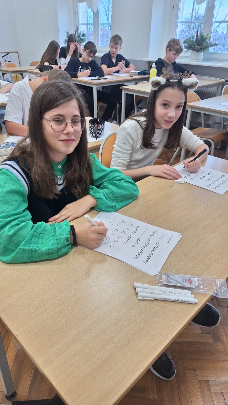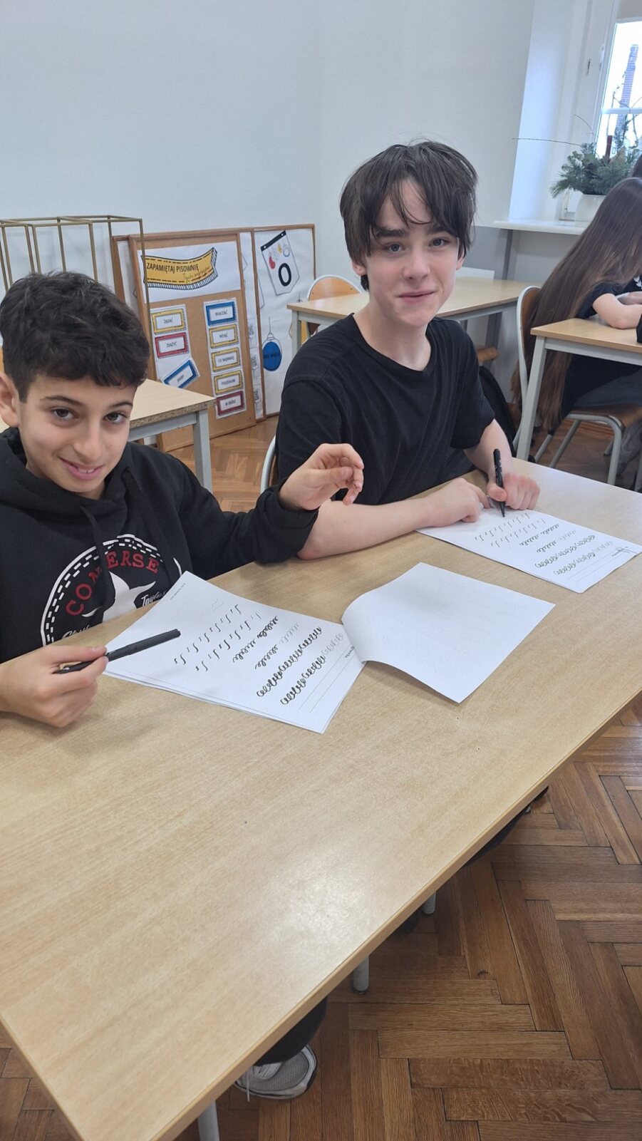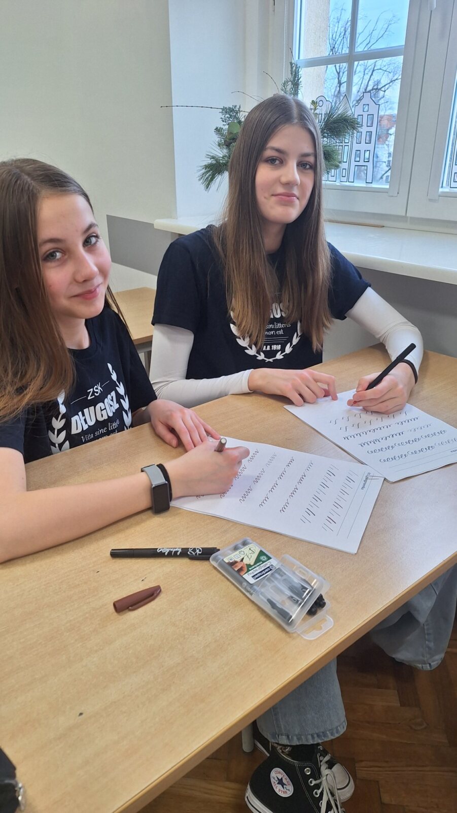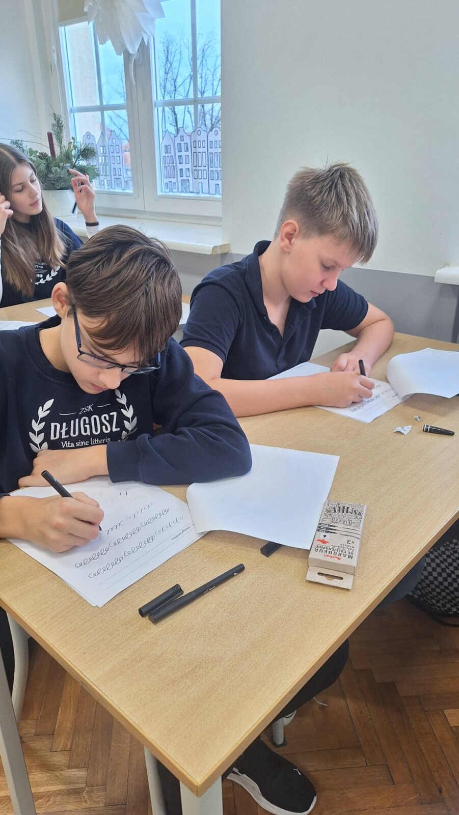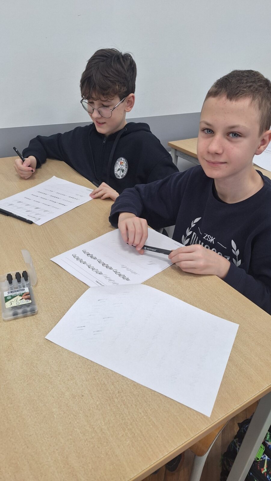 Zdobycie umiejętności pięknego pisania okazało się jednak niezwykle trudną sztuką. Dlatego zdecydowaliśmy się zacząć od łatwiejszej formy, zastępując stalówkę i atrament – specjalnym pisakiem.