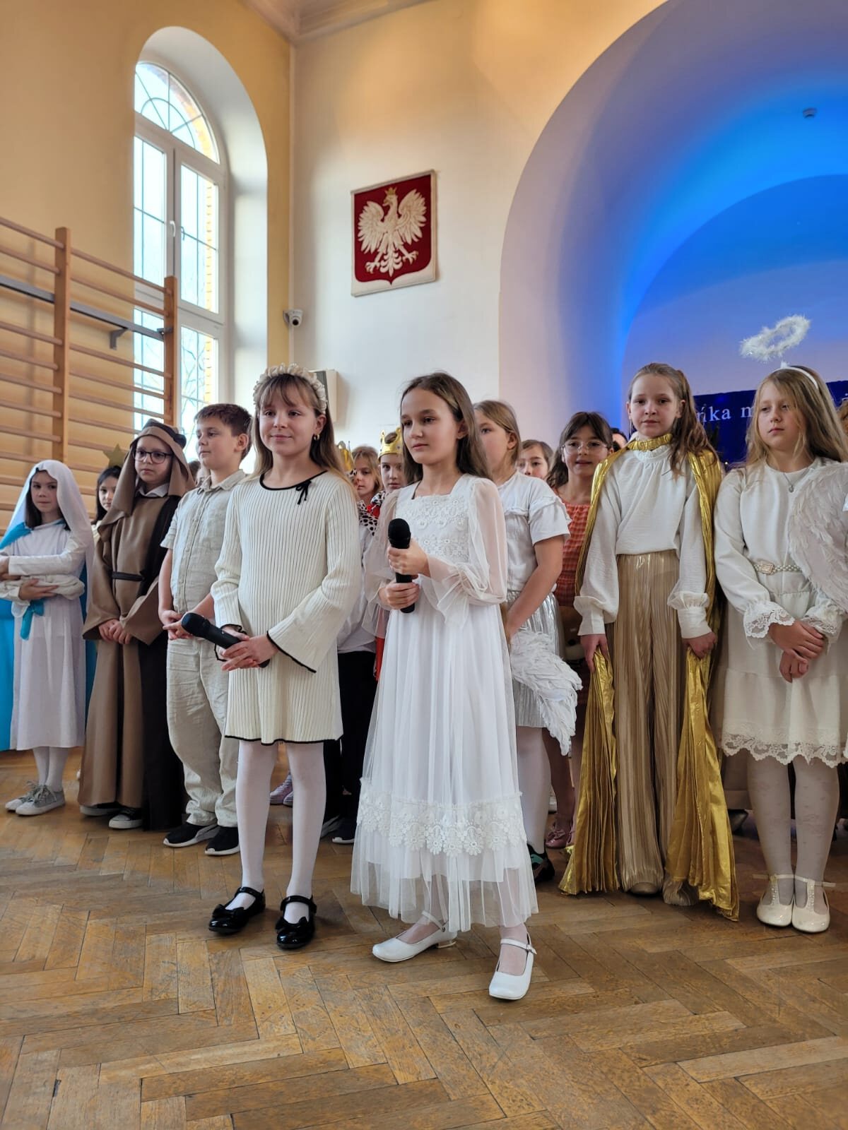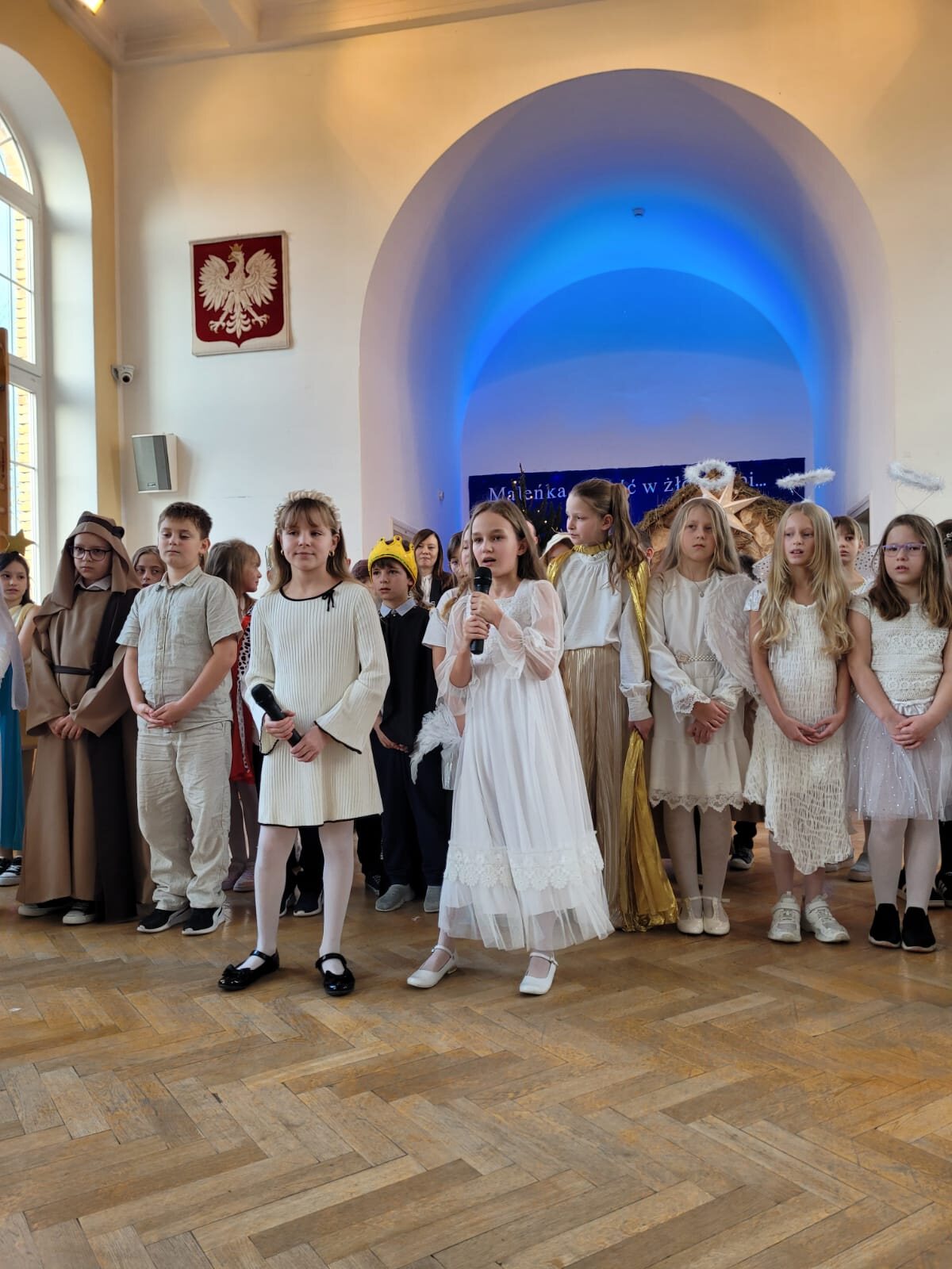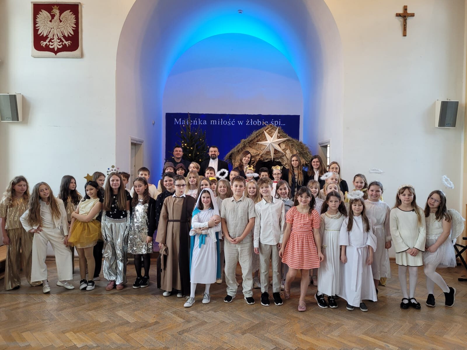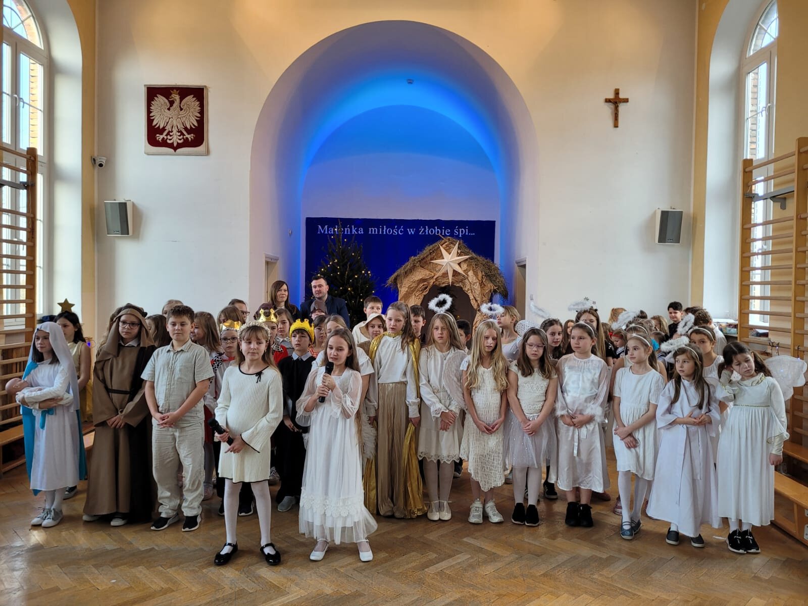 Piękna dekoracja, bardzo starannie przygotowane stroje aniołów i innych postaci występujących w programie przyciągały uwagę oglądających. Chór szkolny pod kierunkiem p. Antoniny Ratajczyk przygotował śliczne kolędy i pastorałki, które wzbogaciły Jasełka. Występujący aktorzy – uczniowie klasy 3c i 4a świetnie wcielili się w swoje role, aby przekazać nam najważniejsze wartości płynące z narodzin Jezusa. Wszyscy poczuliśmy się jedną rodziną, w której panuje radość, wzajemna życzliwość i zrozumienie. Odczuliśmy, że każdy z nas otrzyma Dar Bożego Narodzenia, a Święta będą najpiękniejszymi dniami w naszym życiu.