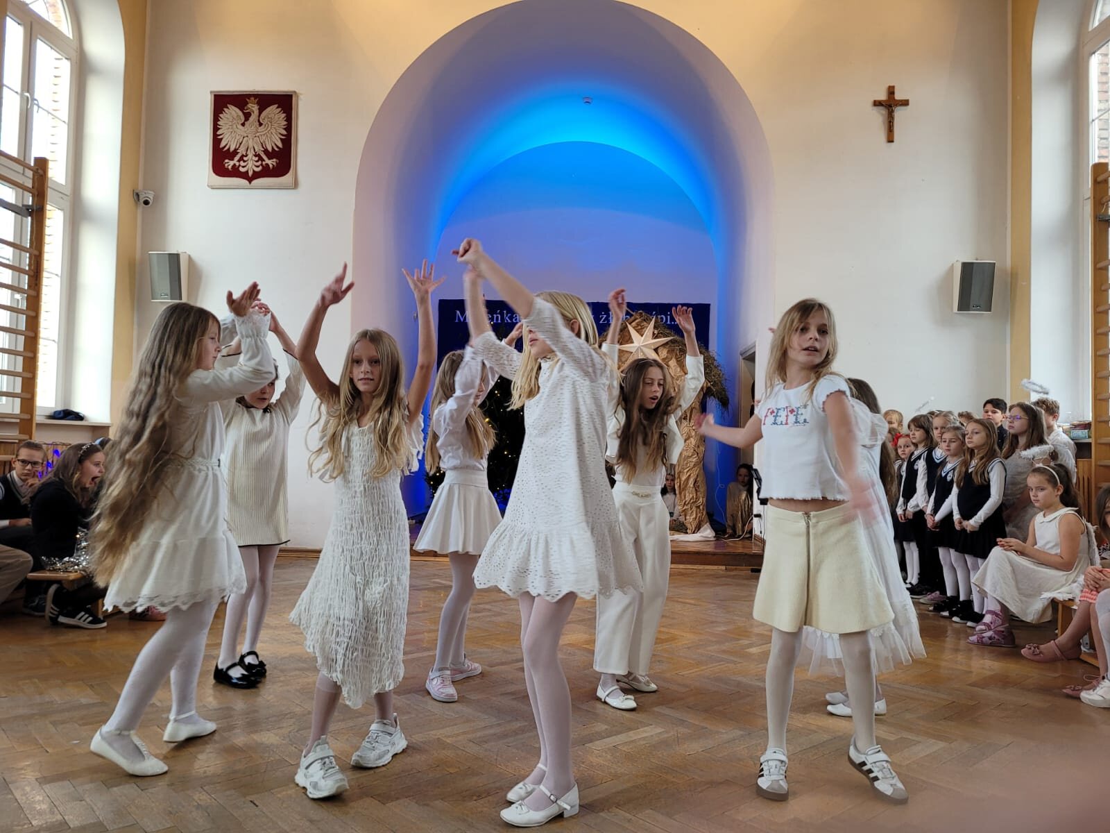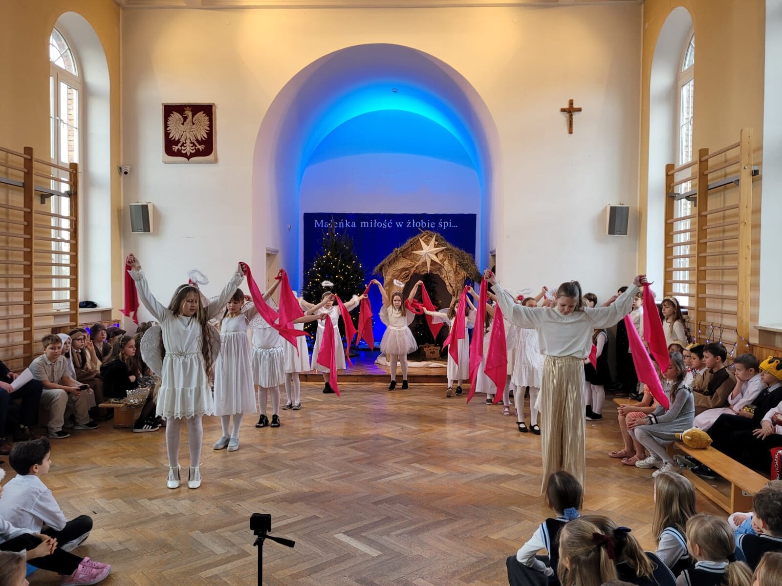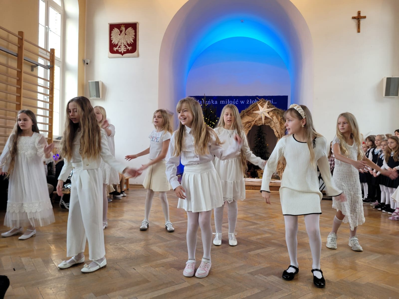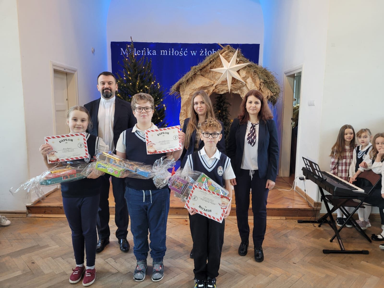 Piękna dekoracja, bardzo starannie przygotowane stroje aniołów i innych postaci występujących w programie przyciągały uwagę oglądających. Chór szkolny pod kierunkiem p. Antoniny Ratajczyk przygotował śliczne kolędy i pastorałki, które wzbogaciły Jasełka. Występujący aktorzy – uczniowie klasy 3c i 4a świetnie wcielili się w swoje role, aby przekazać nam najważniejsze wartości płynące z narodzin Jezusa. Wszyscy poczuliśmy się jedną rodziną, w której panuje radość, wzajemna życzliwość i zrozumienie. Odczuliśmy, że każdy z nas otrzyma Dar Bożego Narodzenia, a Święta będą najpiękniejszymi dniami w naszym życiu.