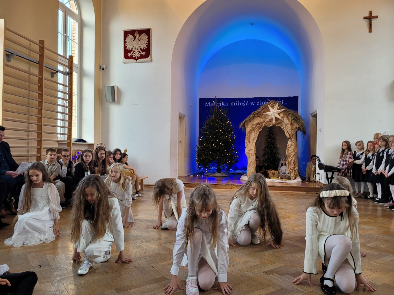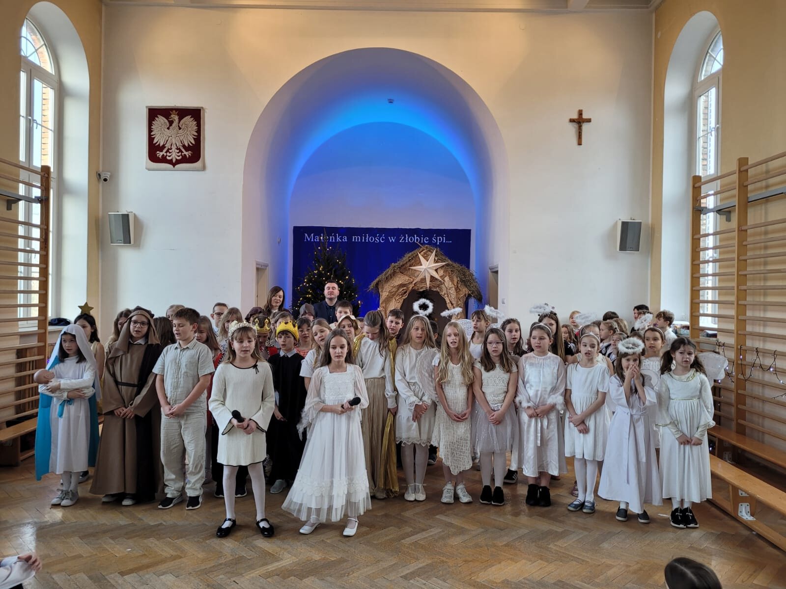 Tegoroczne jasełka w Małym Długoszu zostały przygotowane przez uczniów klasy 3c oraz 4a wraz z wychowawcami Ewą Jackowską i Marcinem Jaskólskim. Ponadto w przedstawieniu wzięli udział uczniowie z koła muzyczno-tanecznego prowadzonego przez panią Martę Wójciak. Przedstawienie uświetnił występ pani Anny Sokołowskiej-Alabrudzińskiej, która zaśpiewała przecudowne kolędy i wprowadziła nas w wspaniały i refleksyjny nastrój.