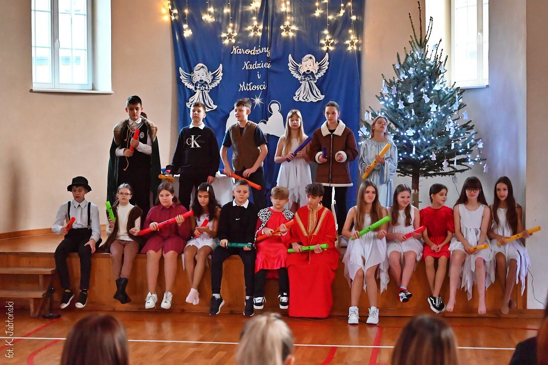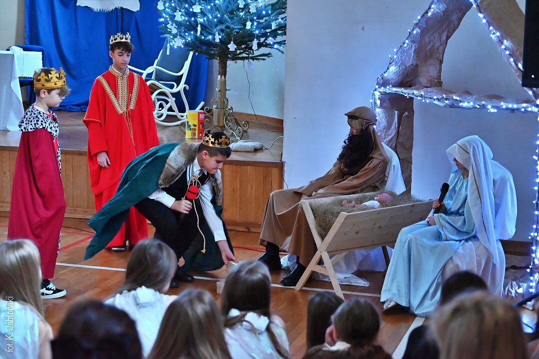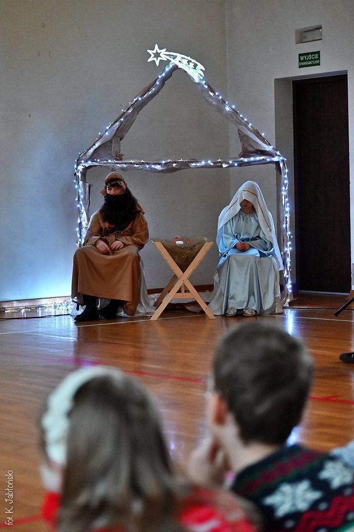 20. grudnia w dolnej sali gimnastycznej zostały przygotowane okolicznościowe jasełka dla uczniów naszej szkoły. Była to długo wyczekiwana przez wszystkich chwila, przypominająca wydarzenia sprzed dwóch tysięcy lat, kiedy to w Betlejem narodziło się Boże Dzieciątko. Widowisko było przeplatane scenkami odbywającymi się podczas współczesnej Wigilii, dzięki czemu jeszcze mocniej odczuwaliśmy klimat Świąt. Całość urozmaiciły aranżacje muzyczne, które niewątpliwie wzbogacały występ pod względem akustycznym.