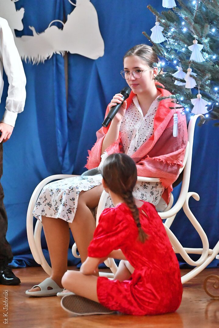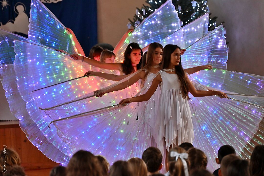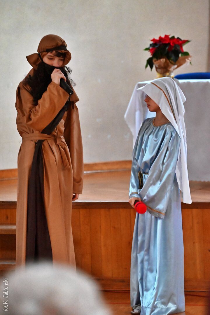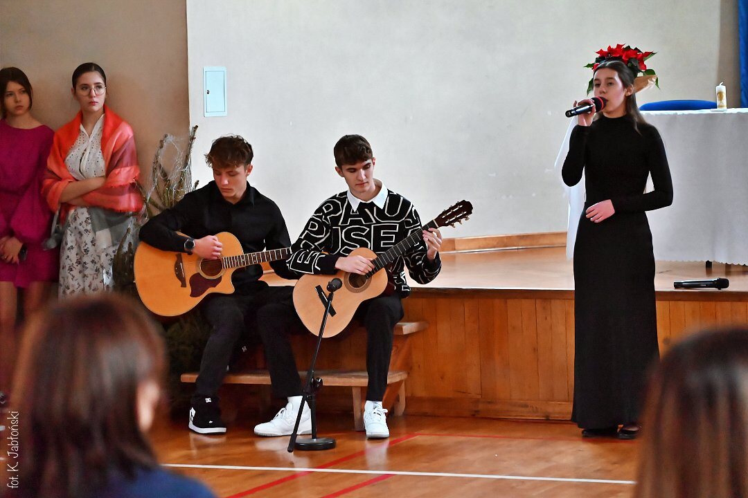 Na pochwały zasługują wszyscy uczniowie przygotowujący spektakl, szczególnie klasa 5b SP oraz 1c LO, z gościnnym udziałem uczniów grających na gitarze (kl. 3a LO). To dzięki nim mogliśmy poczuć tę niezwykłą atmosferę przygotowującą nas na Narodzenie “Maleńkiej Miłości”.