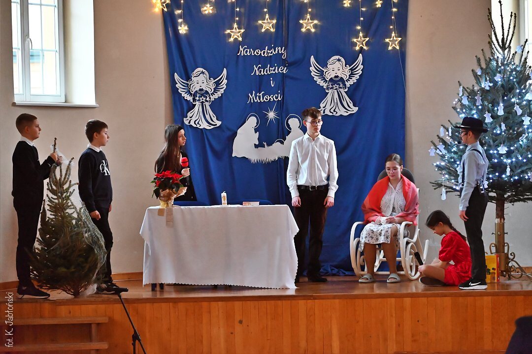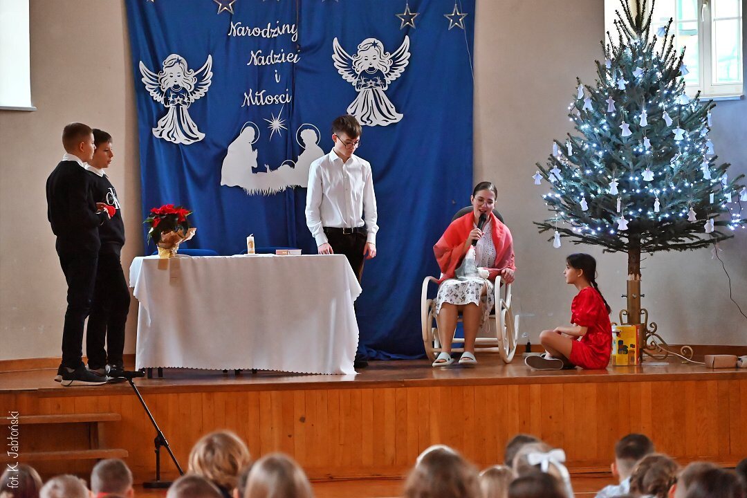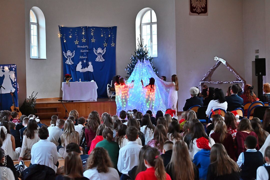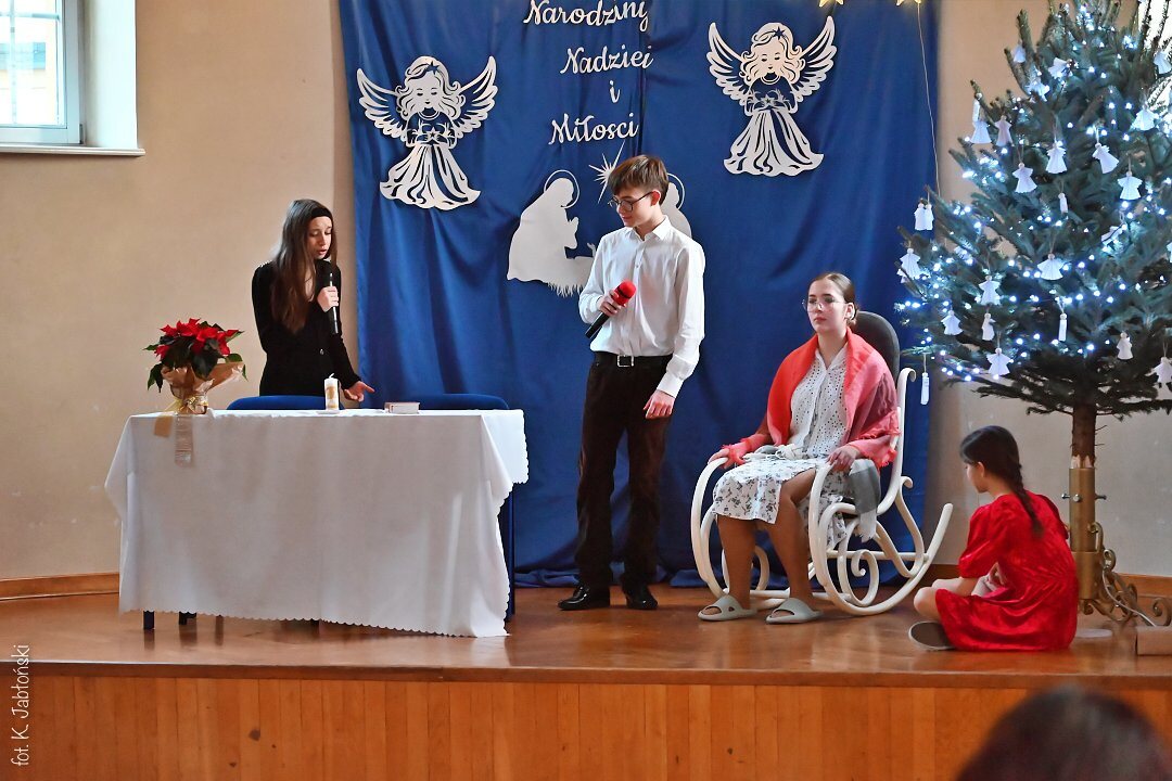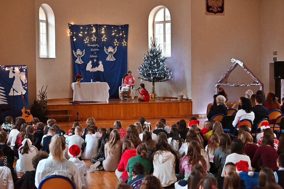 Na pochwały zasługują wszyscy uczniowie przygotowujący spektakl, szczególnie klasa 5b SP oraz 1c LO, z gościnnym udziałem uczniów grających na gitarze (kl. 3a LO). To dzięki nim mogliśmy poczuć tę niezwykłą atmosferę przygotowującą nas na Narodzenie “Maleńkiej Miłości”.