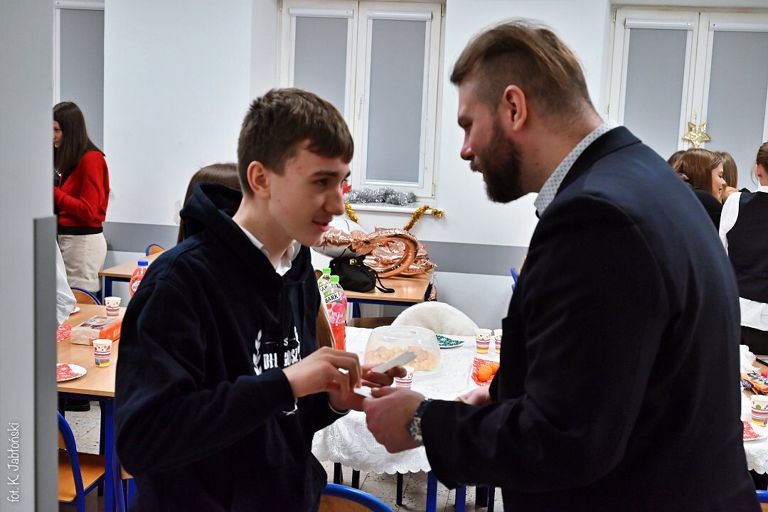 Jasełka nie były jedynym elementem tego wyjątkowego dnia. Głównym jego punktem były wigilie klasowe, w trakcie których uczniowie spożywali wigilijne potrawy, wręczali sobie drobne upominki, wspólnie kolędowali oraz „pielgrzymowali” z życzeniami do swych rówieśników z innych klas oraz nauczycieli i pracowników szkoły. Serdeczna atmosfera oczekiwania na Boże Narodzenie wywołała falę radości oraz przyprawiła o niejedną łzę wzruszenia, które pozwoliły nam z refleksją zakończyć ostatni dzień szkolnych działań w starym roku kalendarzowym.