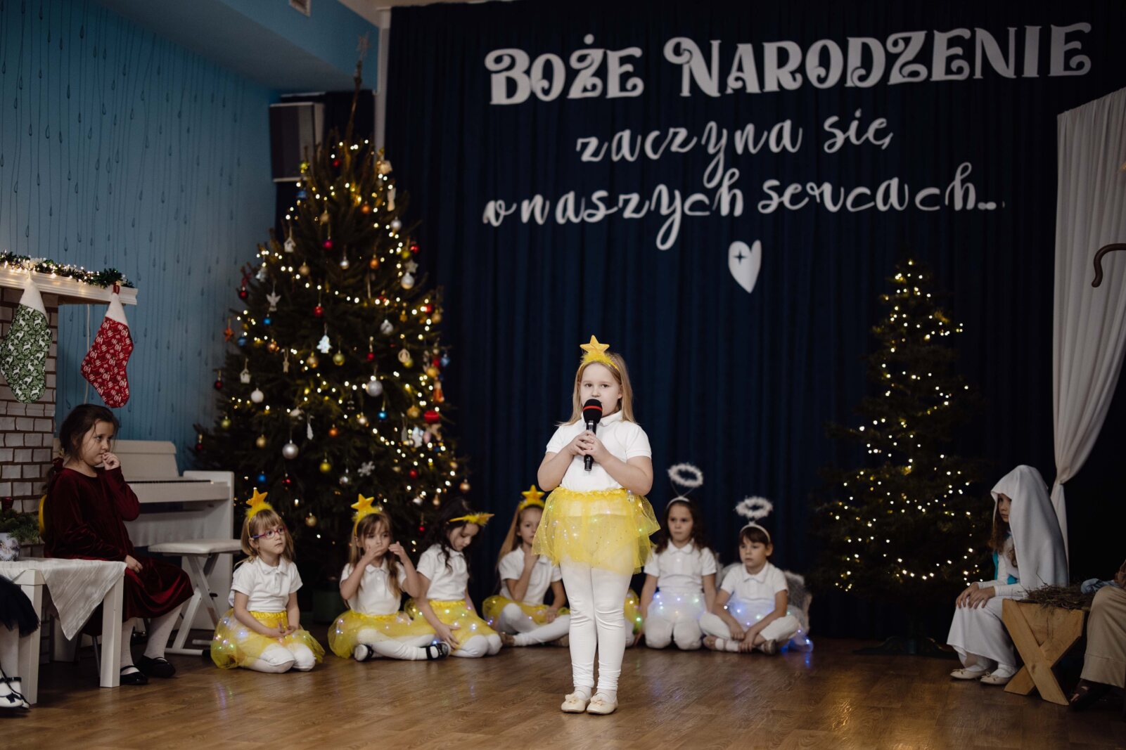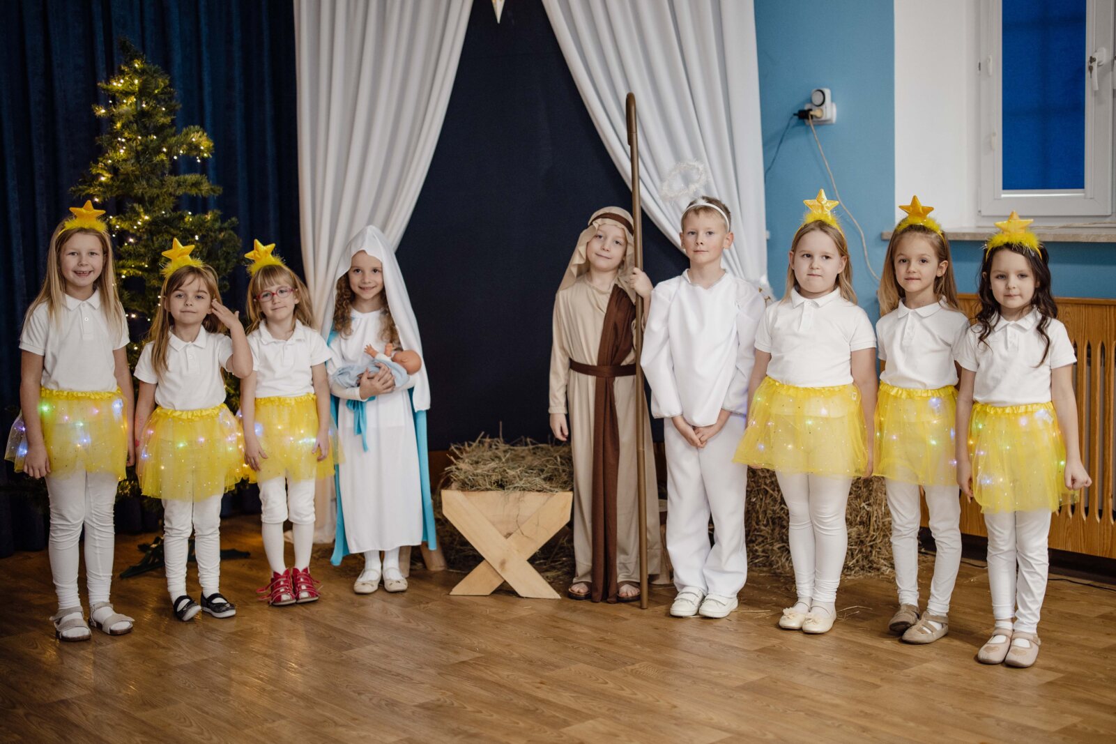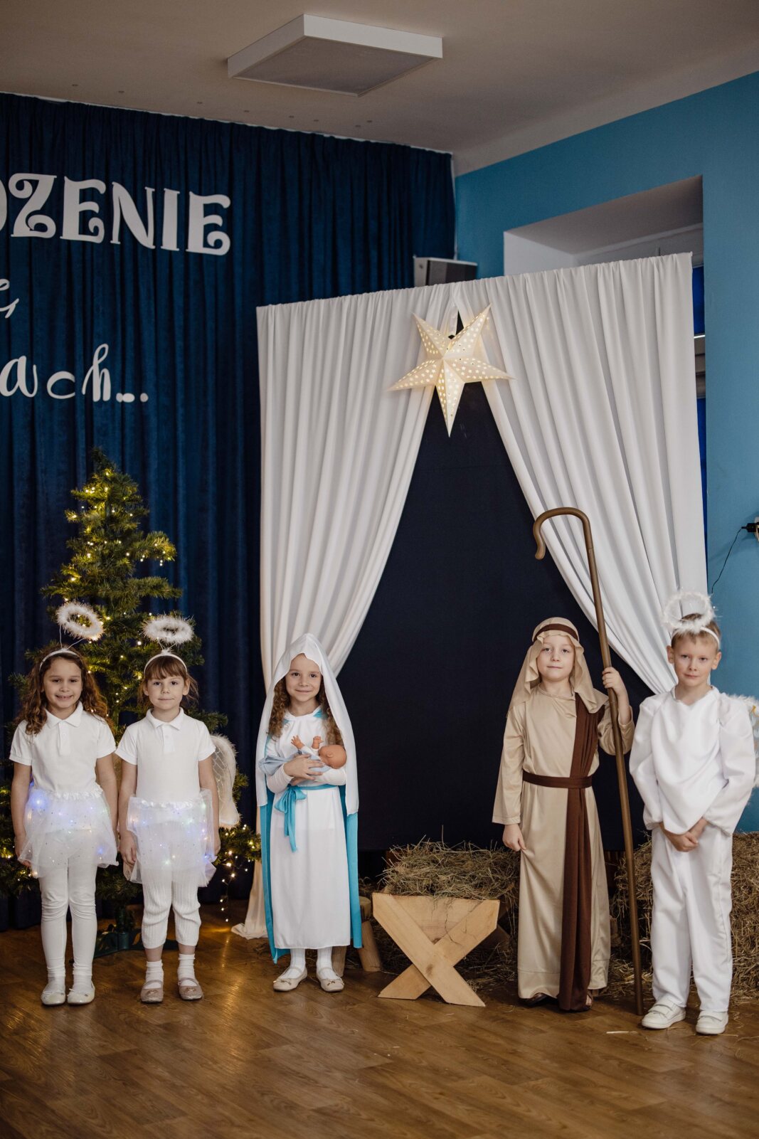 Przedszkolaki z grupy 6-latki A „Obłoczki” z Katolickiego Publicznego Przedszkola „Pod Aniołem Stróżem” w dniu 19 grudnia 2024 r. wystąpiły przed rodzicami, a w dniu 20 grudnia 2024 r. wystawiły Jasełka dla społeczności przedszkola. Świąteczny nastrój podkreślały niecodzienne stroje dzieci, bożonarodzeniowa dekoracja sali. Przedszkolaki na moment przestały być zwykłymi dziećmi i zmieniły się w Świętą Rodzinę, gwiazdki, anioły, pastuszków, królów i mamę z córką, przenosząc wszystkich obecnych w czasy sprzed dwóch tysięcy lat. Mali artyści z dużym przejęciem i zaangażowaniem wiernie odtwarzali swoje role, prezentowali umiejętności recytatorskie, wokalne i taneczne. Dodatkowo atmosferę wzniosłości podkreśliła oprawa muzyczna. Dzieci pięknie śpiewały pastorałki i kolędy dostarczając wielu wzruszeń.