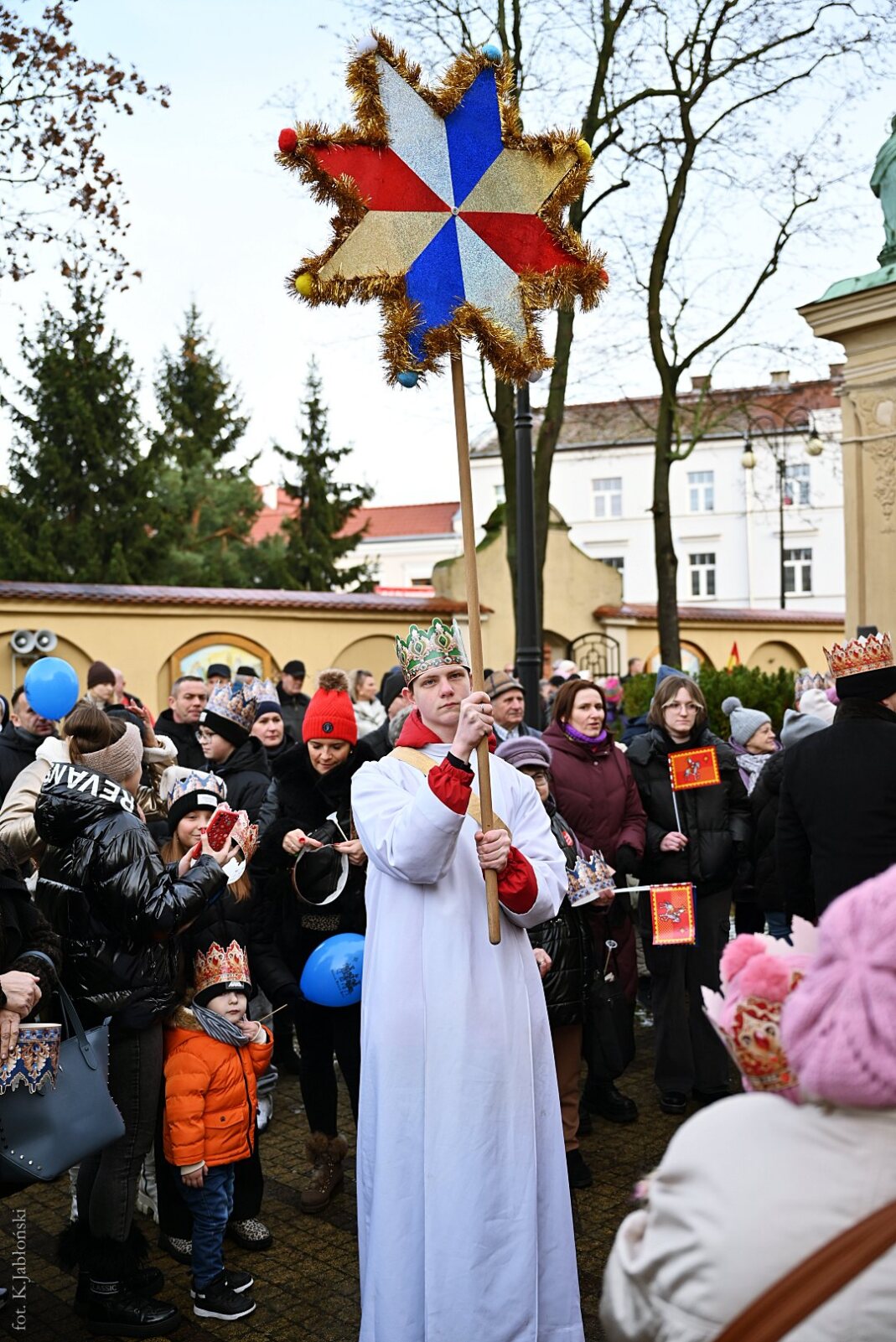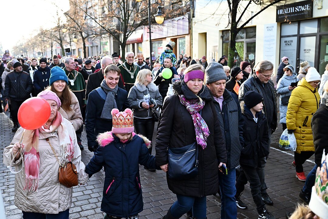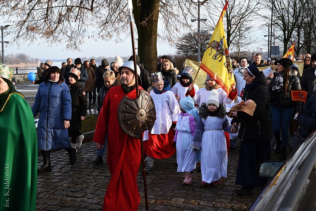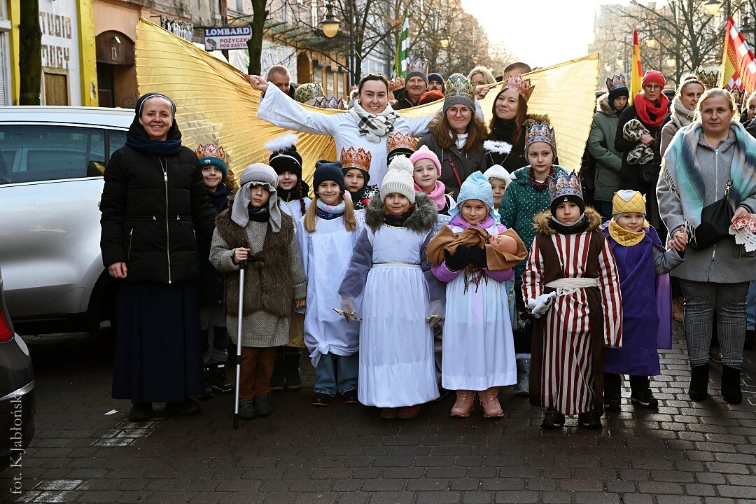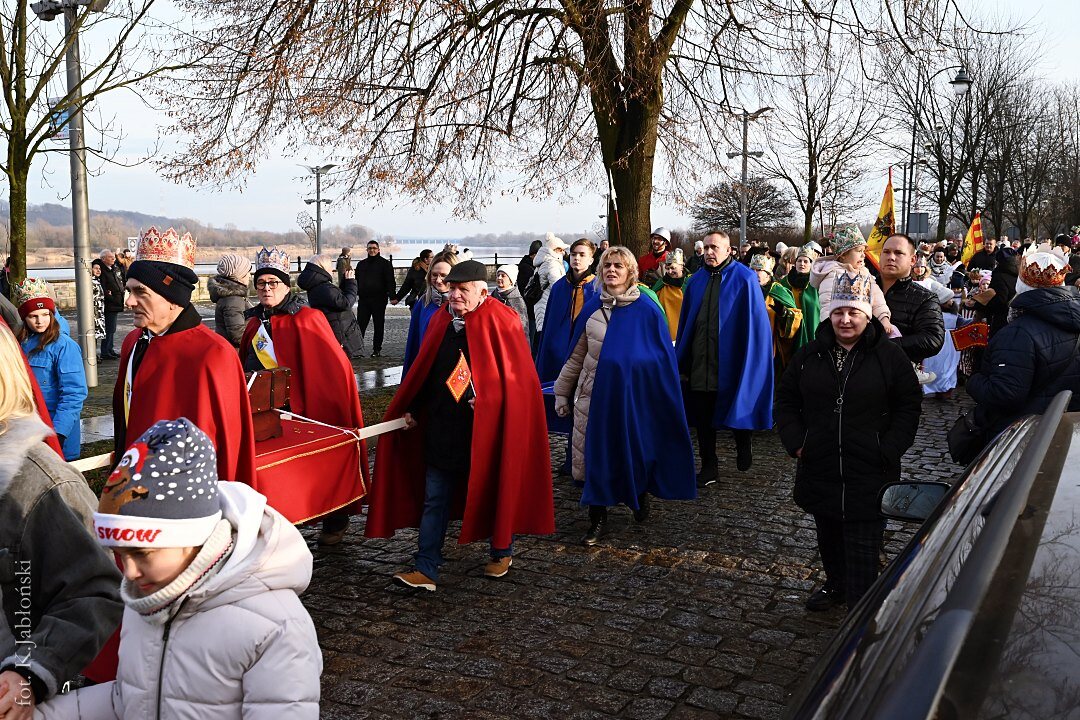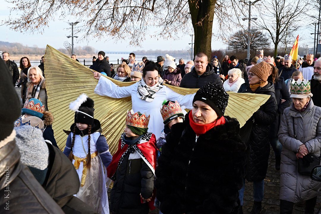 Po mszy św. ok. godz. 13.15, z dziedzińca przyklasztornego, wyruszył barwny korowód zaopatrzony w dumnie powiewające flagi, czerwone, zielone i niebieskie chorągiewki oraz okolicznościowe baloniki z wizerunkami Trzech Mędrców, które zarówno w trakcie mszy, jak i przed samym marszem, były rozdawane przez nauczycieli i pracowników Zespołu Szkół Katolickich im. ks. Jana Długosza we Włocławku, jak co roku czynnie zaangażowanych w organizację tego radosnego przedsięwzięcia.