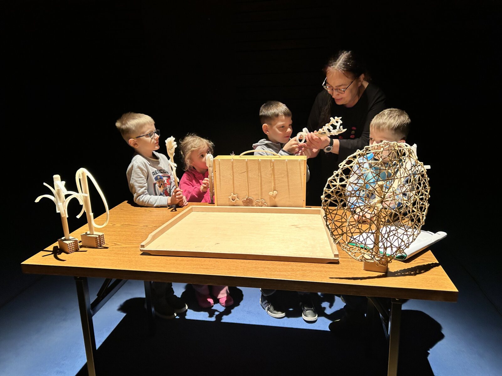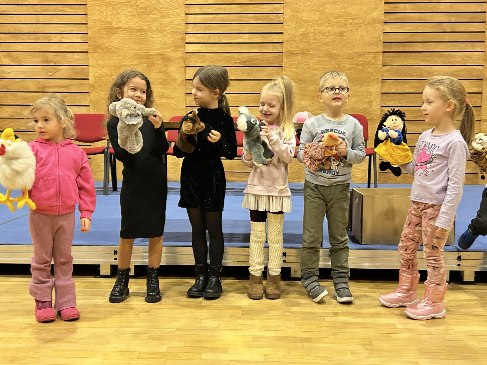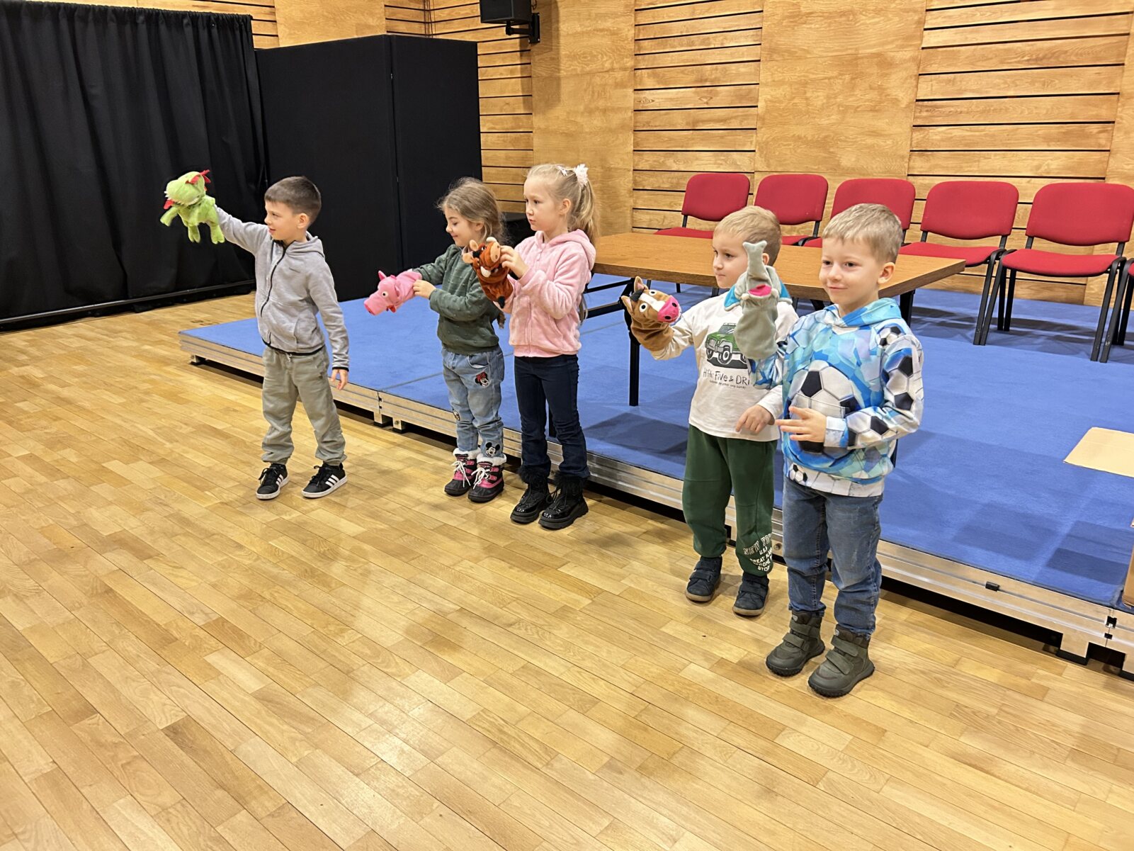 W dniu 08.01.2025 r. grupa 5–latków B „Słoneczka” wybrała się do Teatru Impresaryjnego im. Włodzimierza Gniazdowskiego, na warsztaty teatralne zatytułowane: „Teatr Przedmiotu”. Warsztaty były prowadzone przez charyzmatyczną panią Katarzynę Misiak – instruktora teatralnego. Dzieci wymyślały postacie z przedmiotów domowego użytku, nadając im cechy ludzkie i zwierzęce, poznały techniki lalkowe, jak wygląda pacynka na rękę, pacynka mimiczna, kukły, marionetka. Przedszkolaki wzięły czynny udział w spektaklu lalkowym pt. „Jaś i Małgosia”. Zabawy pozwoliły dzieciom uaktywnić swą kreatywność, ciekawość i wyobraźnię. Po odbytych zajęciach wróciły radosne i pełne wrażeń do przedszkola.