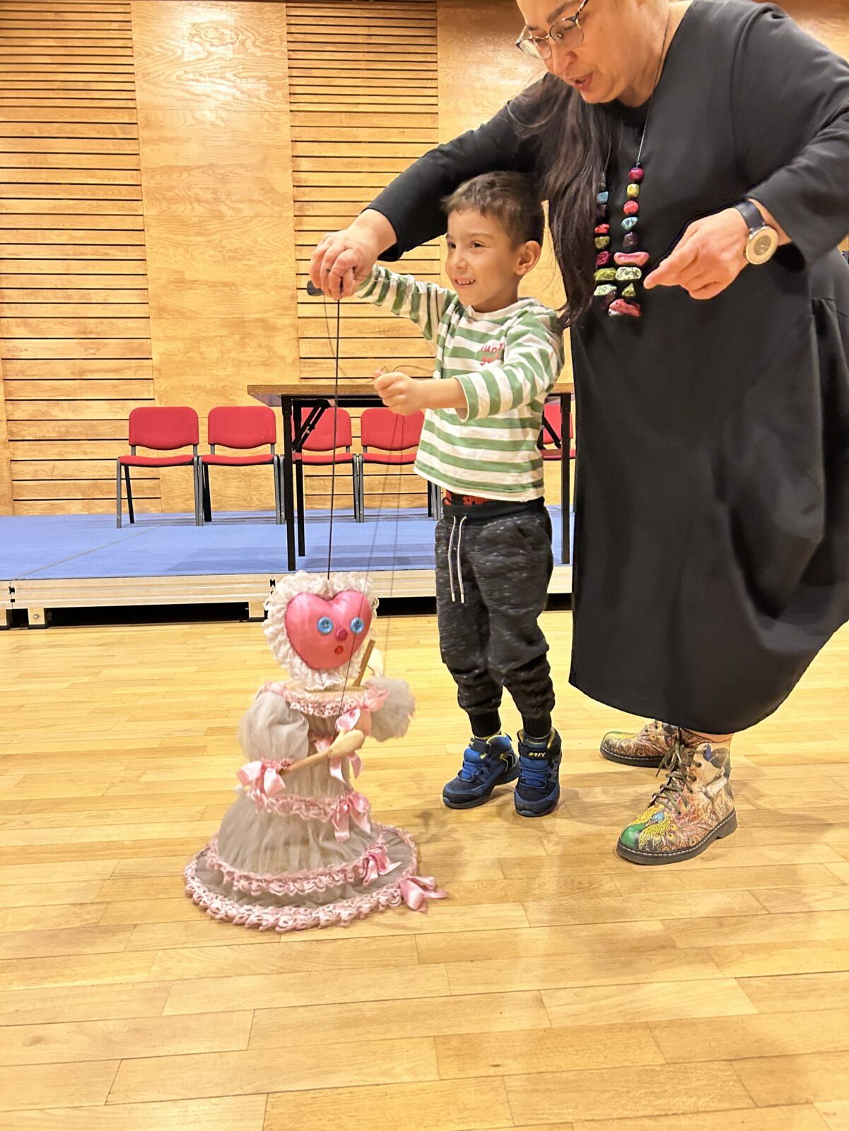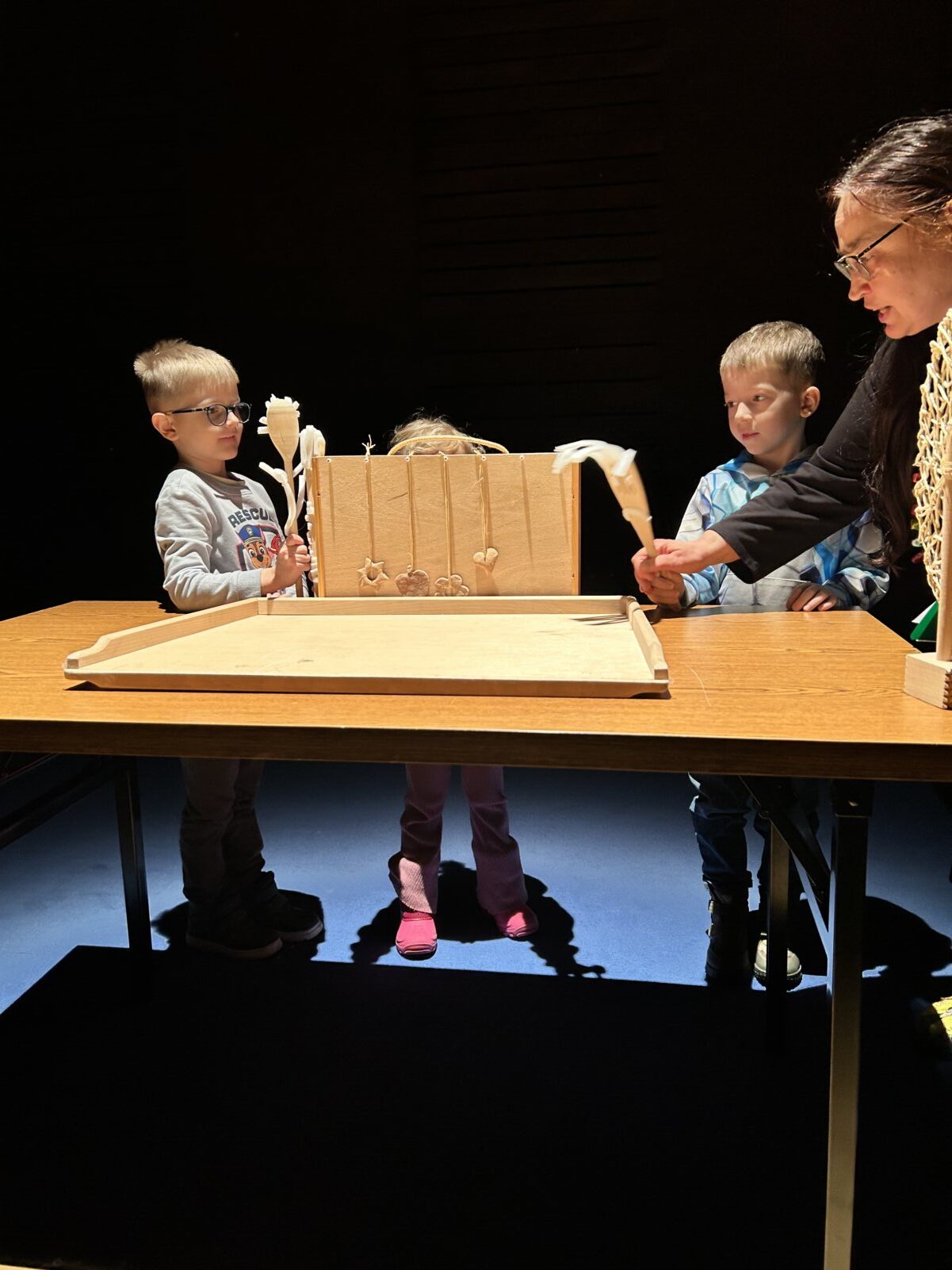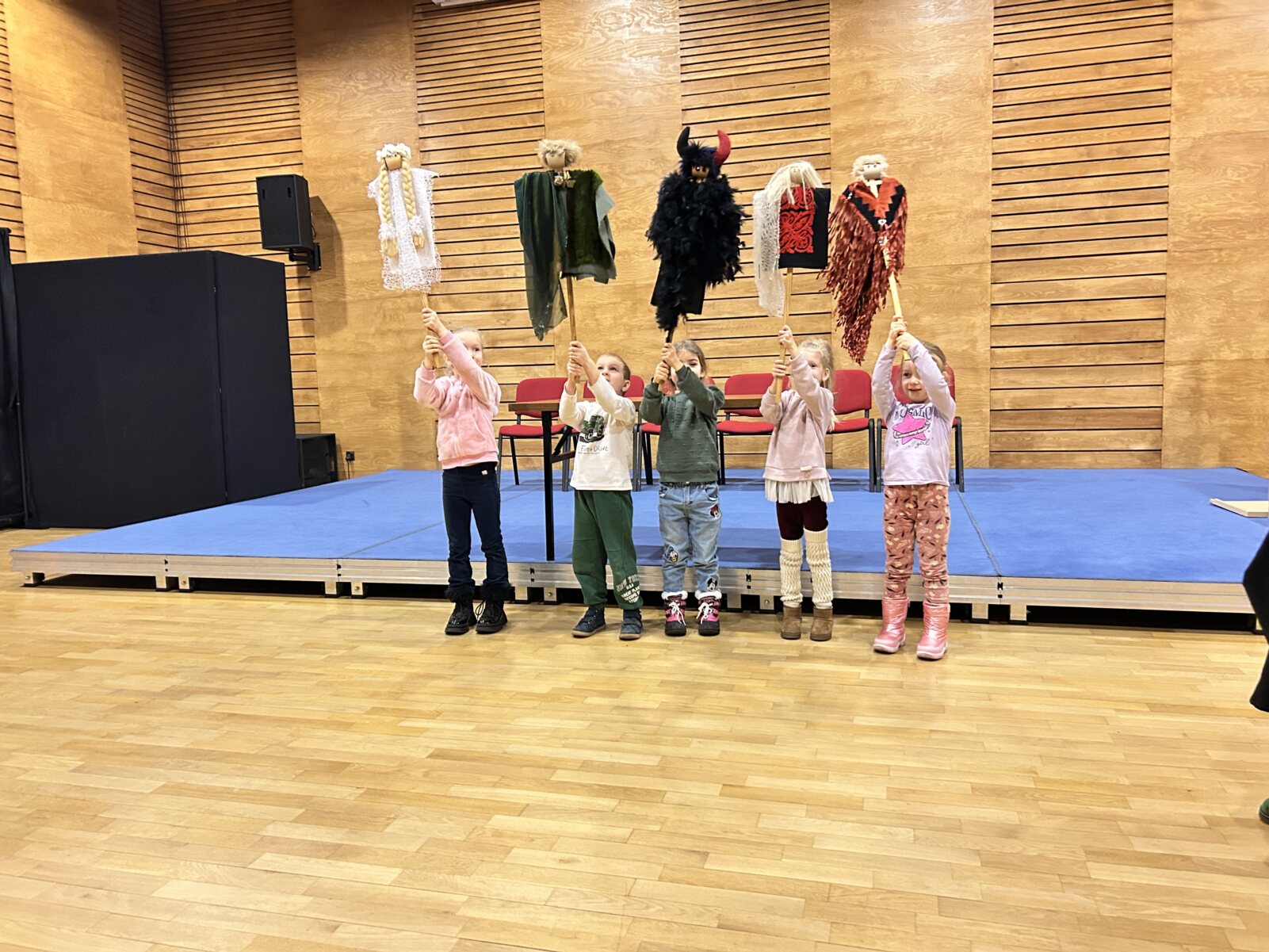 W dniu 08.01.2025 r. grupa 5–latków B „Słoneczka” wybrała się do Teatru Impresaryjnego im. Włodzimierza Gniazdowskiego, na warsztaty teatralne zatytułowane: „Teatr Przedmiotu”. Warsztaty były prowadzone przez charyzmatyczną panią Katarzynę Misiak – instruktora teatralnego. Dzieci wymyślały postacie z przedmiotów domowego użytku, nadając im cechy ludzkie i zwierzęce, poznały techniki lalkowe, jak wygląda pacynka na rękę, pacynka mimiczna, kukły, marionetka. Przedszkolaki wzięły czynny udział w spektaklu lalkowym pt. „Jaś i Małgosia”. Zabawy pozwoliły dzieciom uaktywnić swą kreatywność, ciekawość i wyobraźnię. Po odbytych zajęciach wróciły radosne i pełne wrażeń do przedszkola.