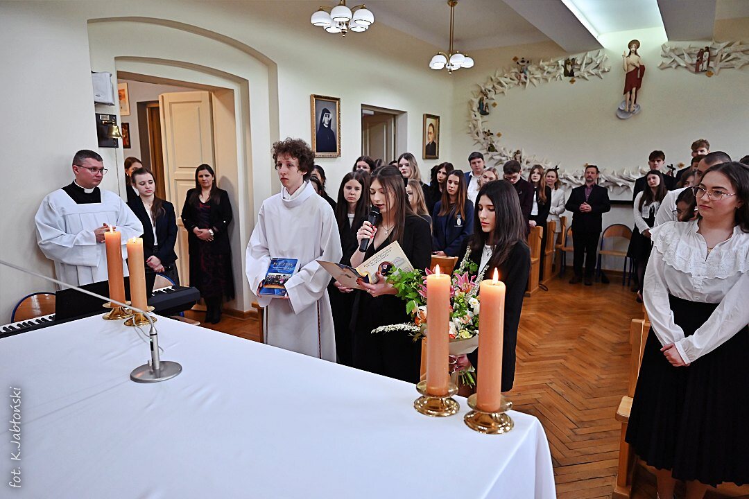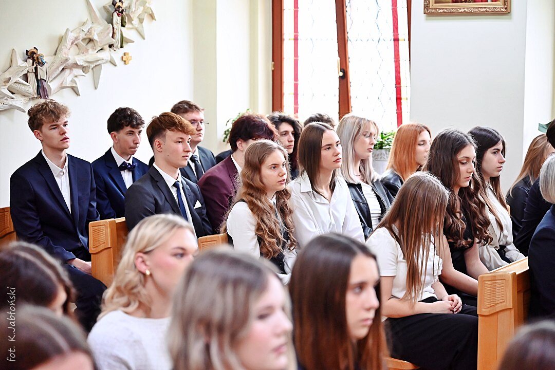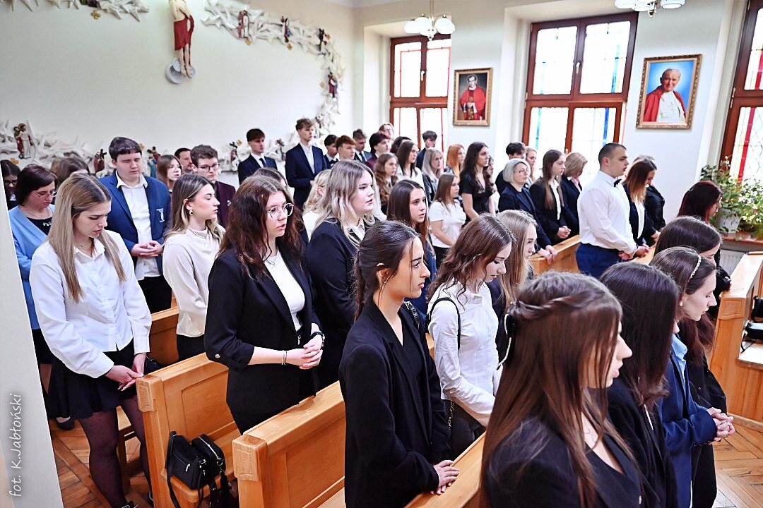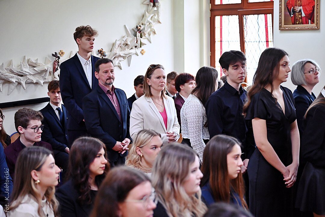 Oficjalna część przerodziła się w spotkania z wychowawcami i ulubionymi nauczycielami, podczas których nie brakowało radosnych uśmiechów, słów wdzięczności, miłych gestów i dyskretnie spływających po policzkach łez. Wszystkich naszych kochanych abiturientów zachowujemy w serdecznej pamięci i wypraszamy obfitości darów Ducha Świętego, by niezliczone talenty i zdolności, jakie Bóg złożył w Waszych sercach i umysłach, poparte solidną pracą i szczyptą szczęścia rozkwitły podczas matur jak kasztany, które w tym roku zakwitną dla Was.