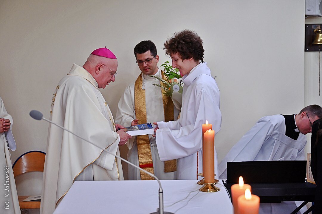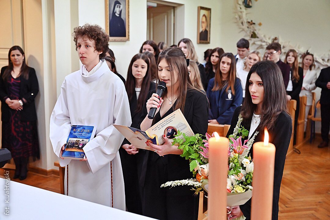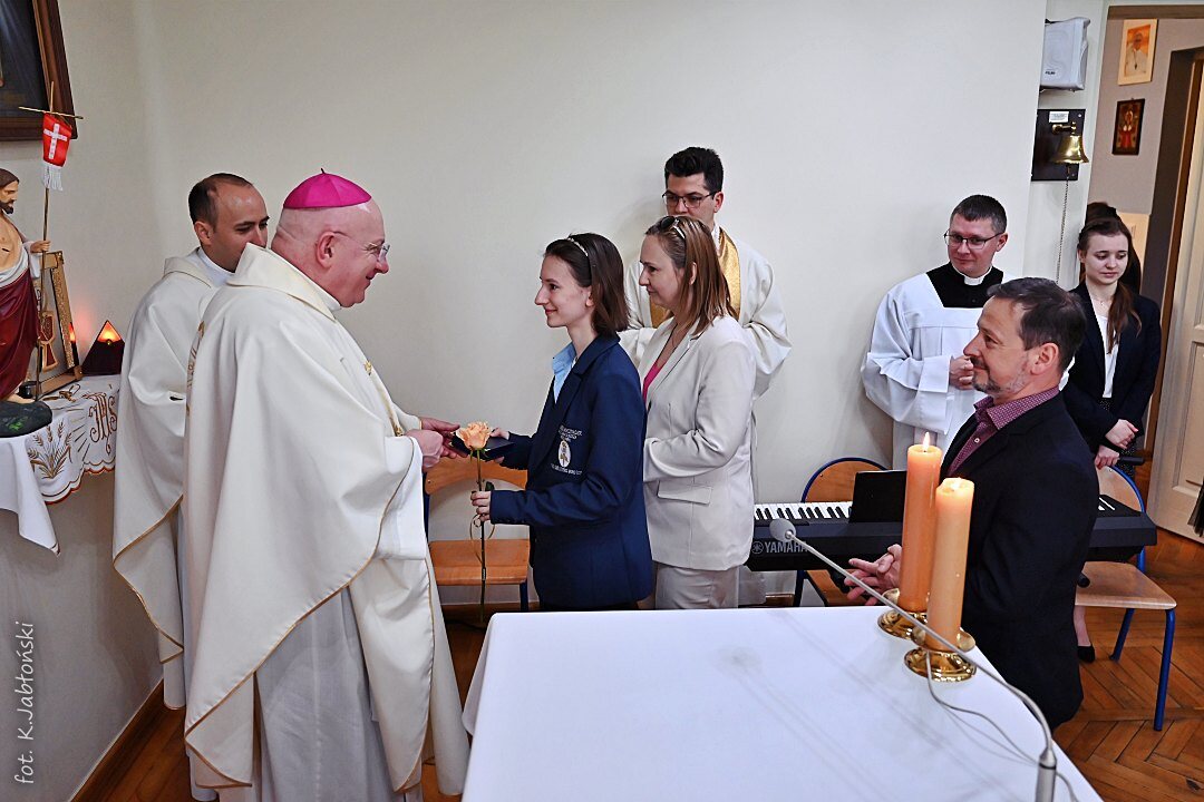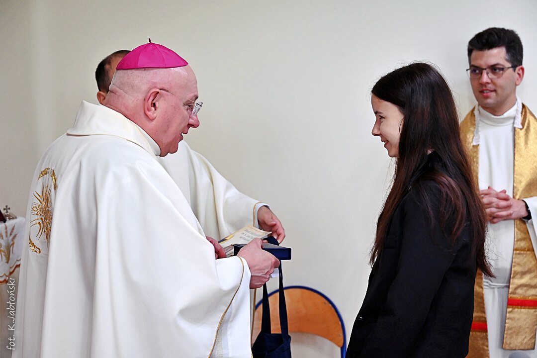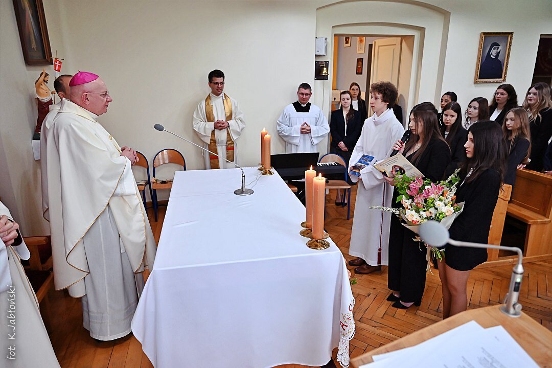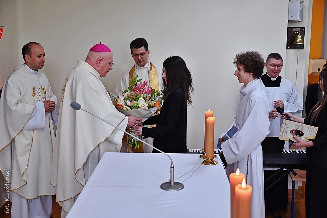 Alicja Mieszkalska, dziękując Księdzu Biskupowi za sprawowaną mszę świętą, przypomniała, że licealna droga tegorocznych maturzystów rozpoczęła się w tym samym roku, co posługa bpa Krzysztofa w naszej diecezji. Zadeklarowała również szczere pragnienie głoszenia dobrego imienia Kościoła Włocławskiego i dawania świadectwa wiary wszędzie, gdzie przyjdzie żyć i działać po maturze. W odpowiedzi pasterz diecezji wspomniał, że widok maturzystów z Długosza przy seminarium i katedrze był pierwszym, co ujrzał po przyjeździe do Włocławka po ogłoszeniu nominacji.