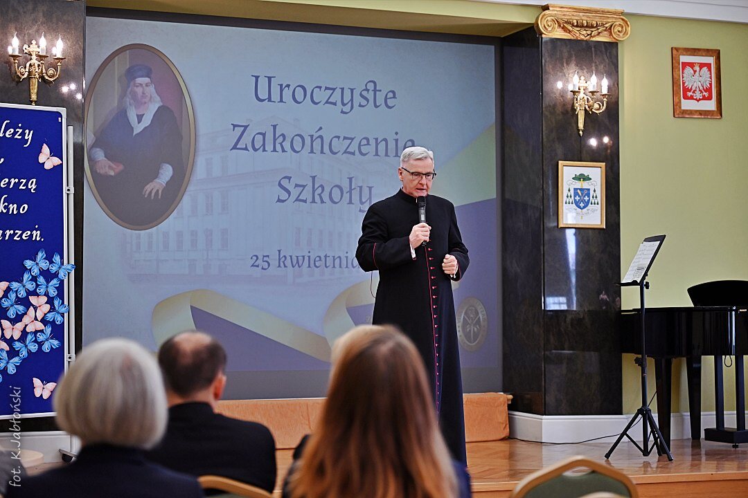 Zgromadzonych powitał dyrektor szkoły – ks. dr Jacek Kędzierski i wskazał na okoliczności towarzyszące mszy świętej pod przewodnictwem biskupa włocławskiego Krzysztofa Wętkowskiego: setna rocznica wmurowania kamienia węgielnego pod budowę gmachu szkoły, pierwsza po wznowieniu działalności placówki uroczystość zakończenia nauki nie w seminarium, lecz w szkolnej kaplicy i auli, a także nagła śmierć papieża Franciszka i nadchodzące konklawe.