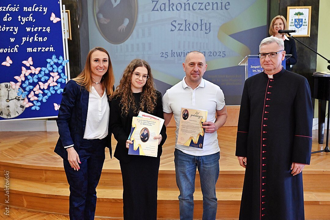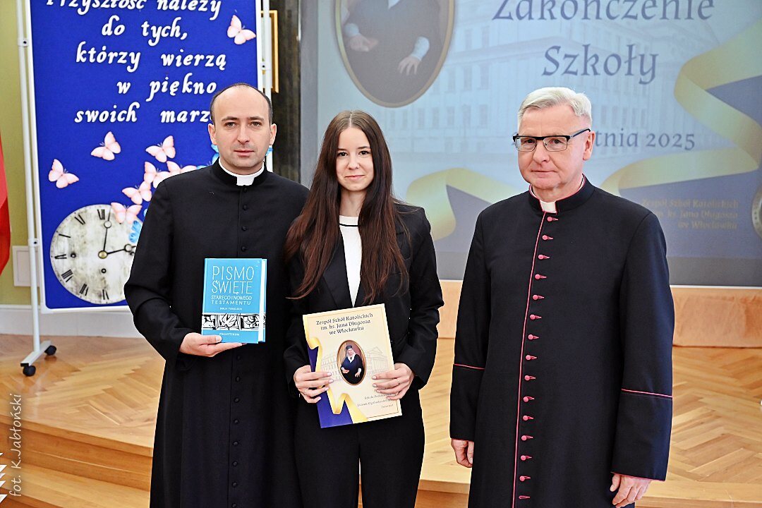 Za zakończenie Eucharystii biskup włocławski wręczył medale dla abiturientów, którzy swym zaangażowaniem, postawą, bezinteresownością realizowali misję szkoły katolickiej (Alicja Mieszkalska i Witold Przewozikowski), za najwyższe wyniki w nauce (Faustyna Rutkowska), za najwyższą frekwencję (Zuzanna Bojarska).