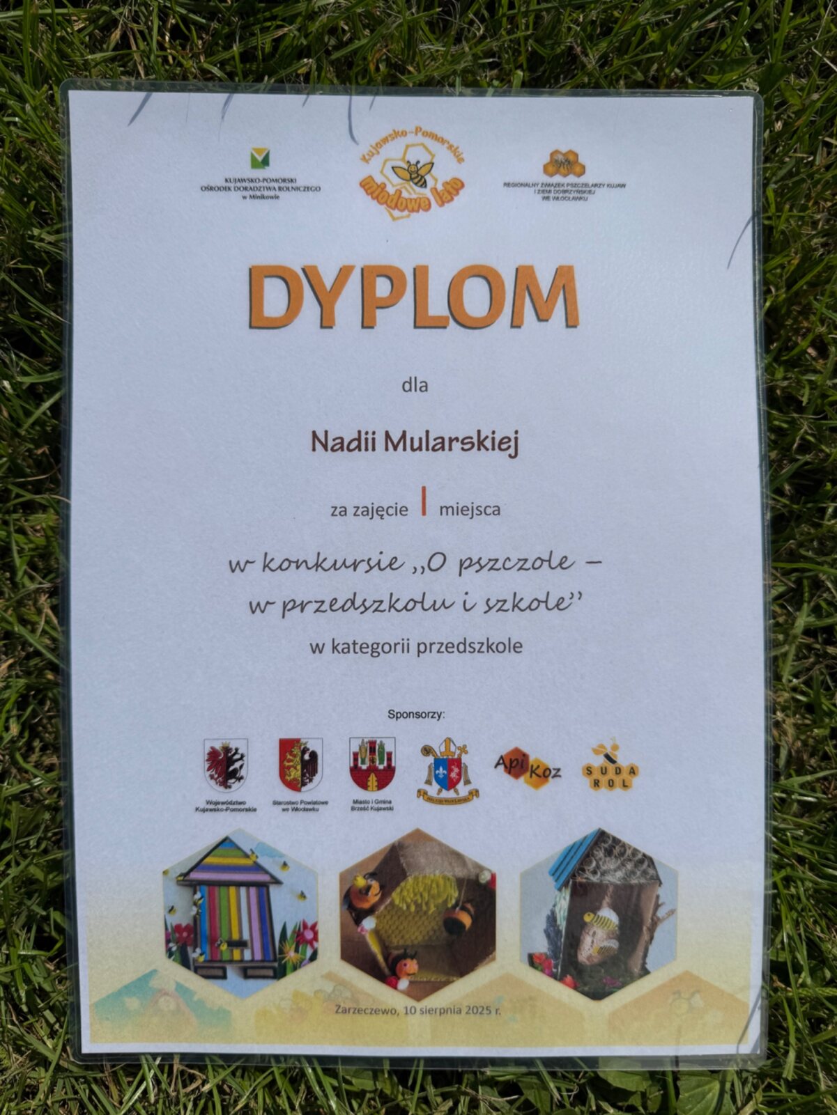 W niedzielę 10 sierpnia 2025 r., podczas targów „Kujawsko – Pomorskie Miodowe Lato” w siedzibie Oddziału Zarzeczewo Kujawsko Pomorskiego Ośrodka Doradztwa Rolniczego odbyło się wręczenie nagród laureatom Konkursu Plastycznego „O pszczole – w przedszkolu i szkole” organizowanego przez Kujawsko Pomorski Ośrodek Doradztwa Rolniczego w Minikowie Oddział Zarzeczewo oraz Regionalny Związek Pszczelarzy Kujaw i Ziemi Dobrzyńskiej we Włocławku.