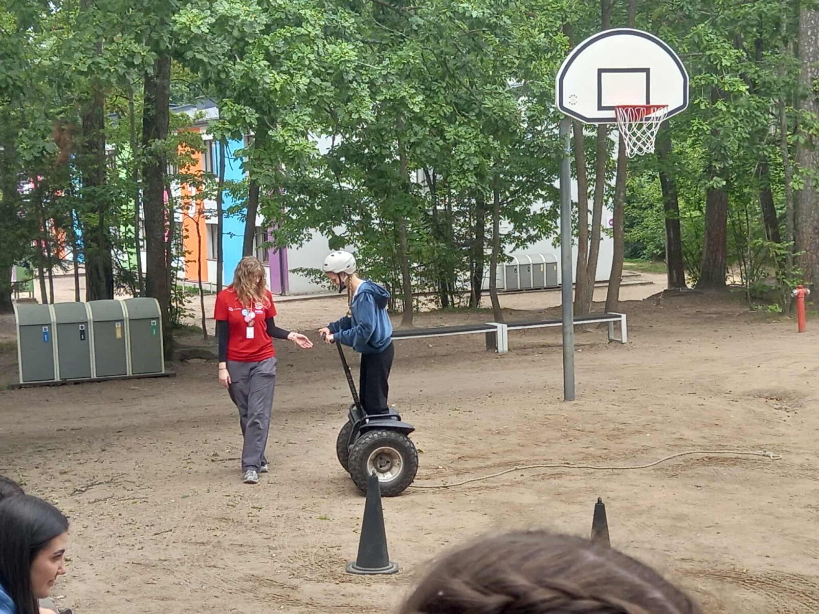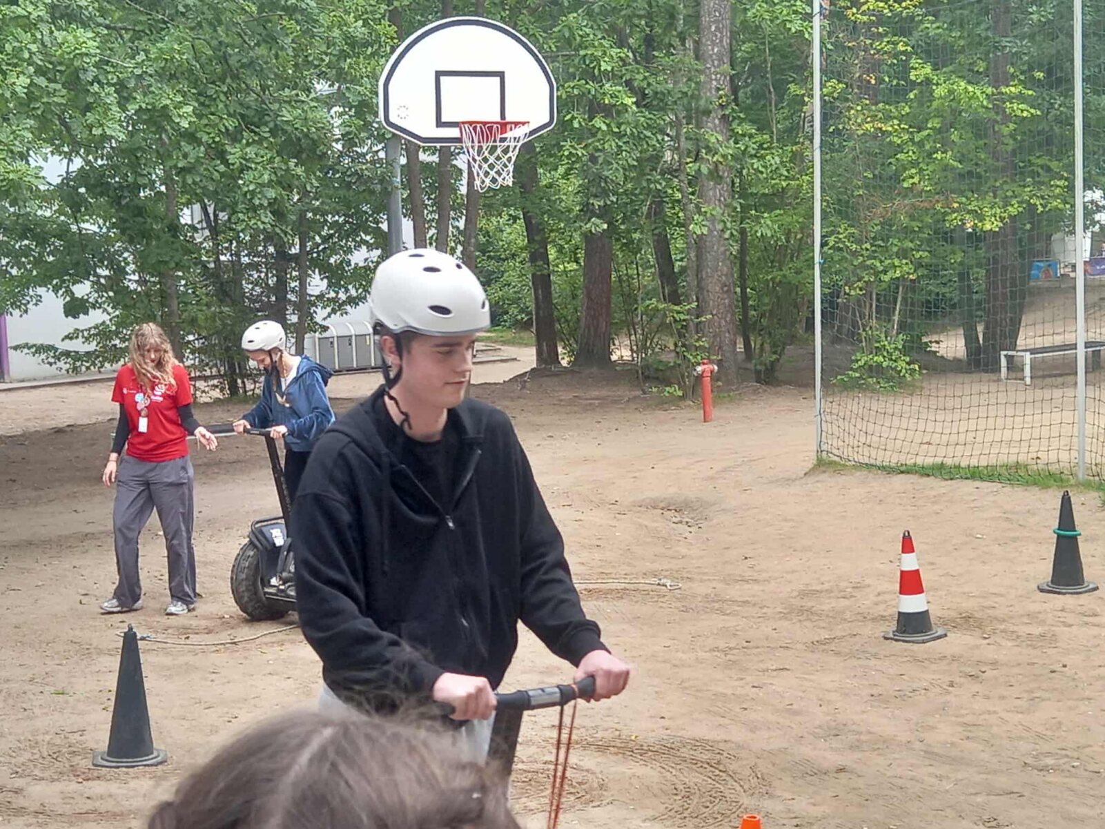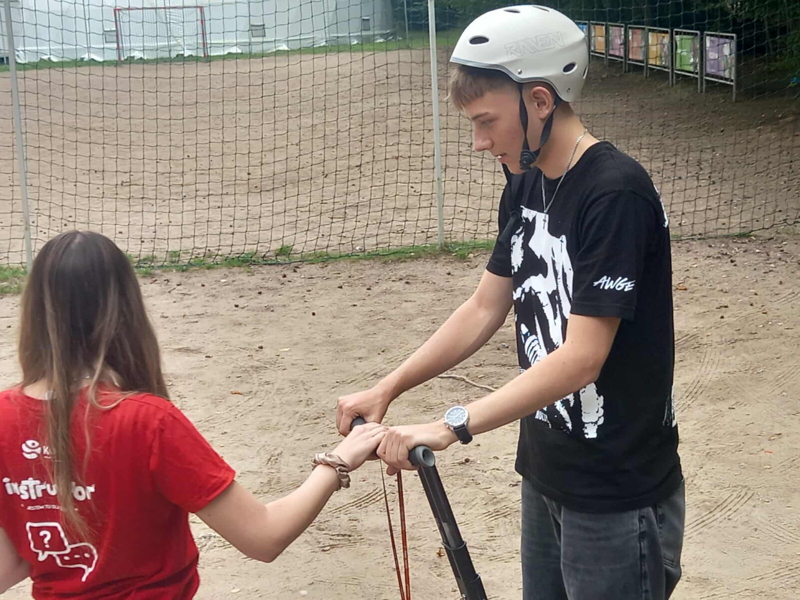 Uczestnicy wyjazdu zostali podzieleni na 2 stałe grupy, które pod opieką instruktorów oraz animatorów korzystały naprzemiennie z niektórych atrakcji widniejących w ofercie ośrodka. Podczas gdy jedna grupa ruszyła nad pobliskie jezioro aby wytężać muskuły w czasie rejsu na pokładzie smoczej łodzi (a utrzymanie równowagi podczas wiosłowania w dużym ścisku nie należy do rzeczy łatwych), druga ekipa doskonaliła swoje umiejętności na placu manewrowym, gdzie tor stacjonarnych przeszkód trzeba było przejechać bezbłędnie na dwukołowym pojeździe elektrycznym lepiej znanym wszystkim miłośnikom ekologicznego transportu jako segway (pomimo początkowych oporów z tytułu konieczności zachowania równowagi oraz precyzji manewrowania, okazało się, że ta konkurencja zachęciła wiele osób do kilkukrotnego pokonania toru z coraz to lepszymi skutkami bezkolizyjności). Po 1,5 godzinnym wysiłku nastąpiło 15 minut przerwy, po której segwayowcy ruszyli na zmagania na pokładzie smoczej łodzi, a grupa, która wodne przygody już zaliczyła… udała się na tor przeszkód, który musiała pokonać na tym razem czterokołowych quadach (wszystko pod opieką siedzącego z tyłu instruktora). Po zakończeniu dwóch bloków wyścigowo-manewrowych, nadszedł czas na wieczorną kolacją, po której młodzież mogła się wyszaleć na wieczornej dyskotece, na której królowały dobrze znane młodzieży współczesne hity w rytmie muzyki pop, rock czy hip-hop. Pierwszy dzień zakończyły długie rozmowy nocne w pokojach, które były regularnie kontrolowane przez pełniących czujną opiekę wychowawców trwających na posterunku do późnych godzin nocnych.